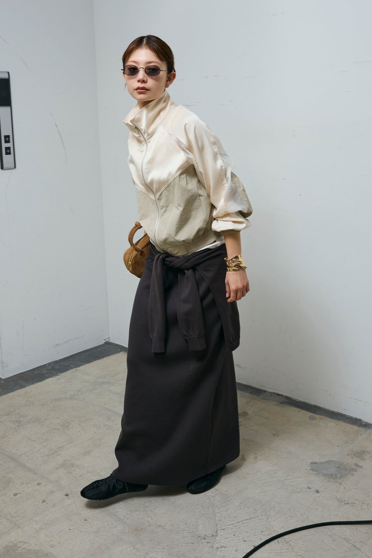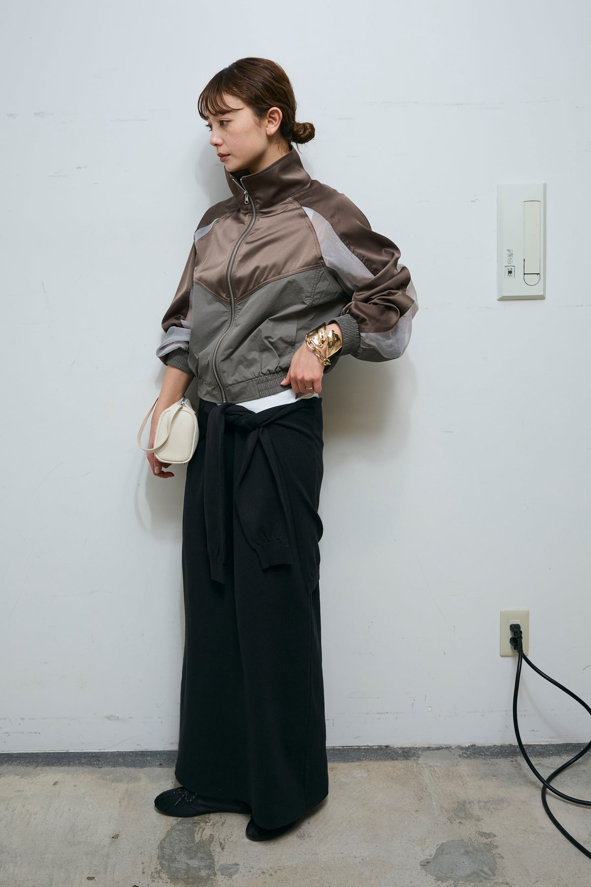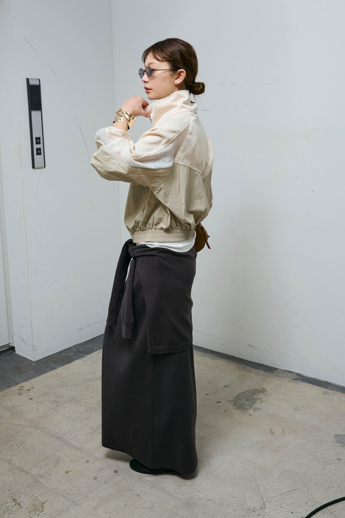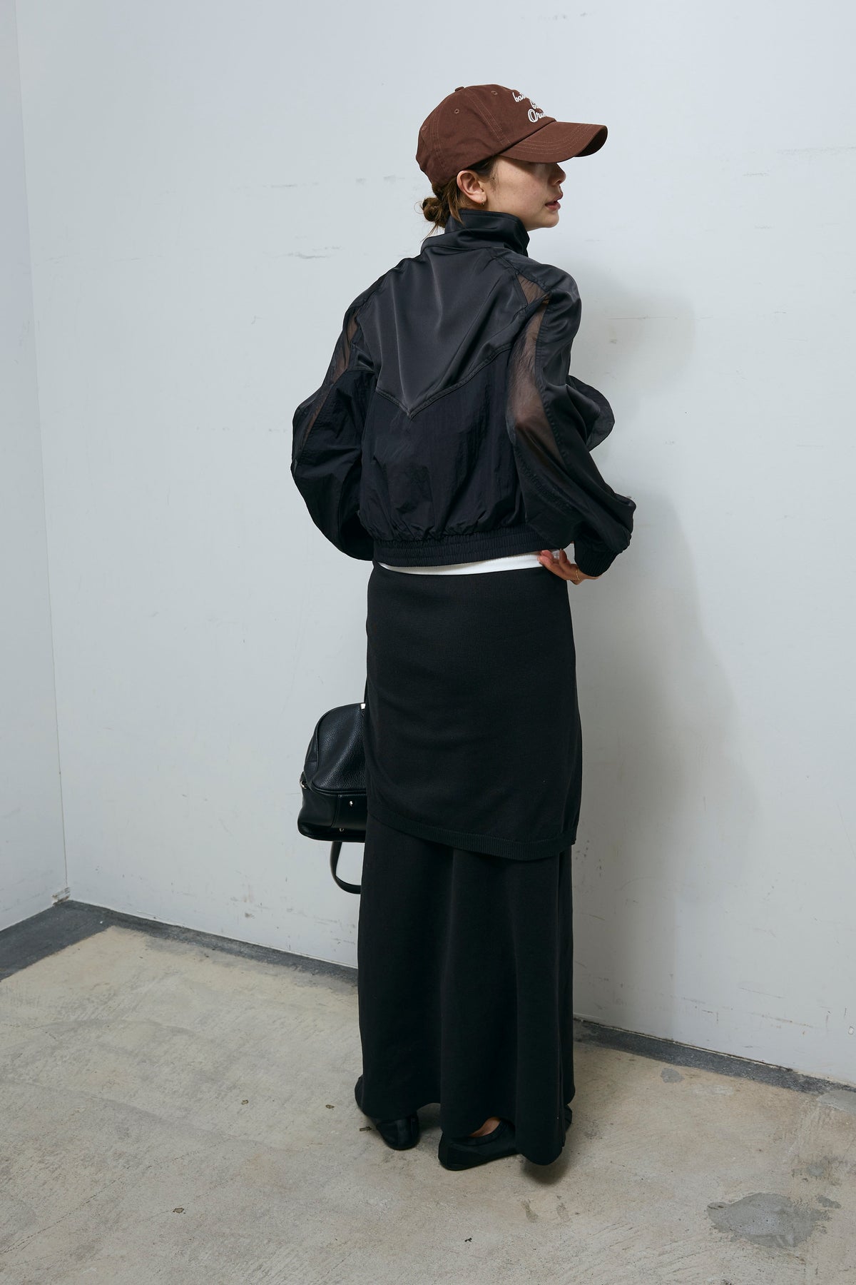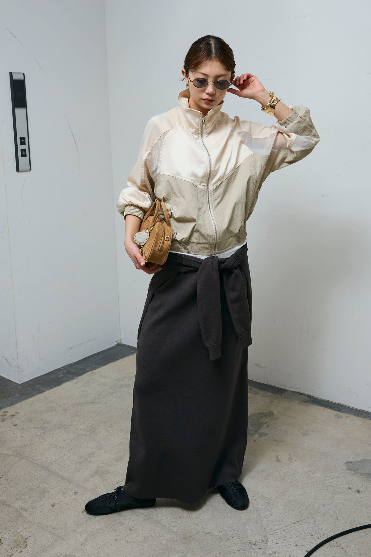 [予約/SET]シアー素材切替ZIPブルゾン+フェイクレイヤードニットスカート(2set)