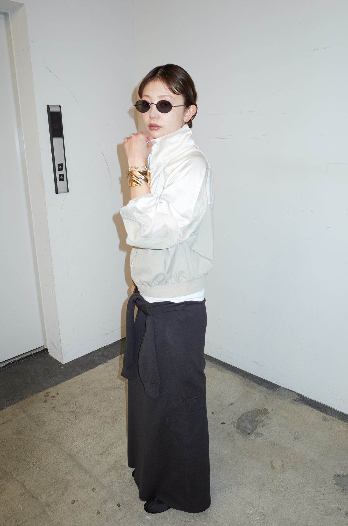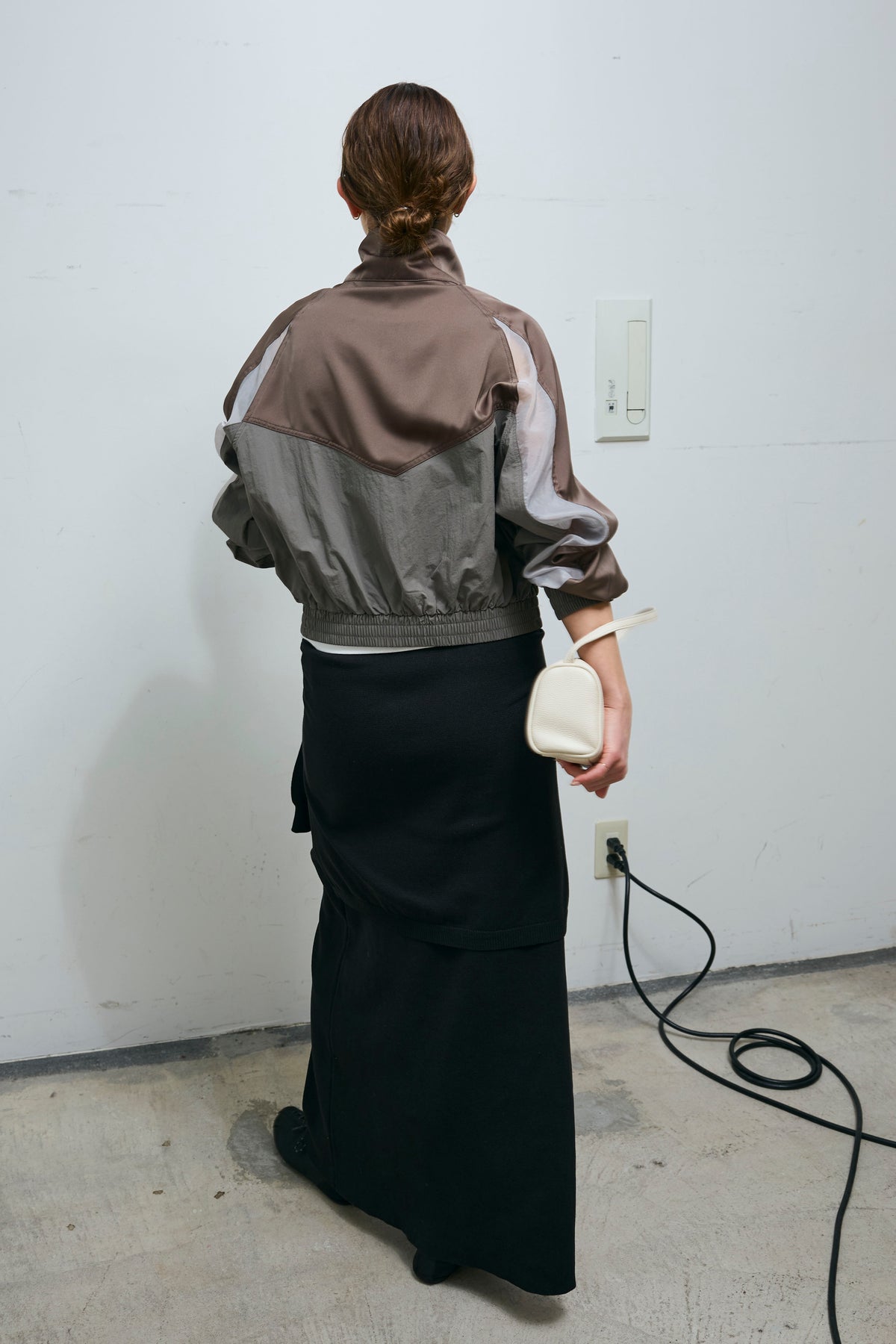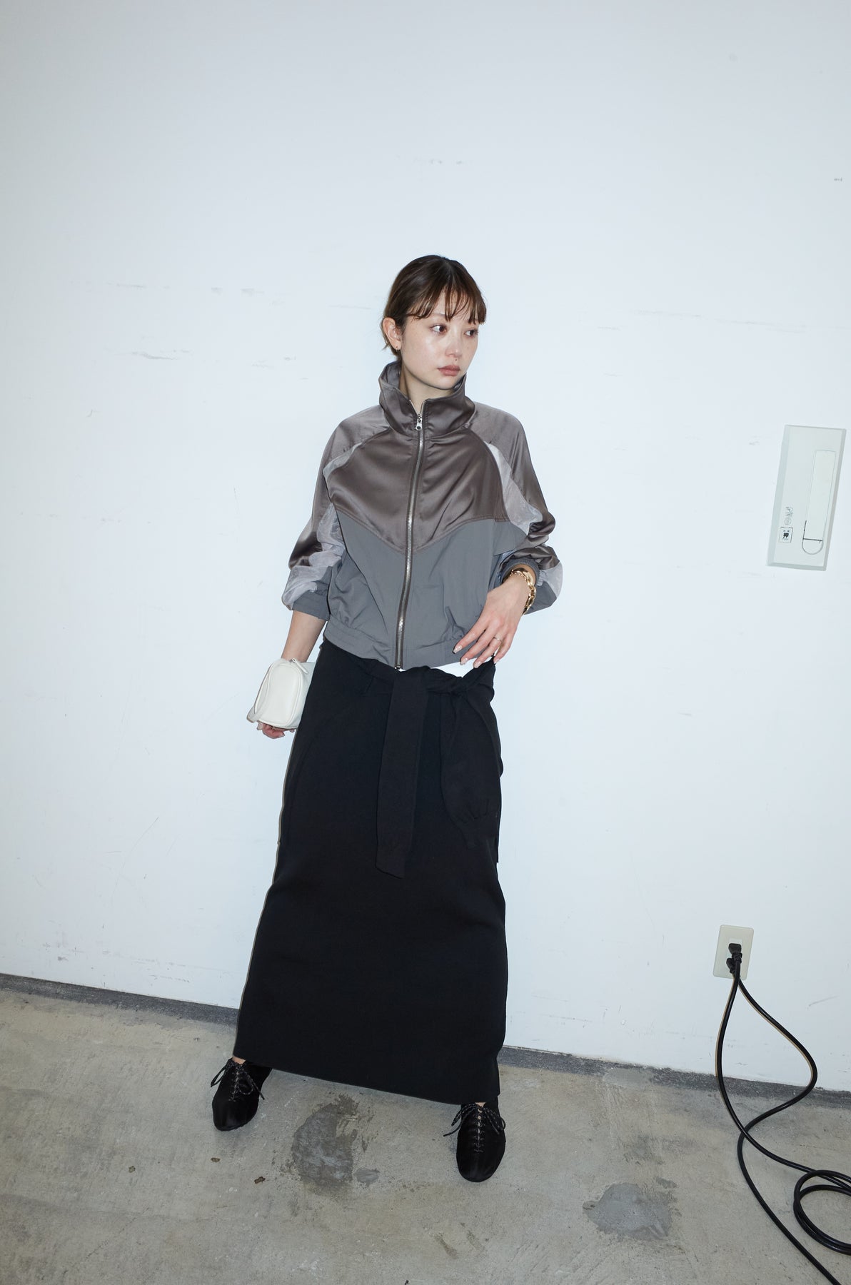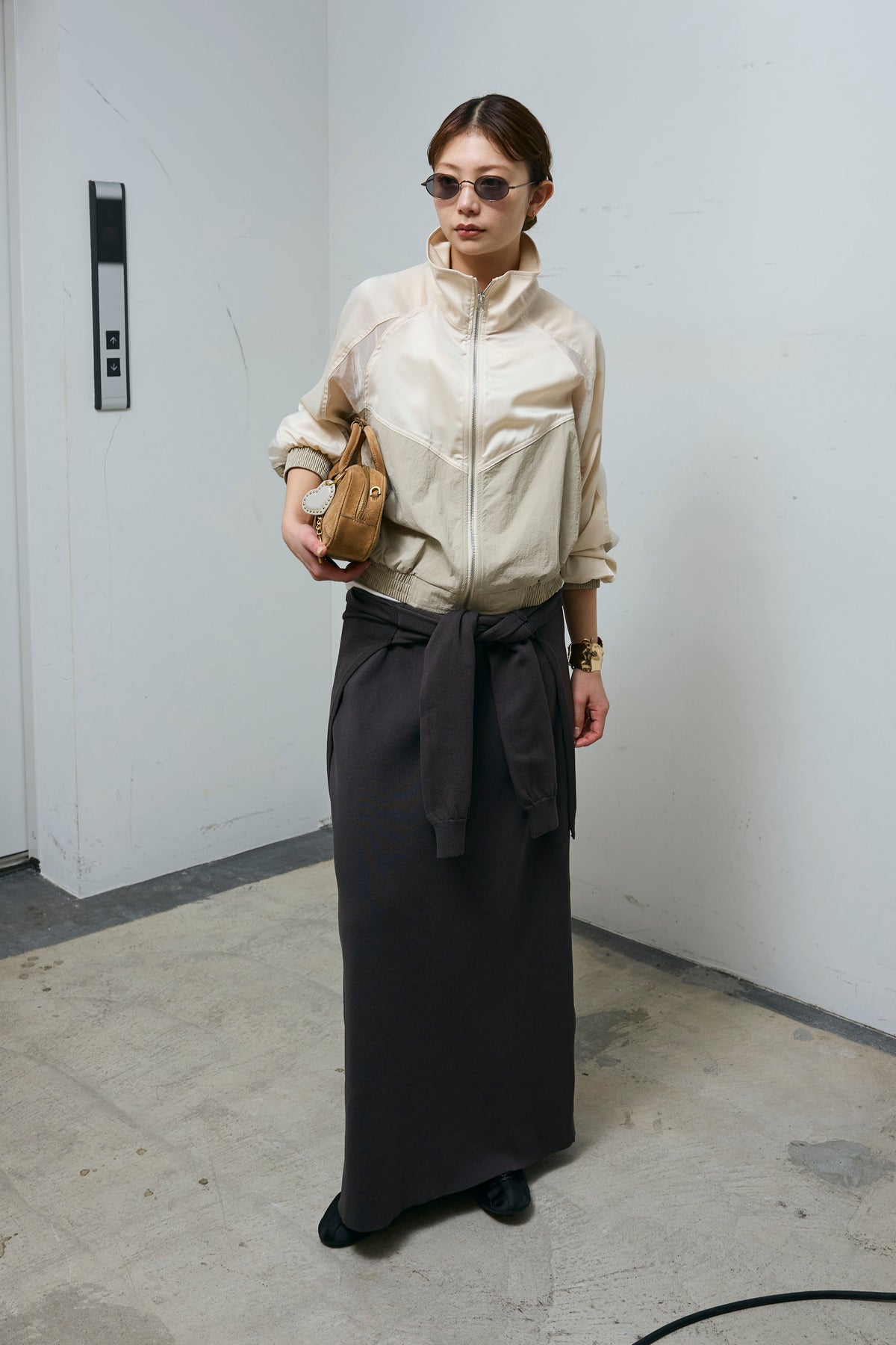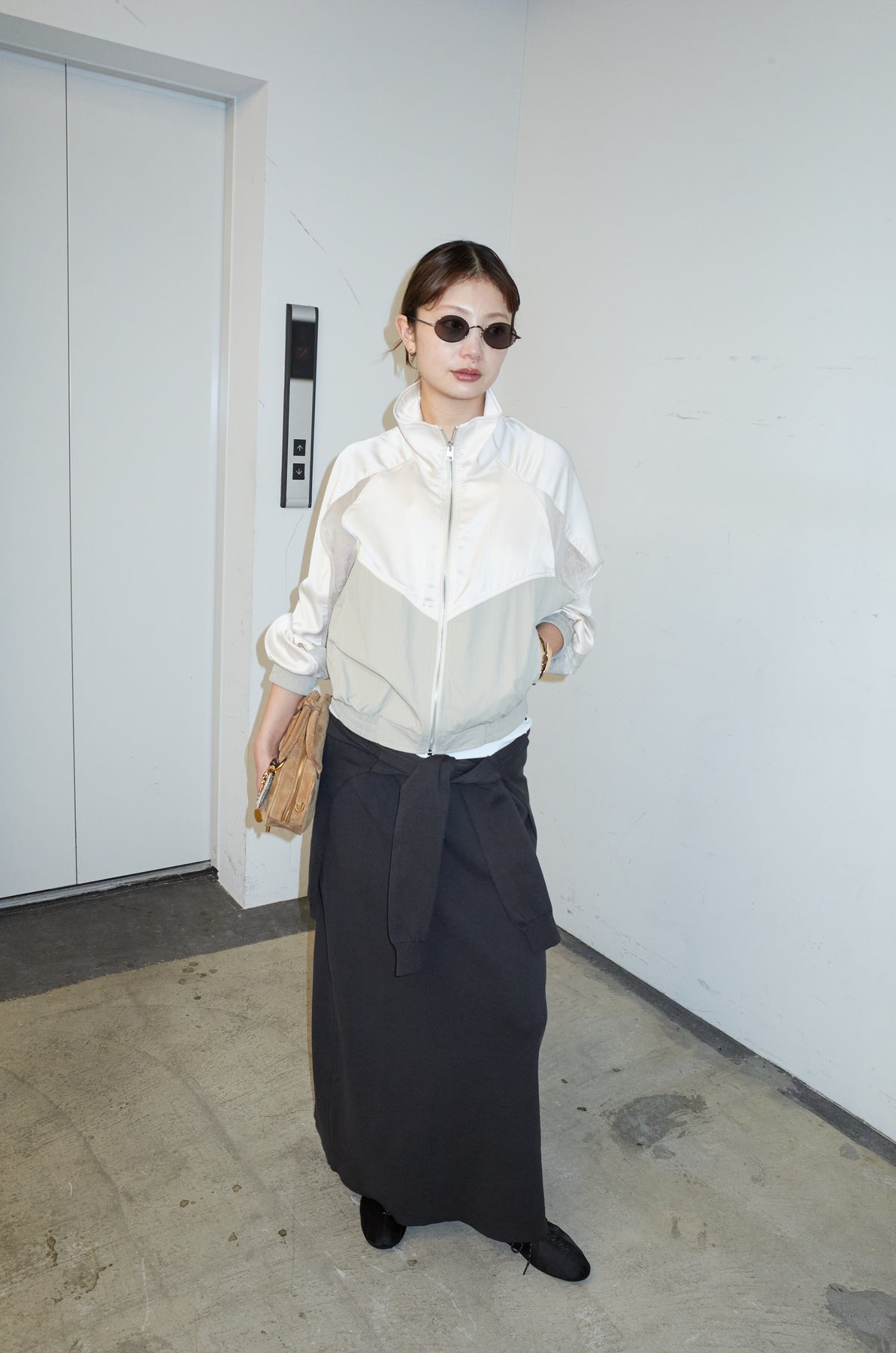 [予約/SET]シアー素材切替ZIPブルゾン+フェイクレイヤードニットスカート(2set)