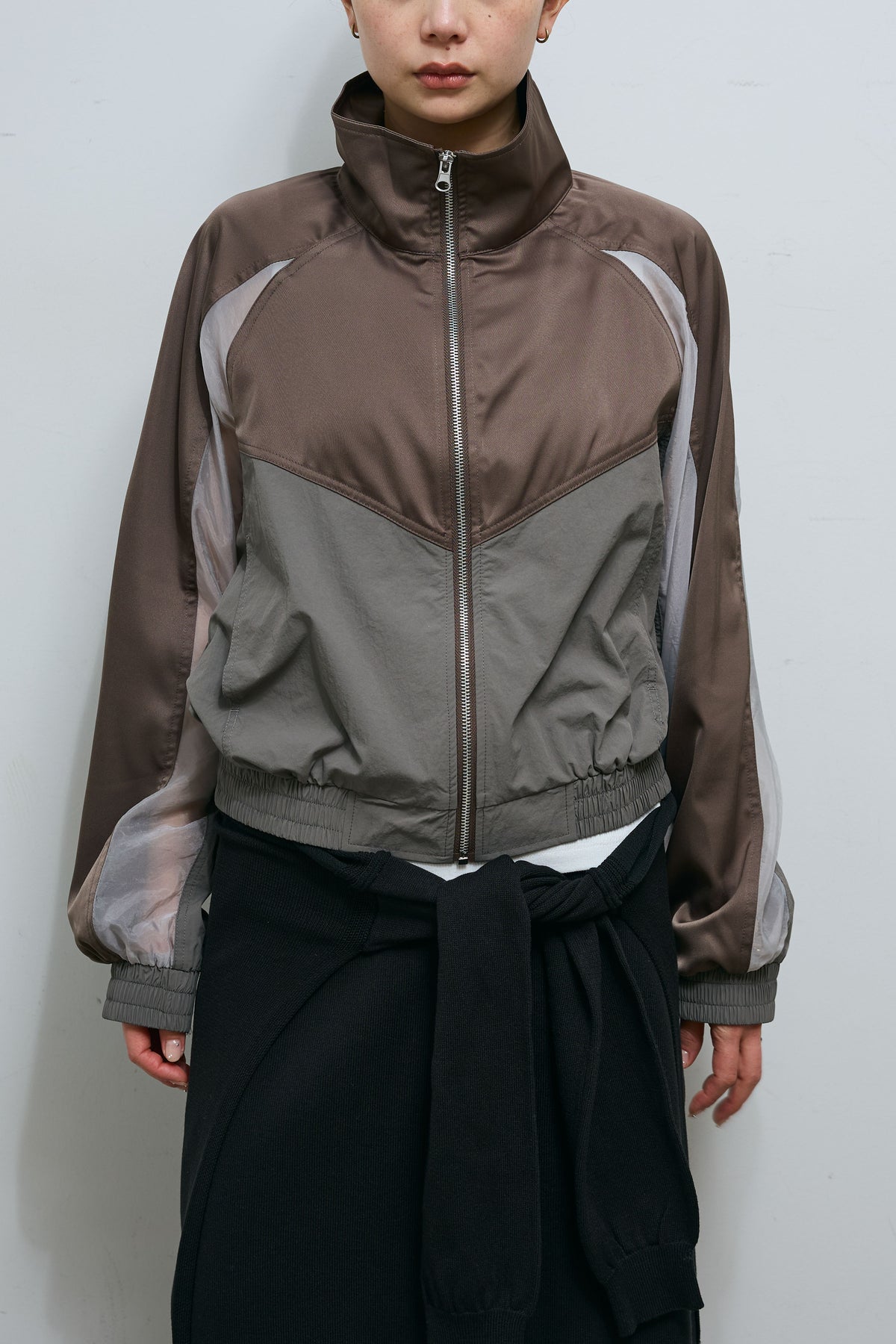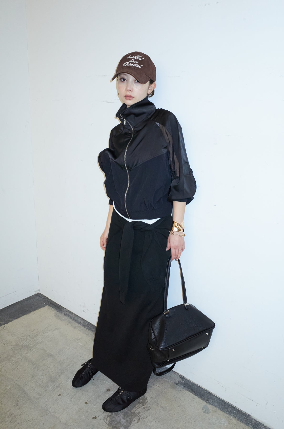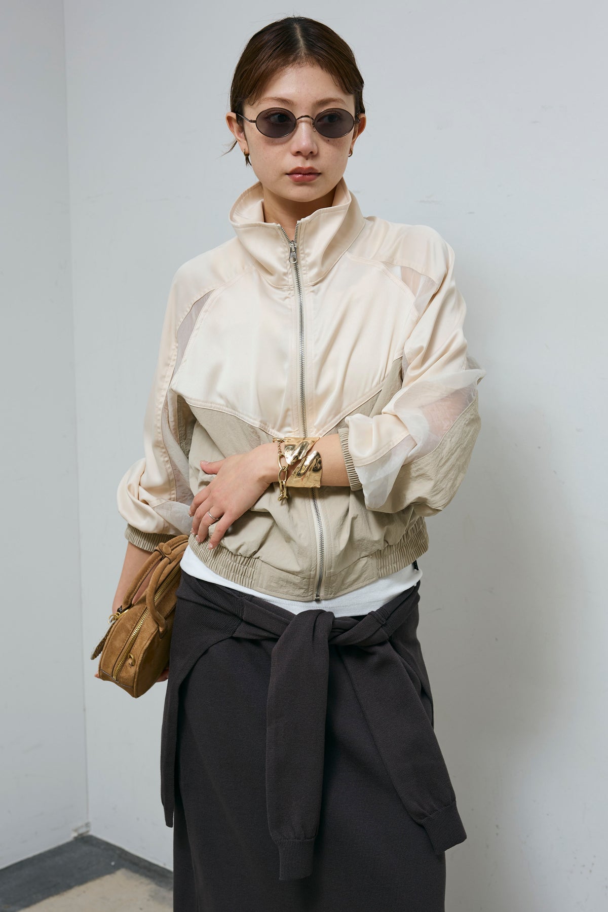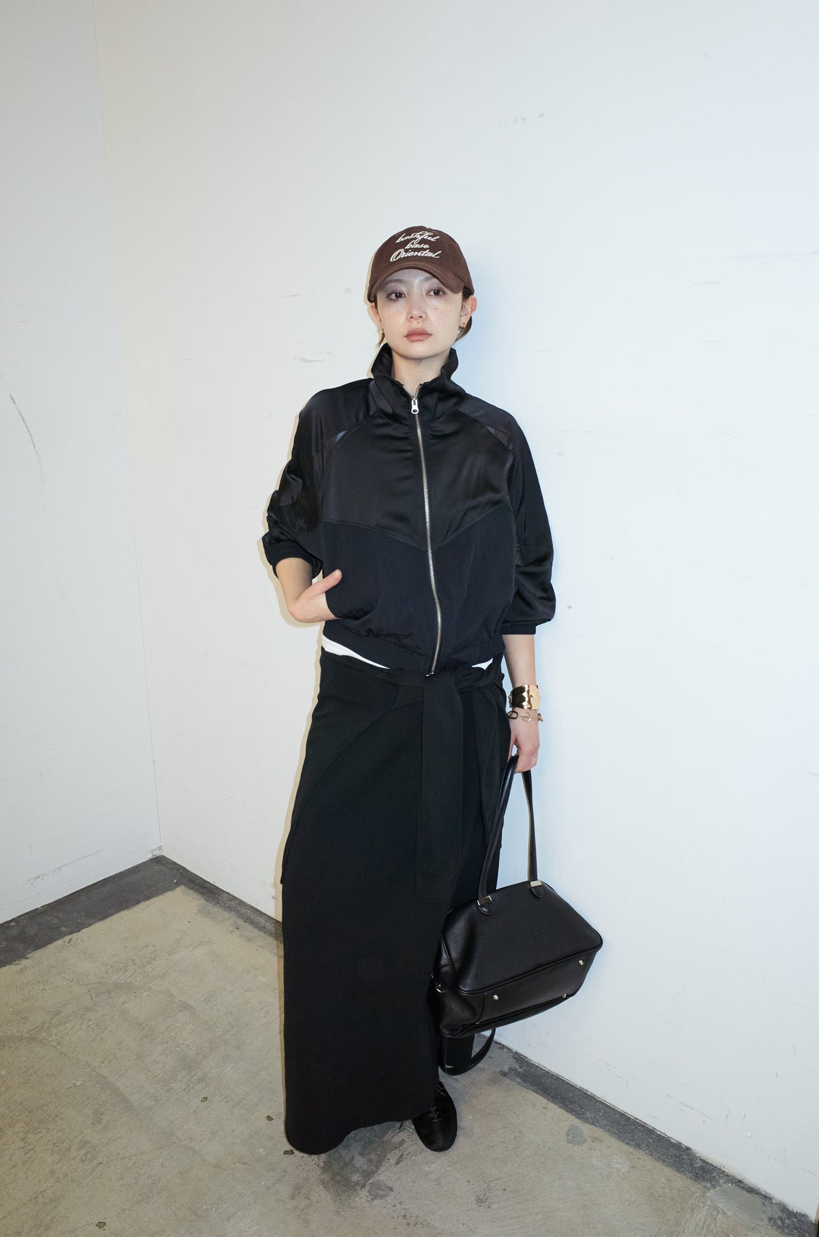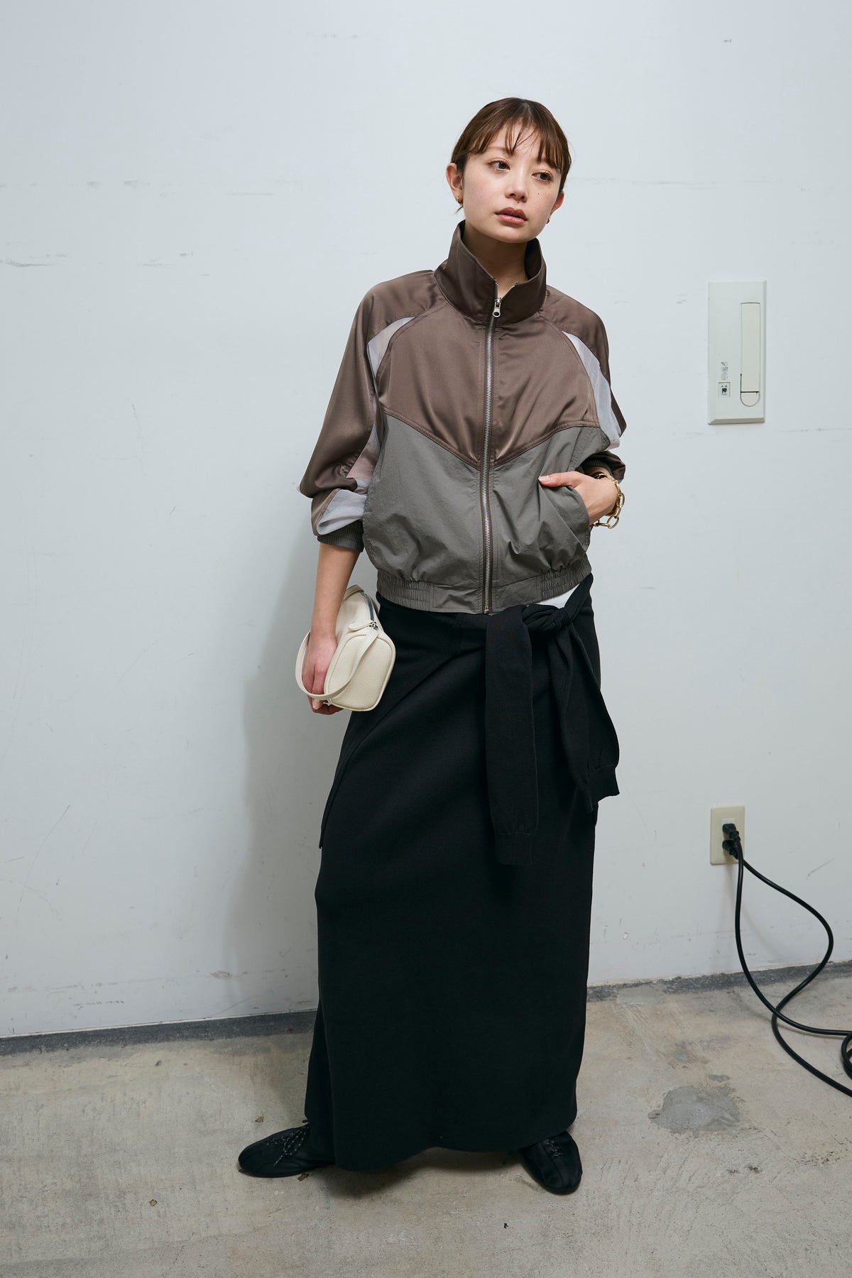 [予約/SET]シアー素材切替ZIPブルゾン+フェイクレイヤードニットスカート(2set)