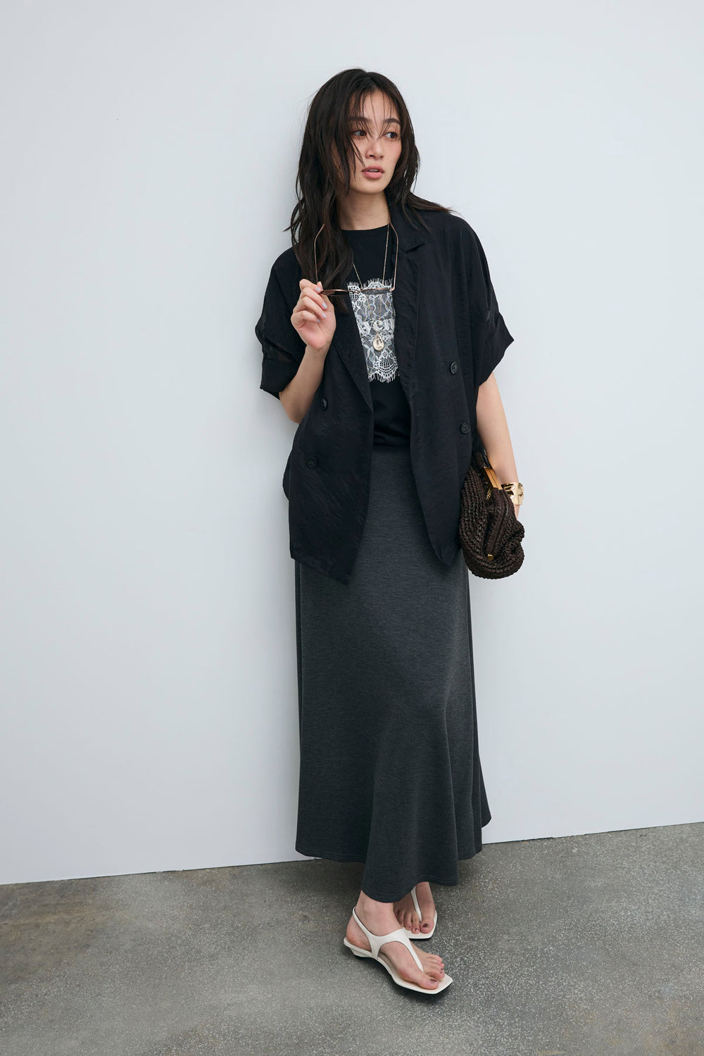 [予約/SET]シアーハーフスリーブジャケット+cooltouchレースロゴ刺繍Tシャツ+ダブルフェイスジャージースカート(3set)