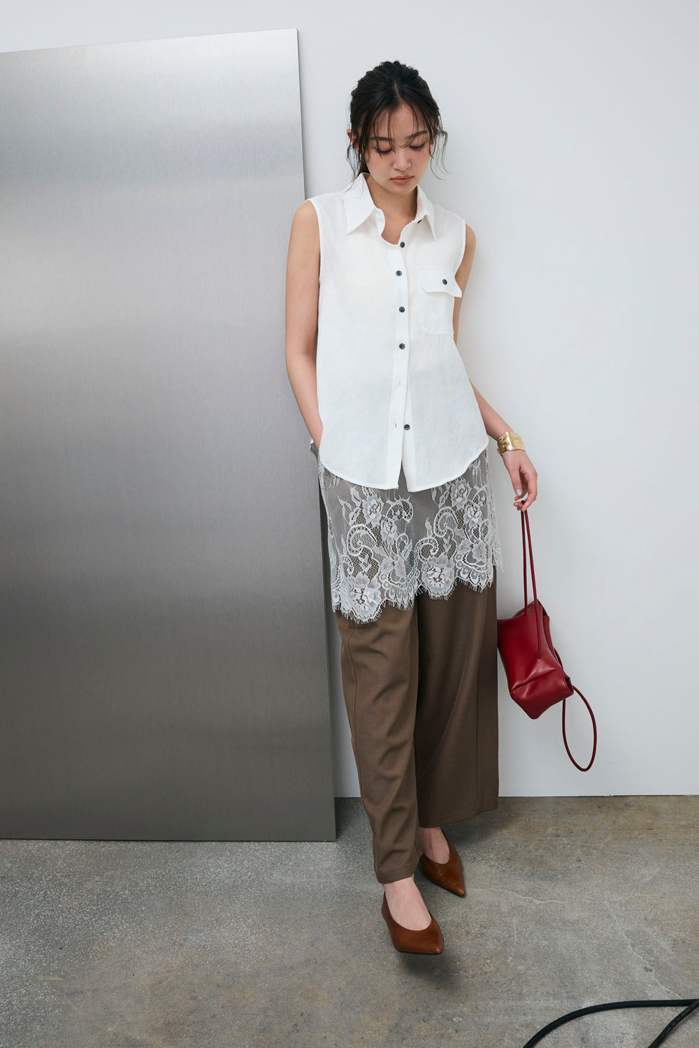[予約/SET]ポケットノースリーブシャツ+レースドッキングツイルパンツ(2set)