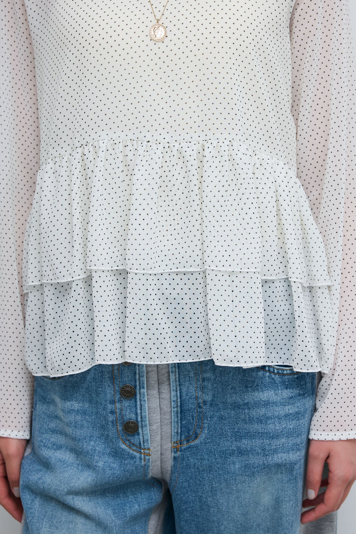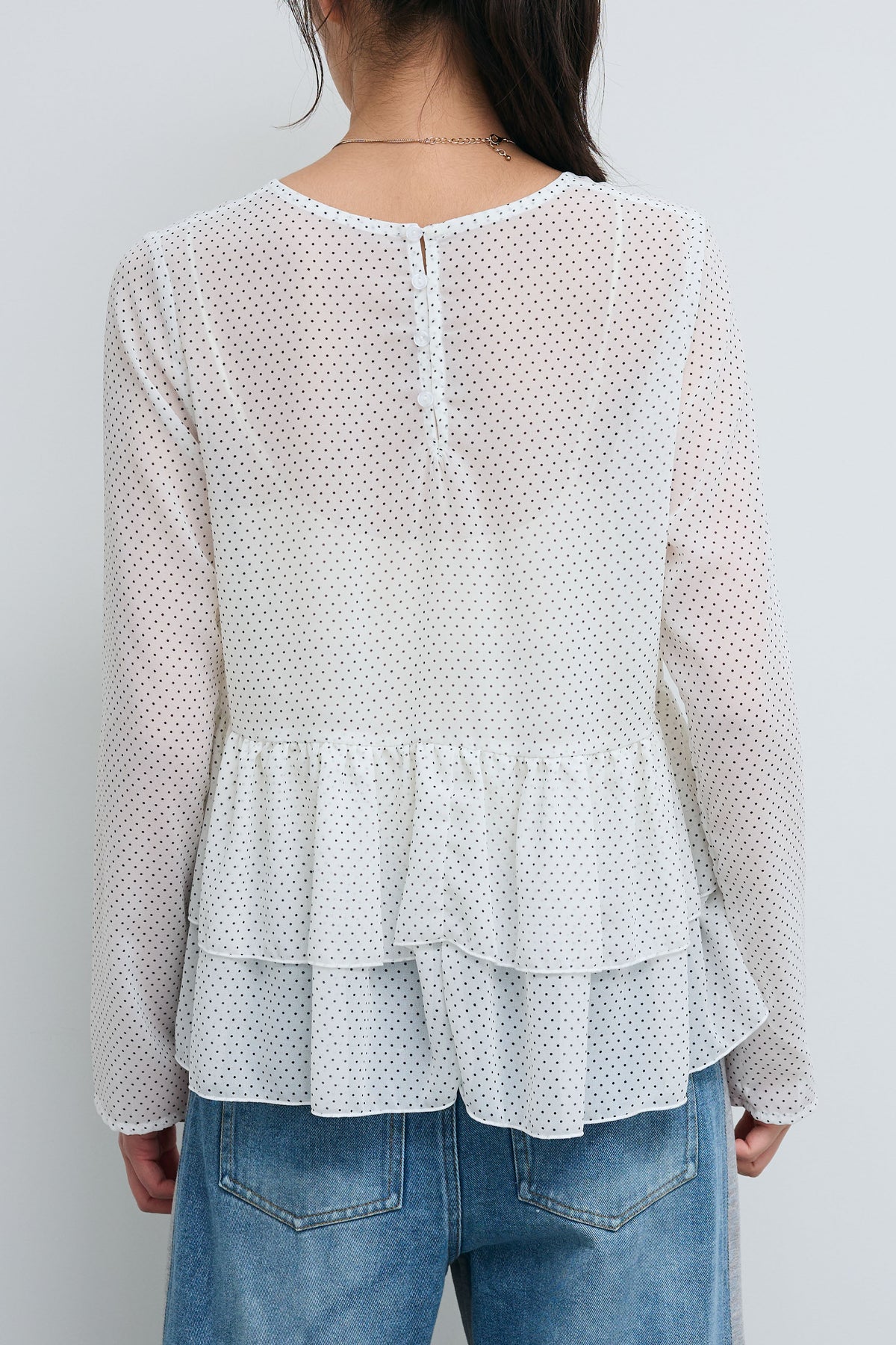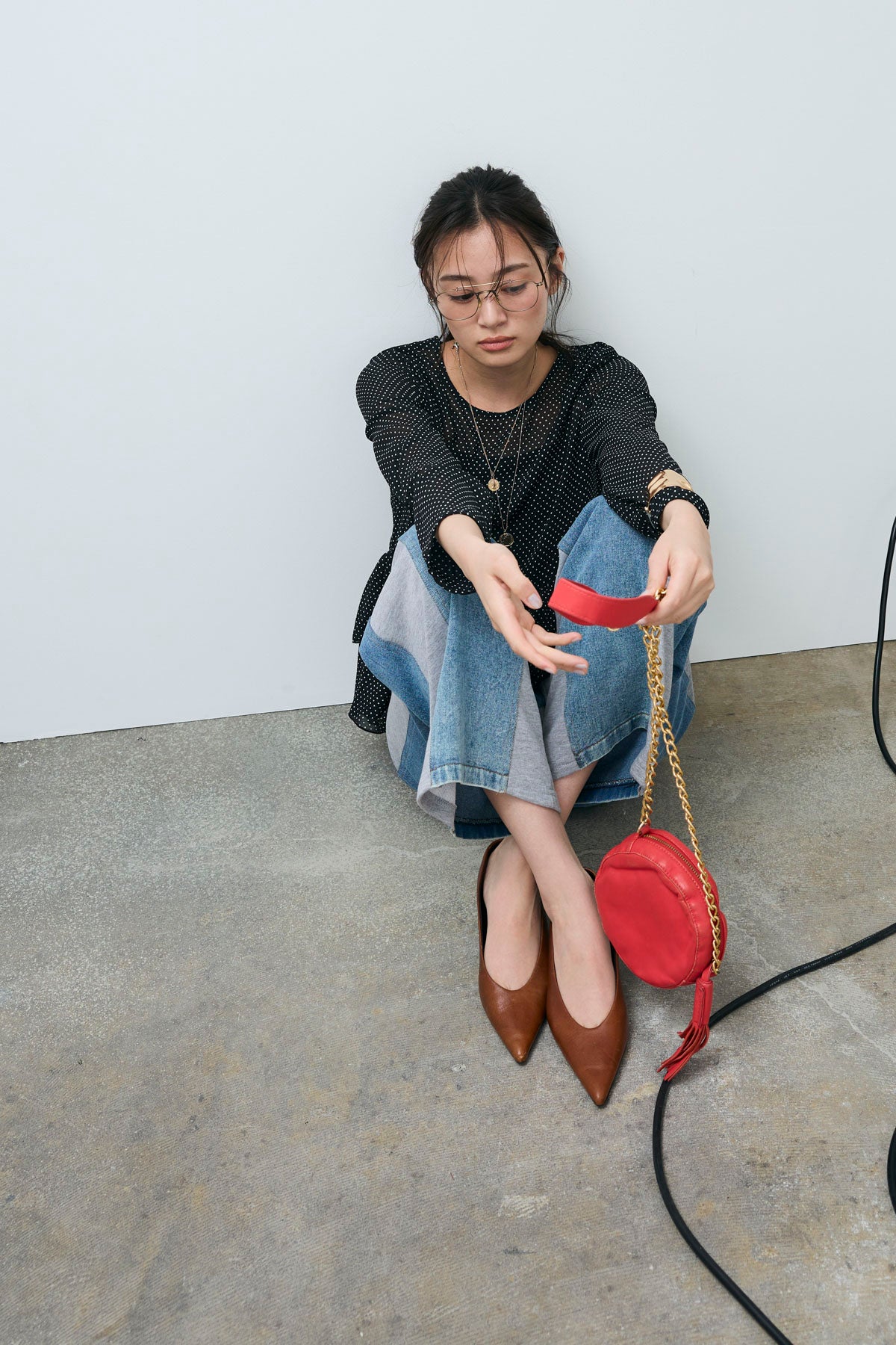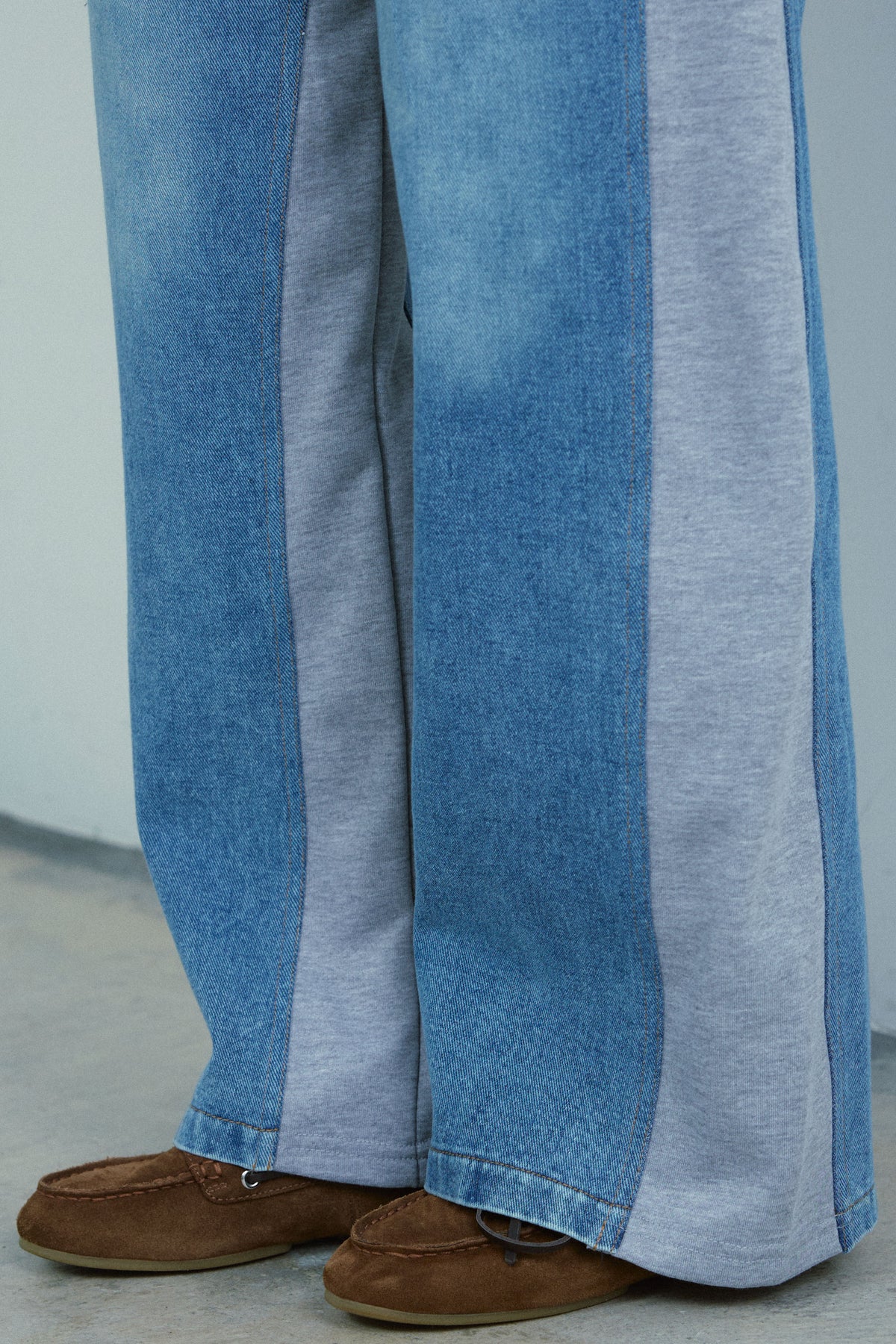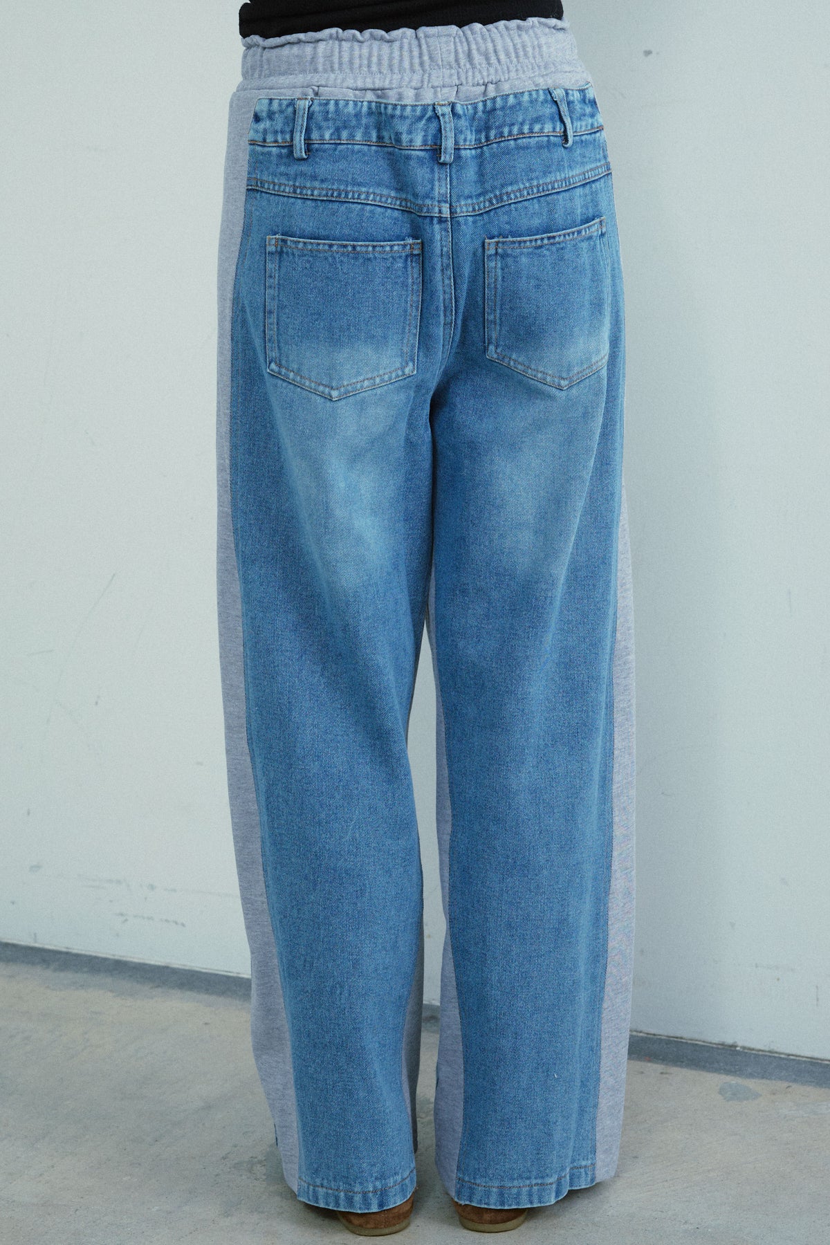 [予約/SET]シアードットブラウス+スウェット切り替えデニムパンツ(2set)