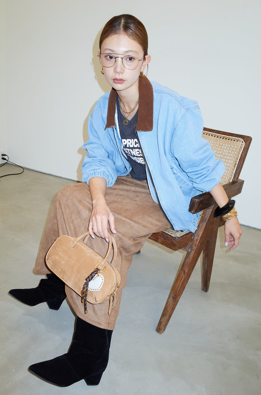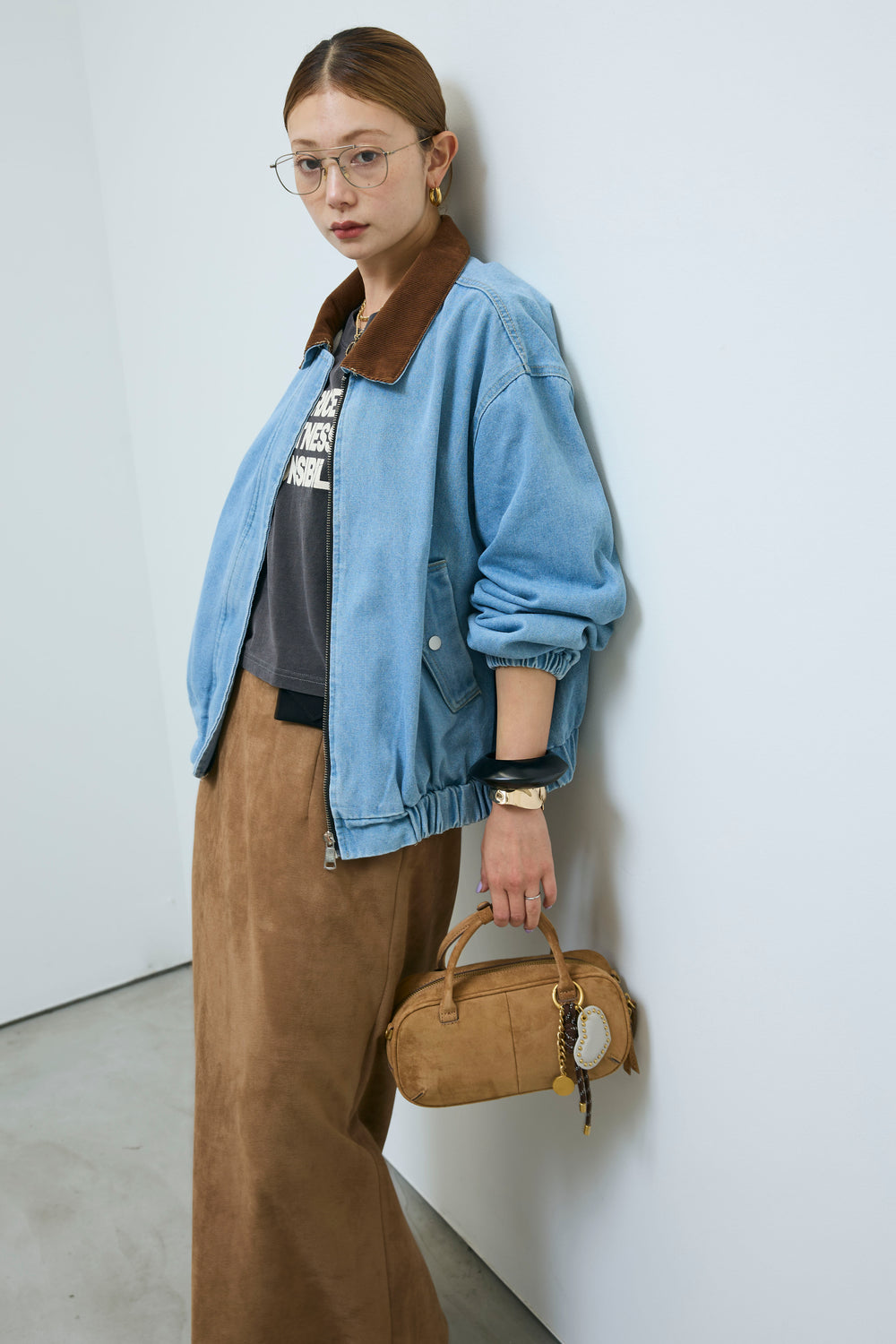 [予約/SET]コーデュロイ襟デニムブルゾン+ピグメントロゴショート丈T+フェイクスウェードペンシルSK(3set)