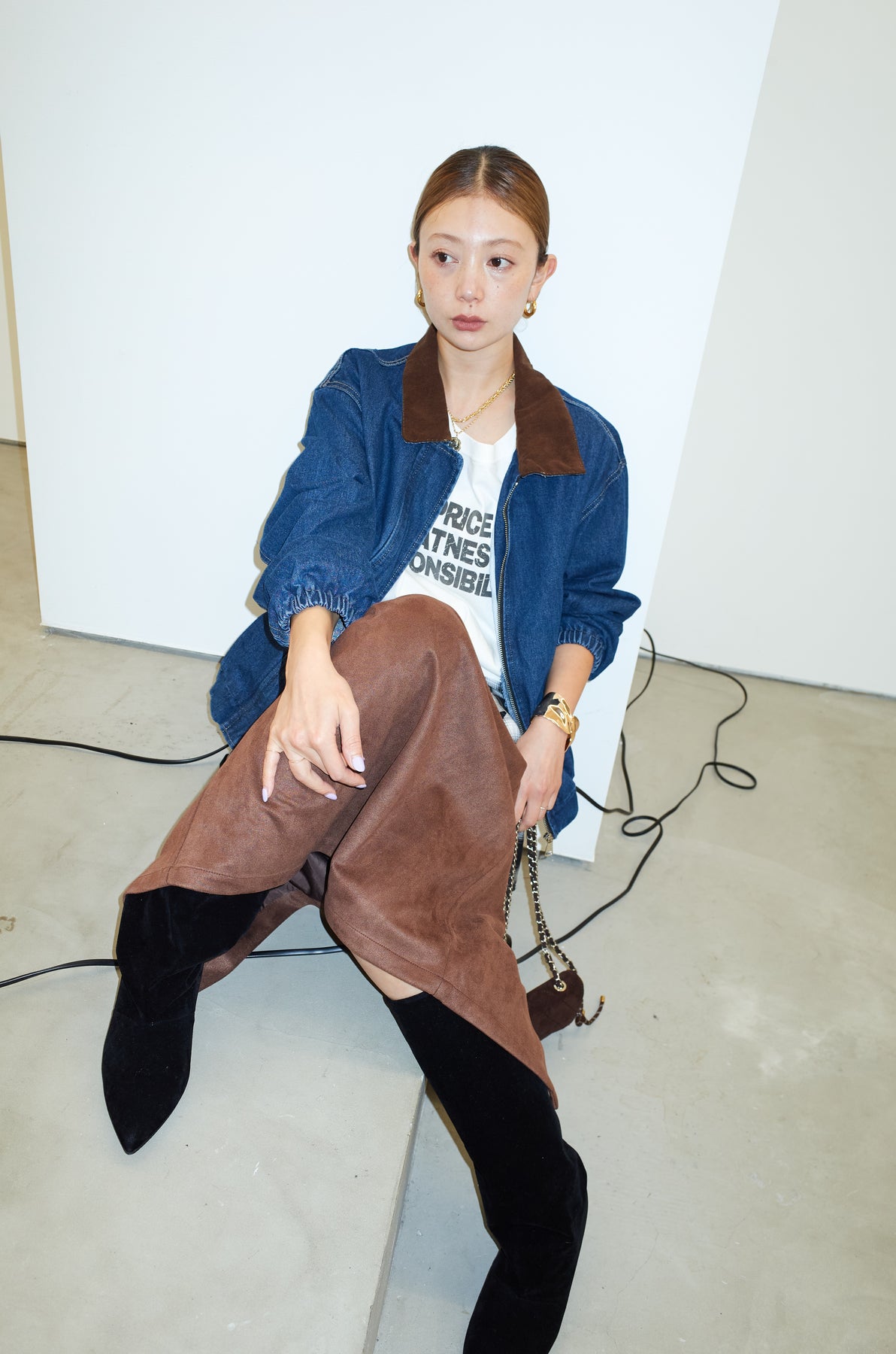 [予約/SET]コーデュロイ襟デニムブルゾン+フェイクスウェードペンシルSK(2set)