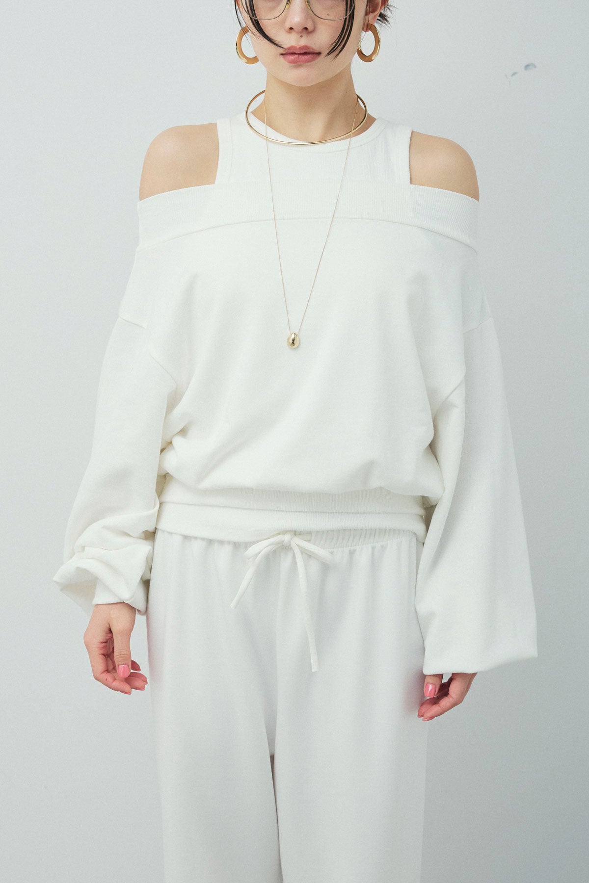 程よいラフさと女性らしさを兼ね備えたオフショルダーデザインのプルオーバー。裏毛素材で柔らかな肌触りと快適な着心地を実現。ワイドなシルエットが抜け感を演出し、カジュアルなコーディネートに程よいアクセントをプラス。デニムやスウェットパンツと合わせたリラックススタイルはもちろん、タイトスカートと合わせてバランスを楽しむのもおすすめ。