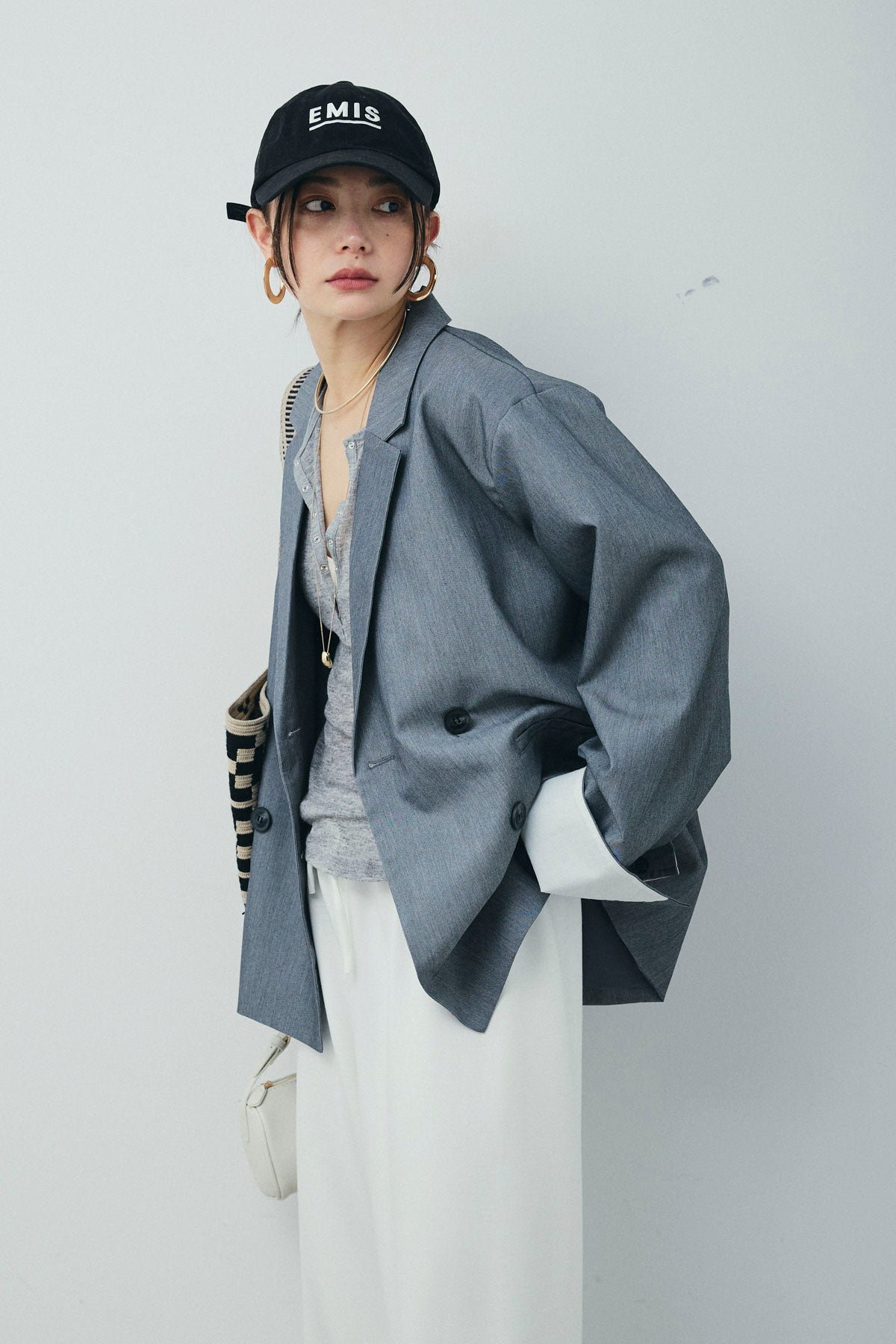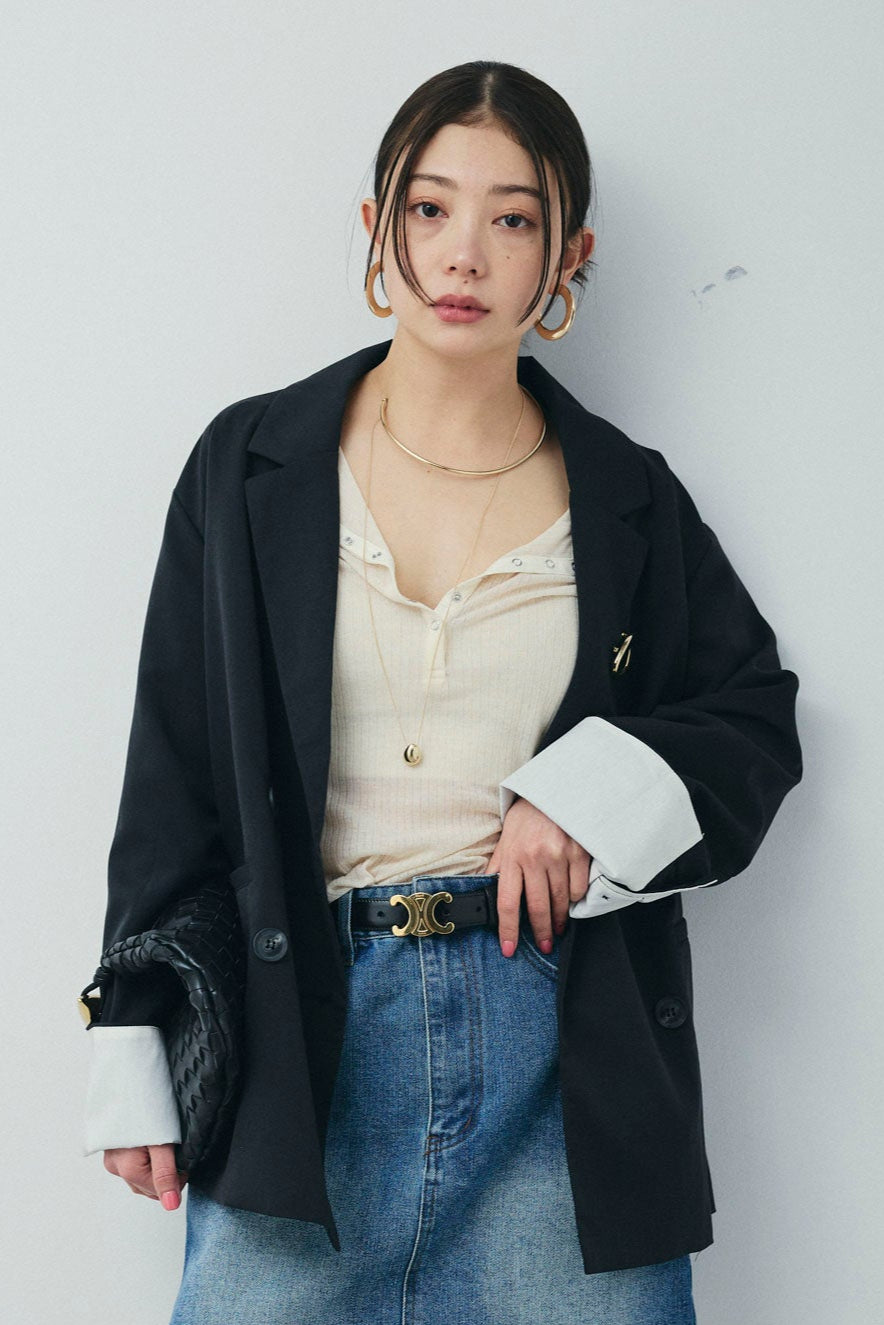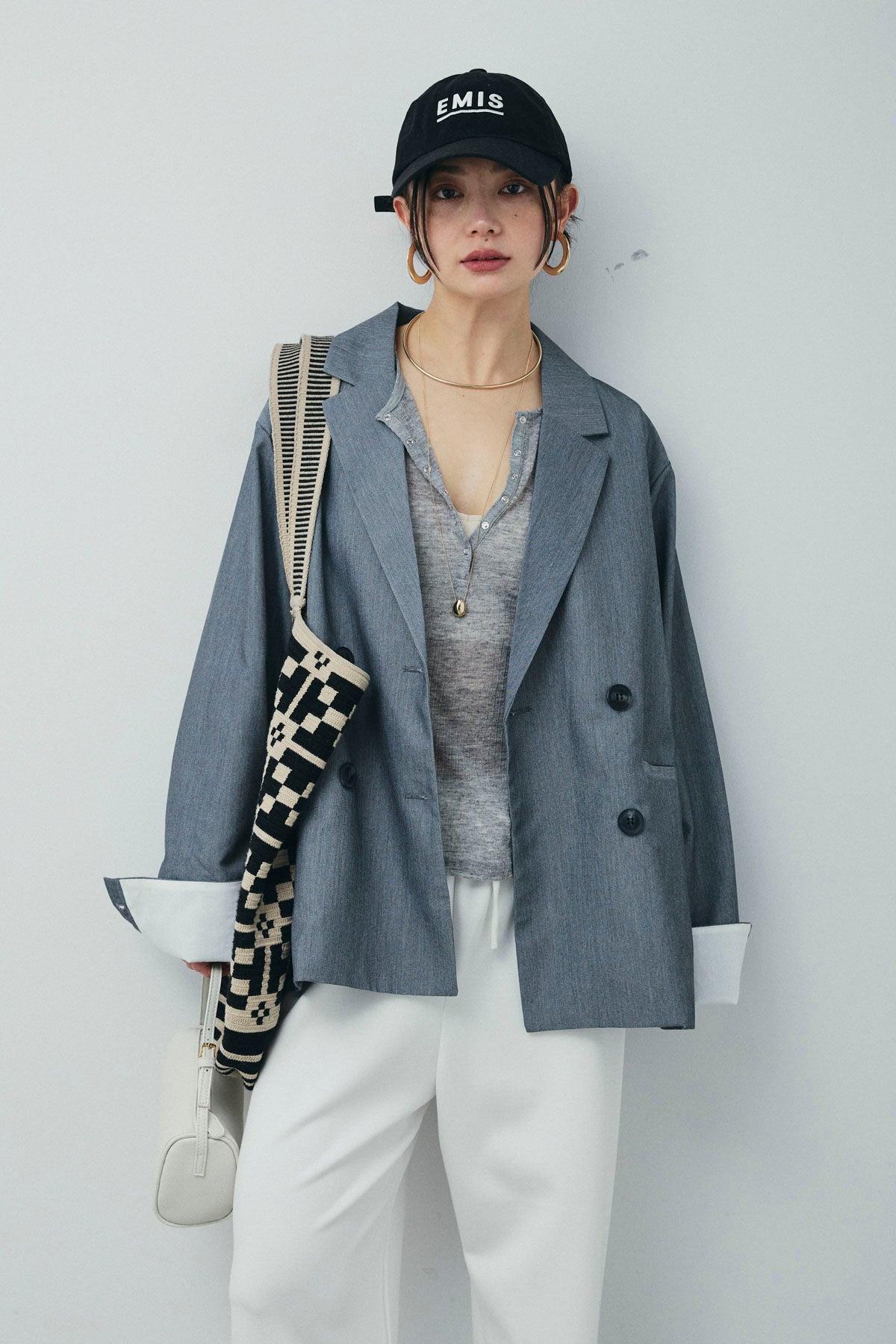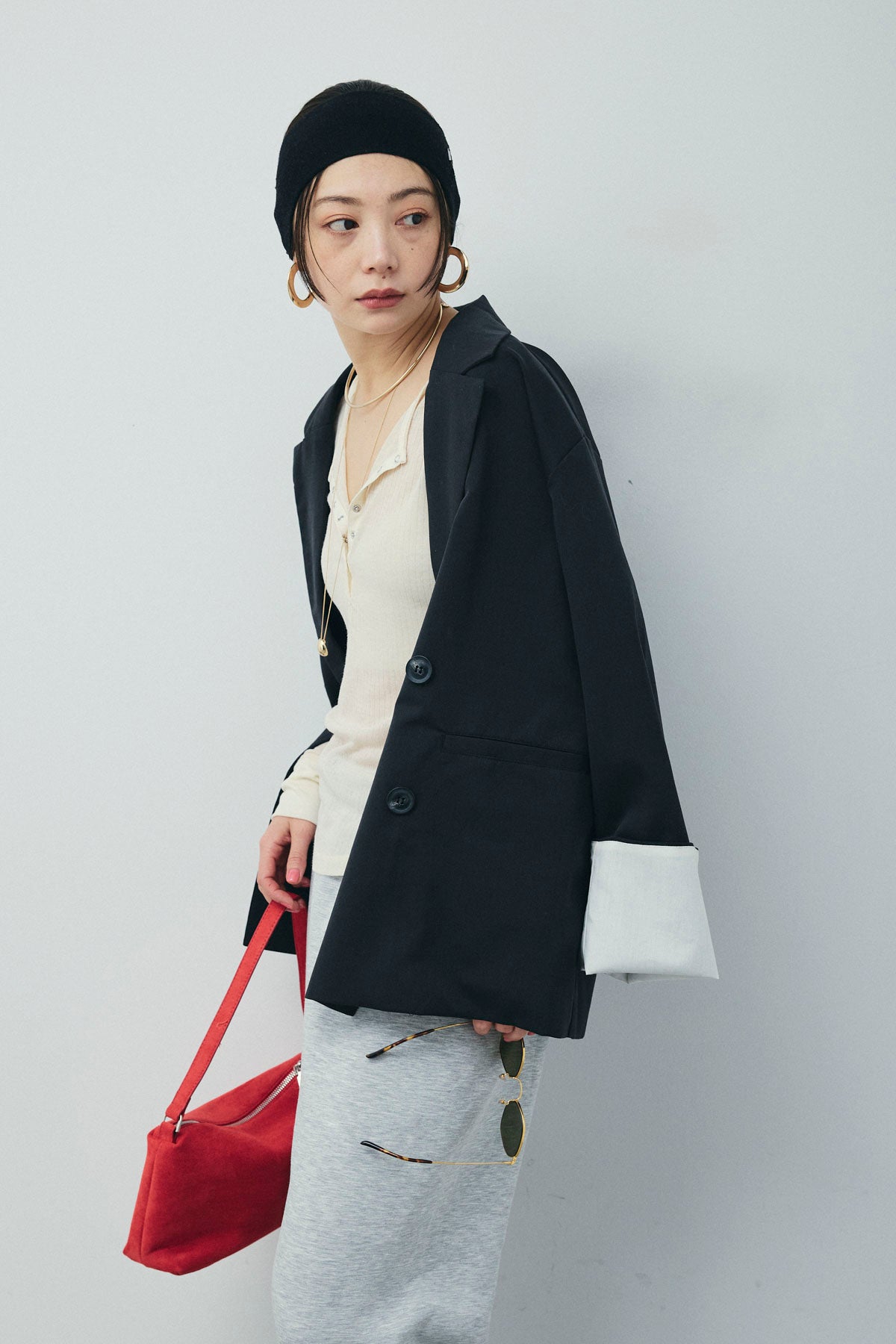 [予約/SET]TRツイル袖折り返しダブルジャケット+シアーテレコヘンリーネックPO(2set)