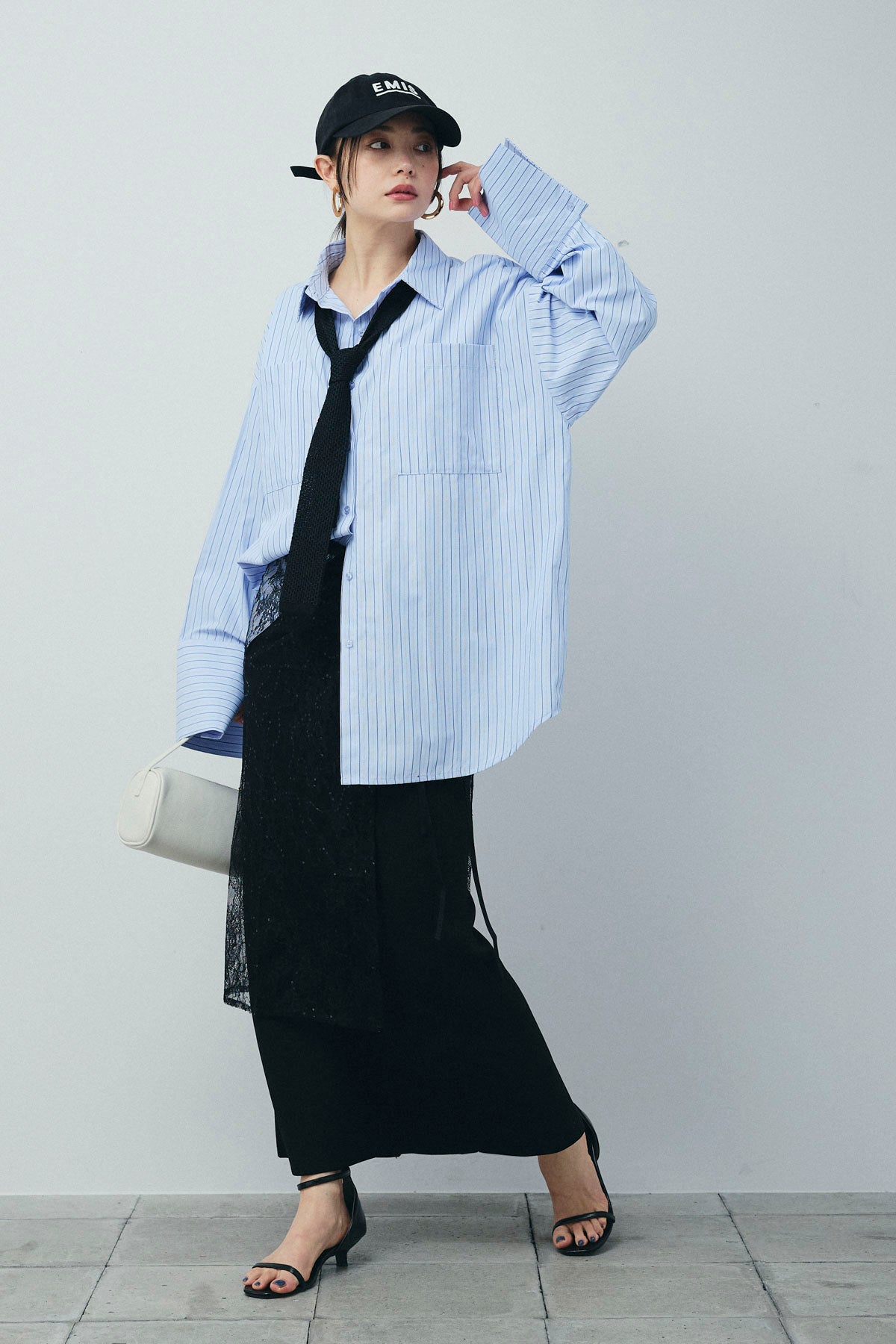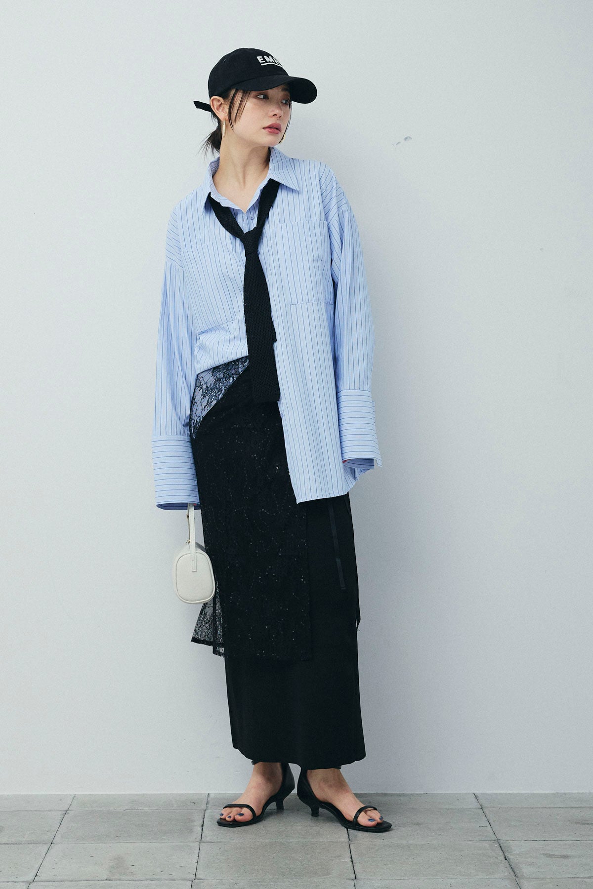 [予約/SET]ビッグカフスオーバーサイズシャツ+ダンボールニットスカート(2set)