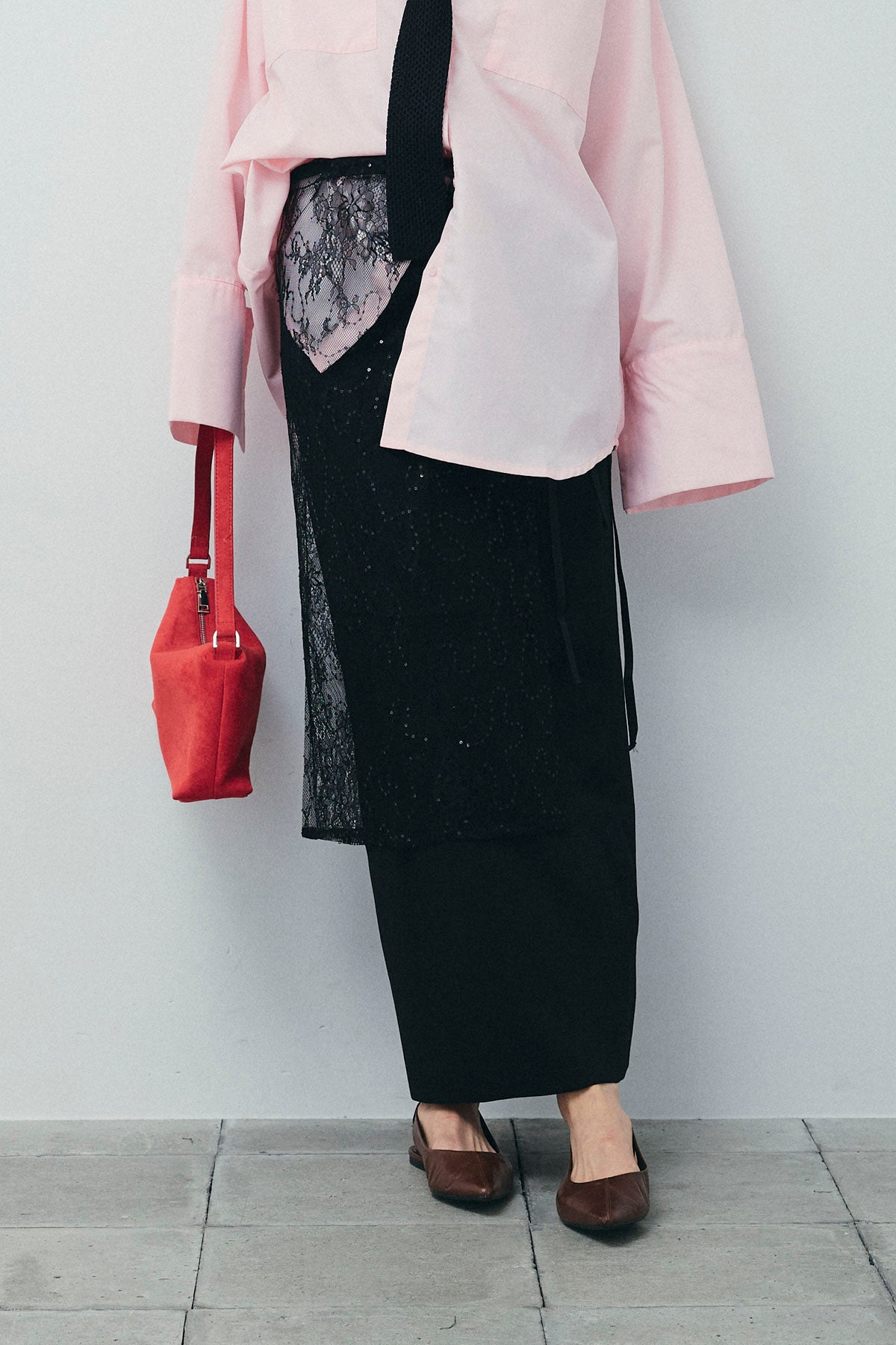 [予約/SET]ダンボールニットスカート+ラメレースラップスカート(2set)