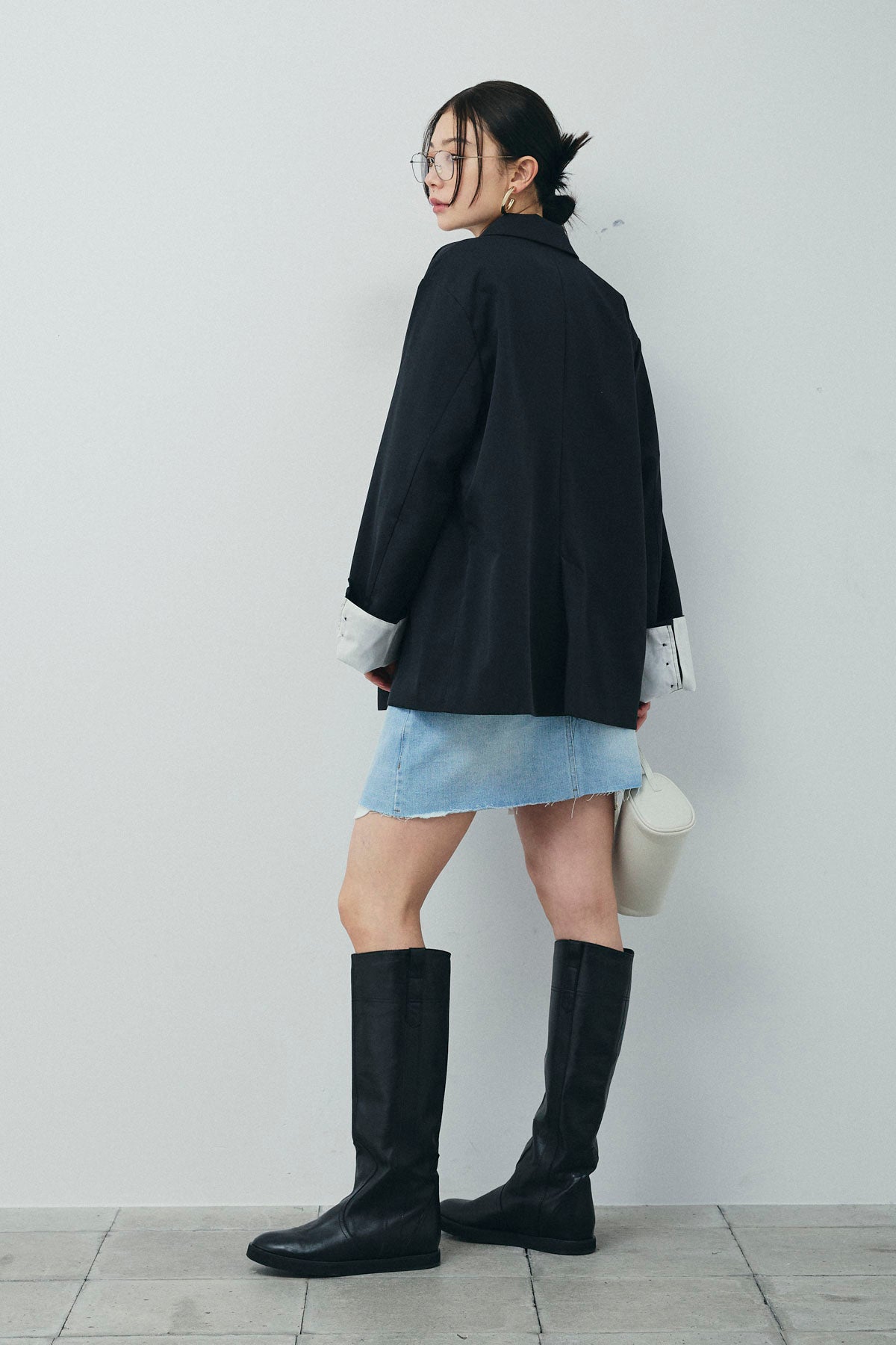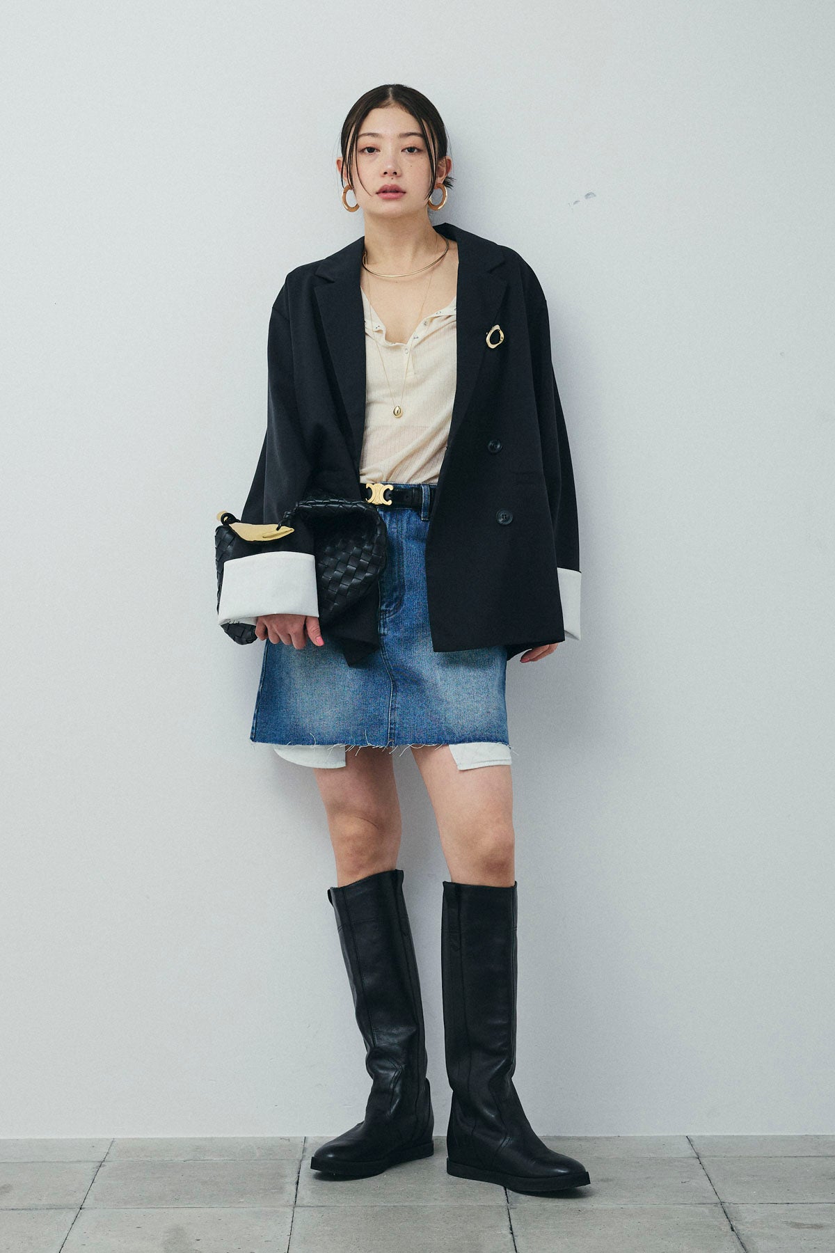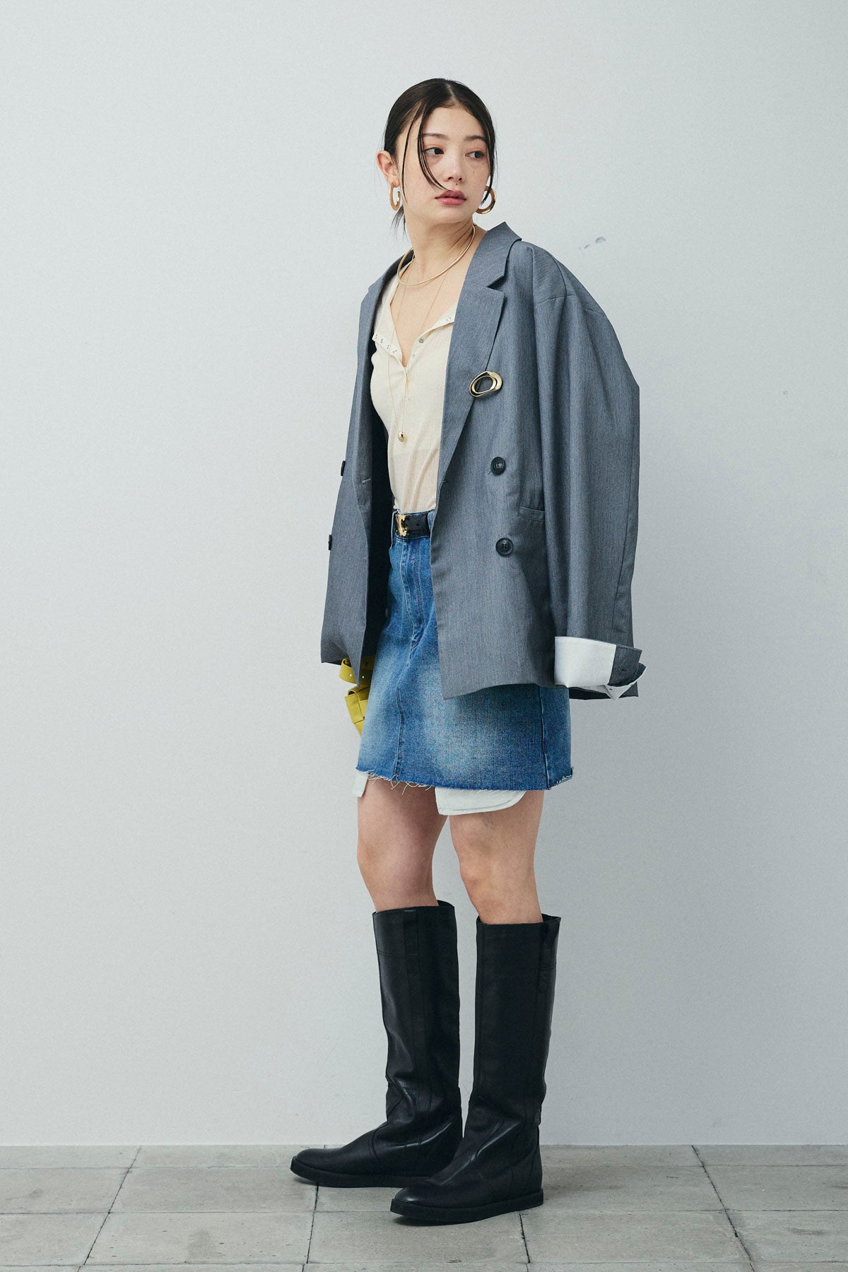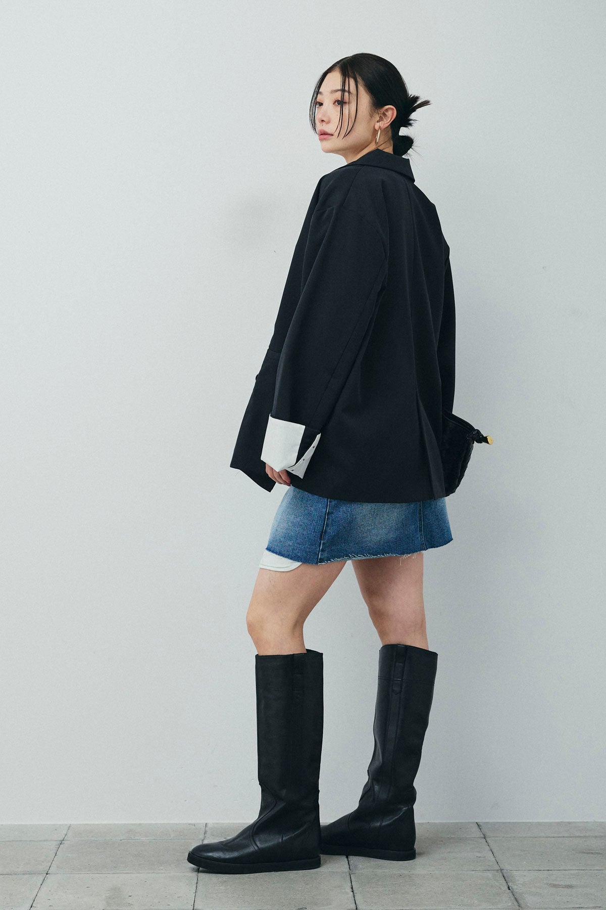 [予約/SET]TRツイル袖折り返しダブルジャケット+デニムミニスカート(2set)