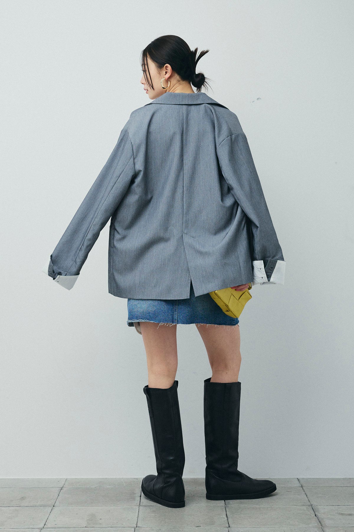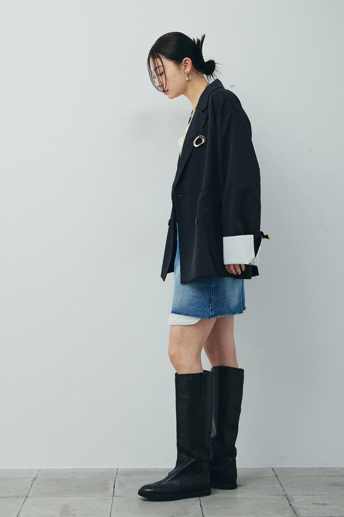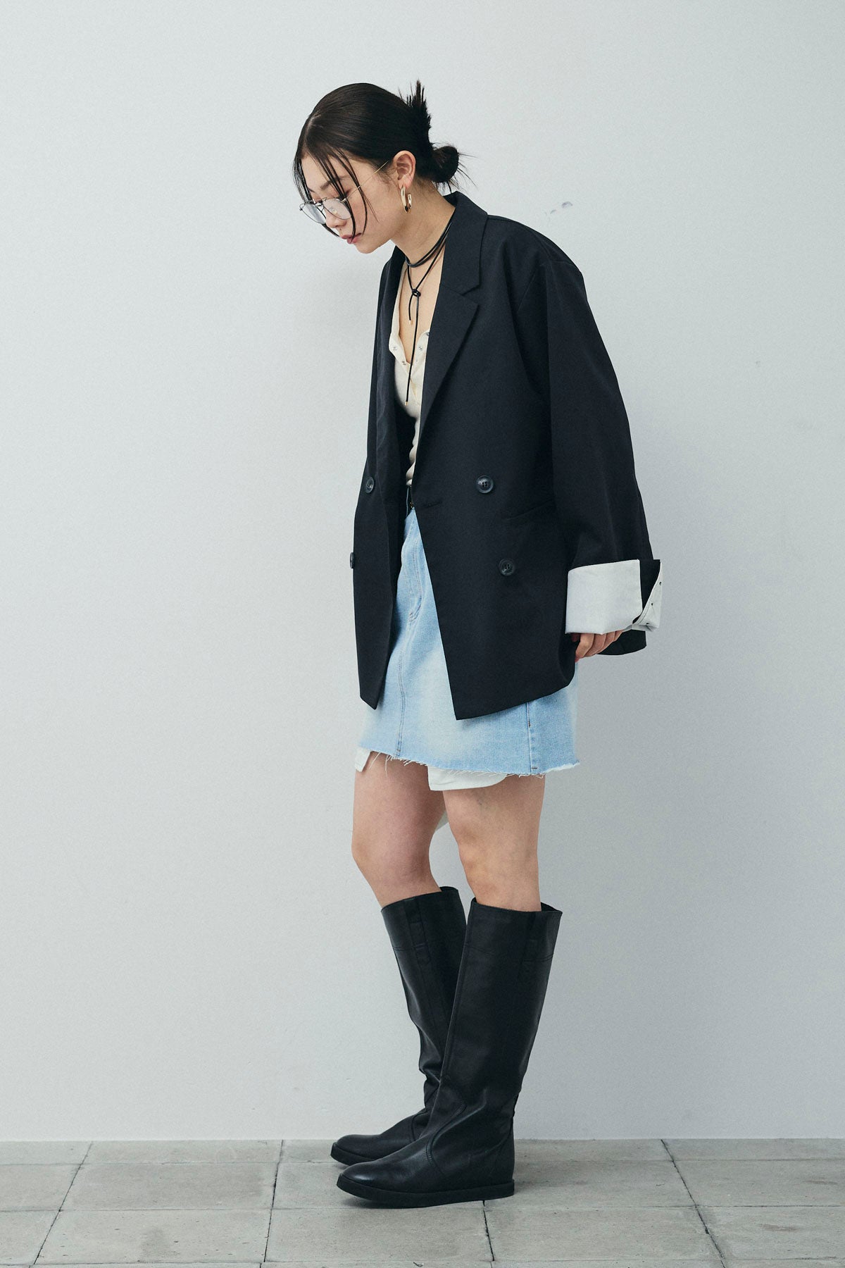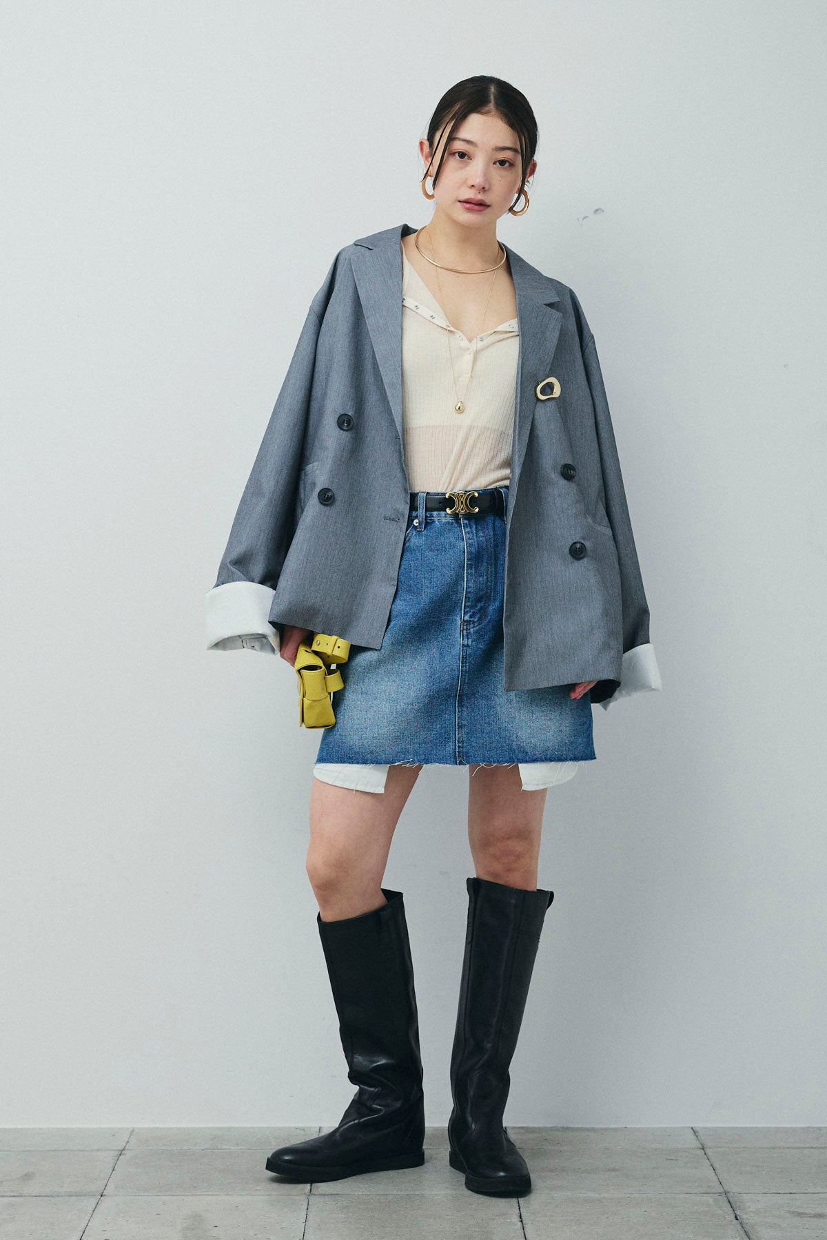 [予約/SET]TRツイル袖折り返しダブルジャケット+デニムミニスカート(2set)