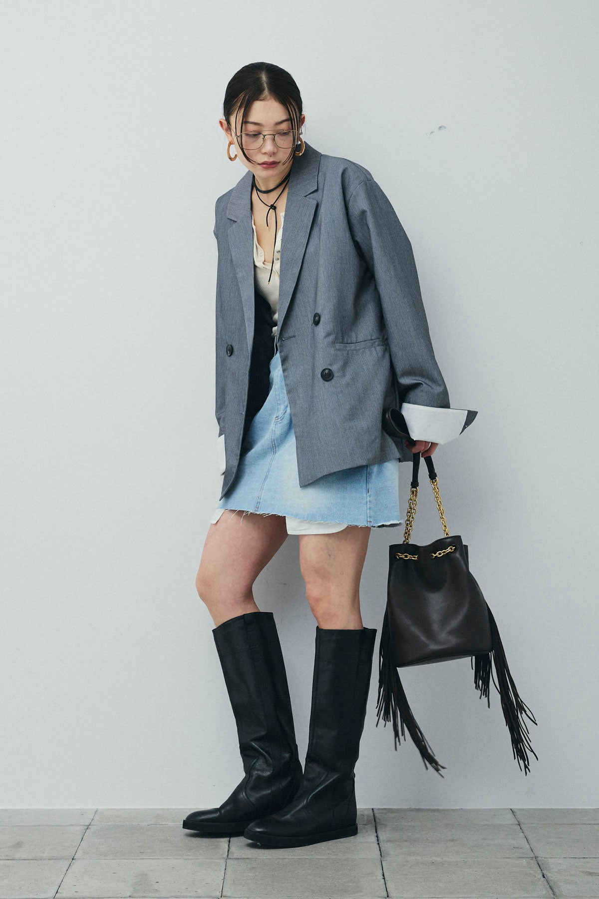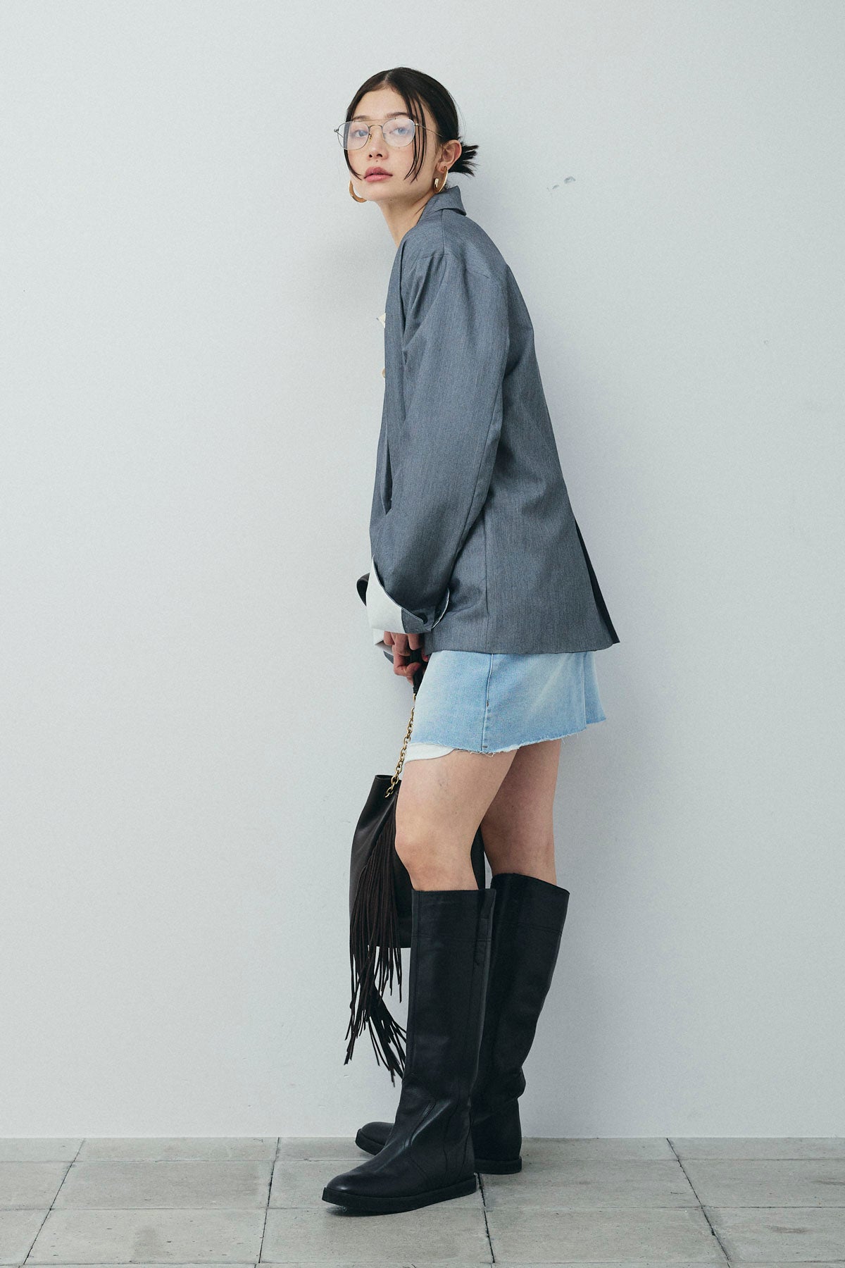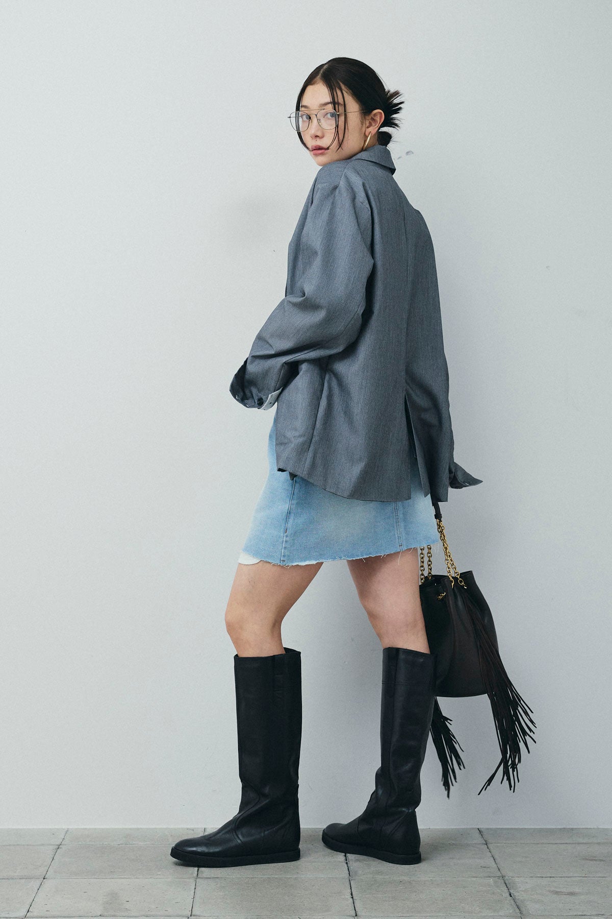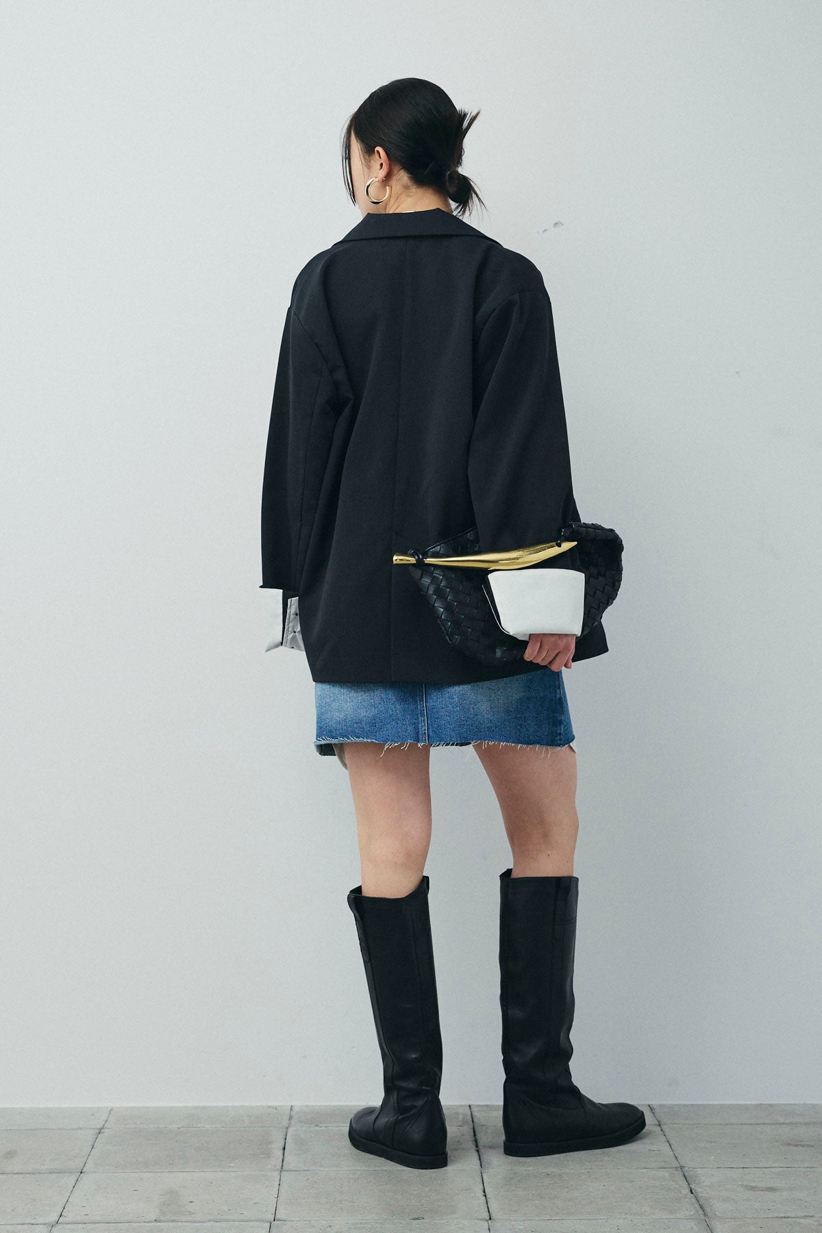 [予約/SET]TRツイル袖折り返しダブルジャケット+デニムミニスカート(2set)