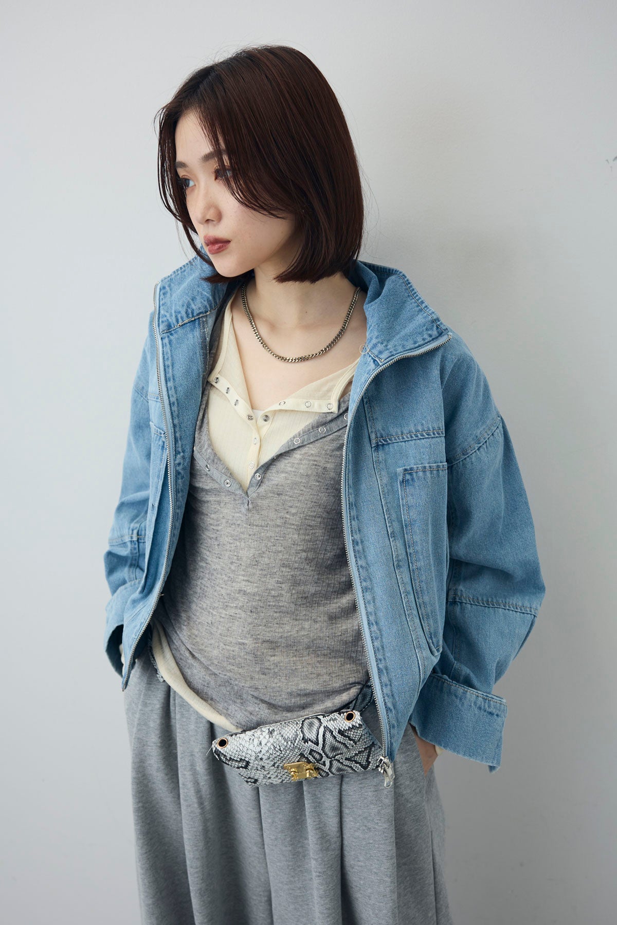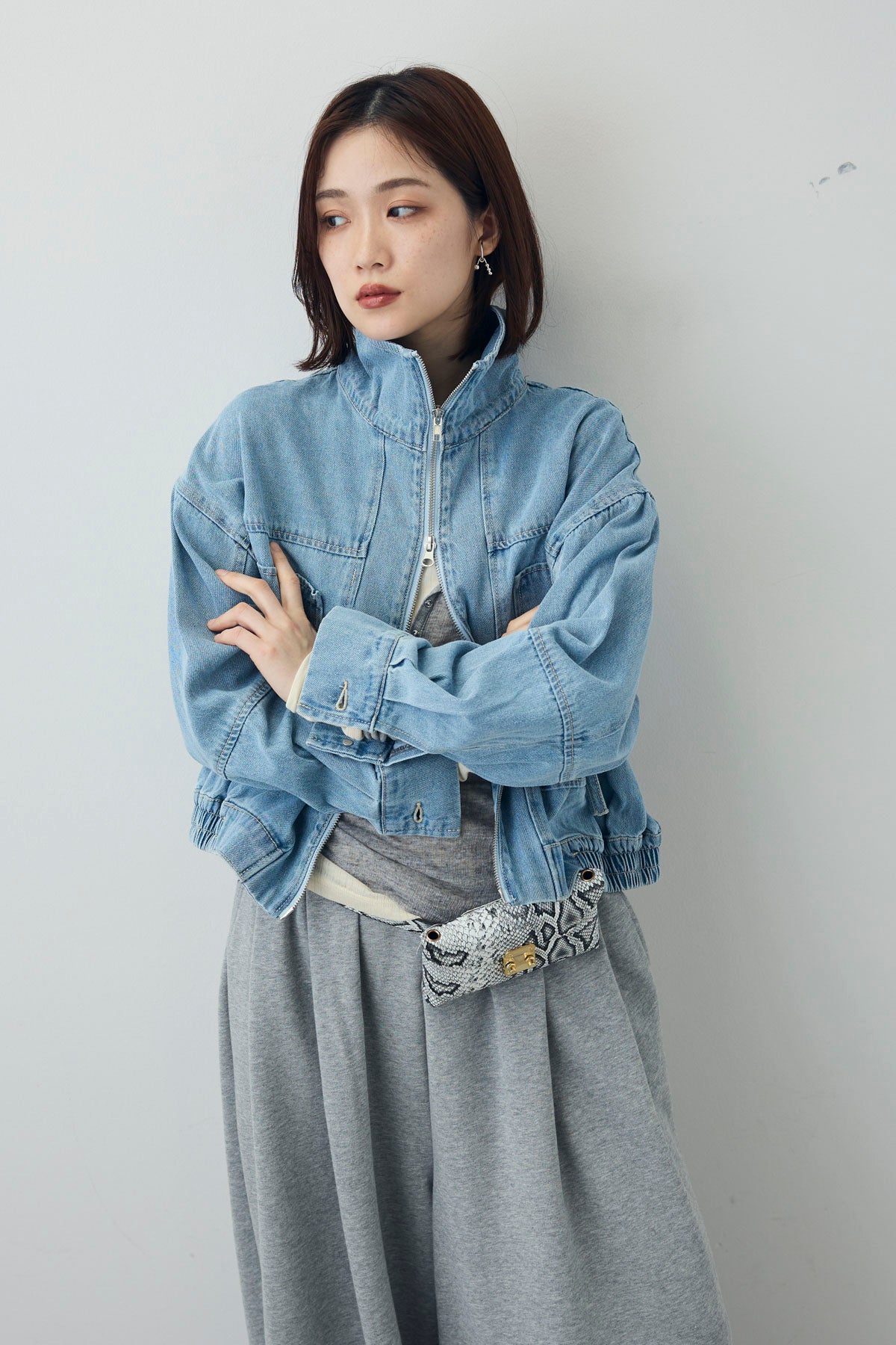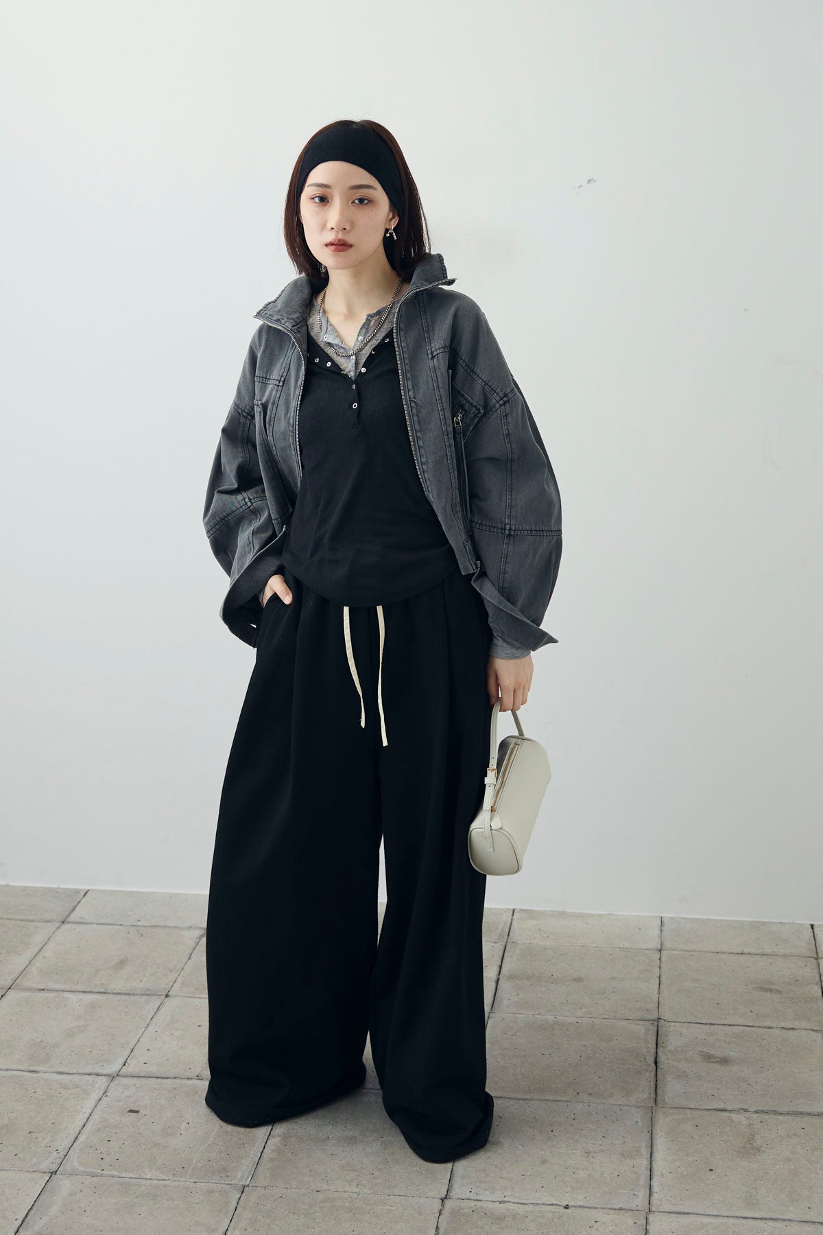 [予約/SET]シアーテレコヘンリーネックPO+ダブルウエストスウェットパンツ+スタンドカラーショート丈デニムブルゾン(3set)