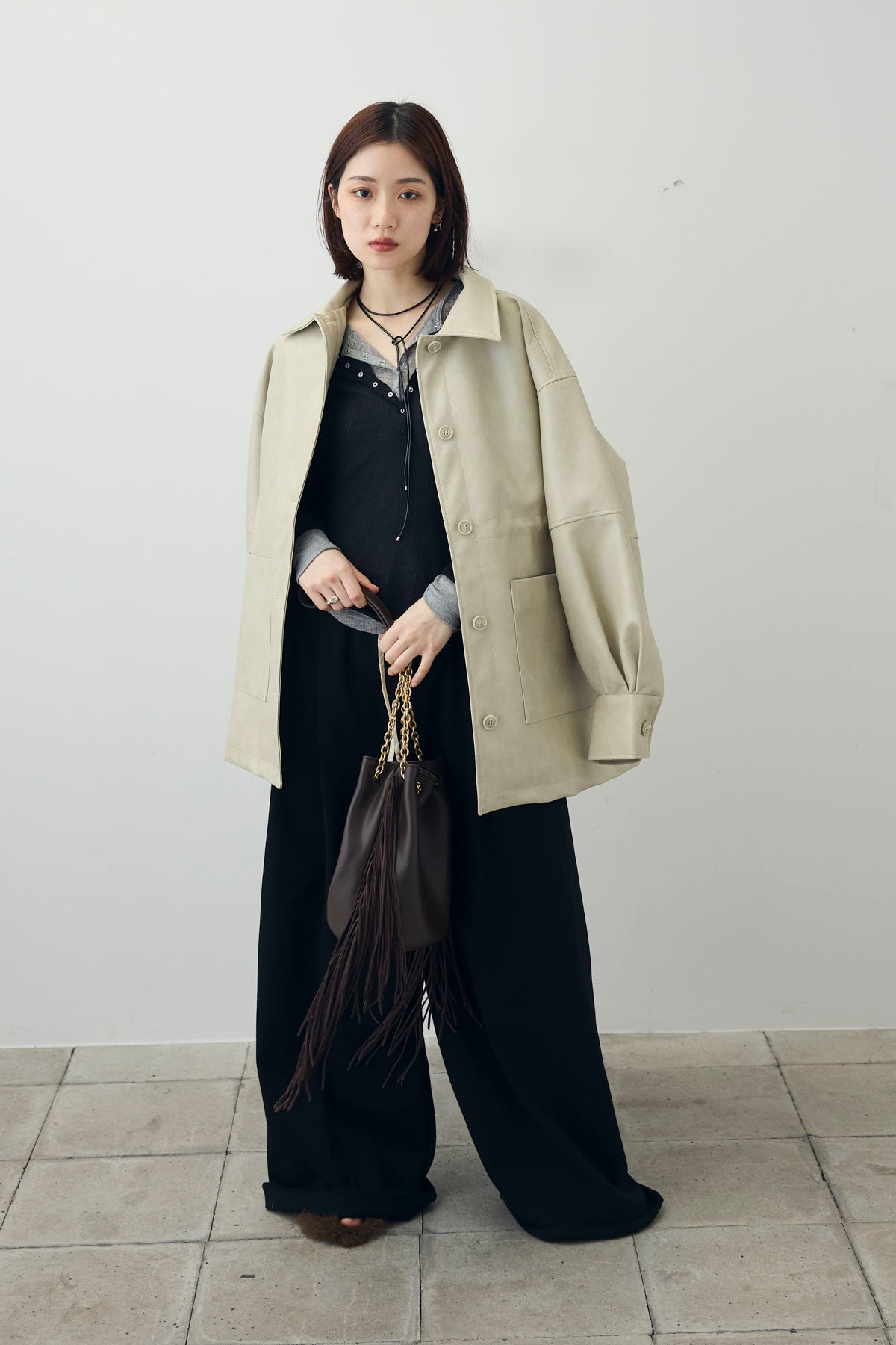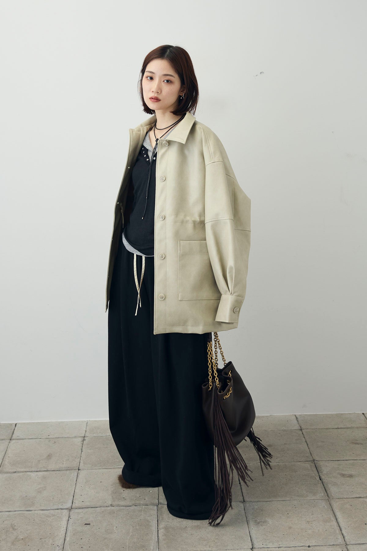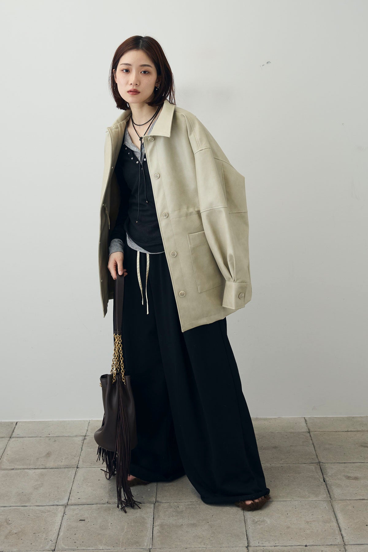 [予約]フェイクレザー オーバーサイズ ダブルジップ ブルゾン