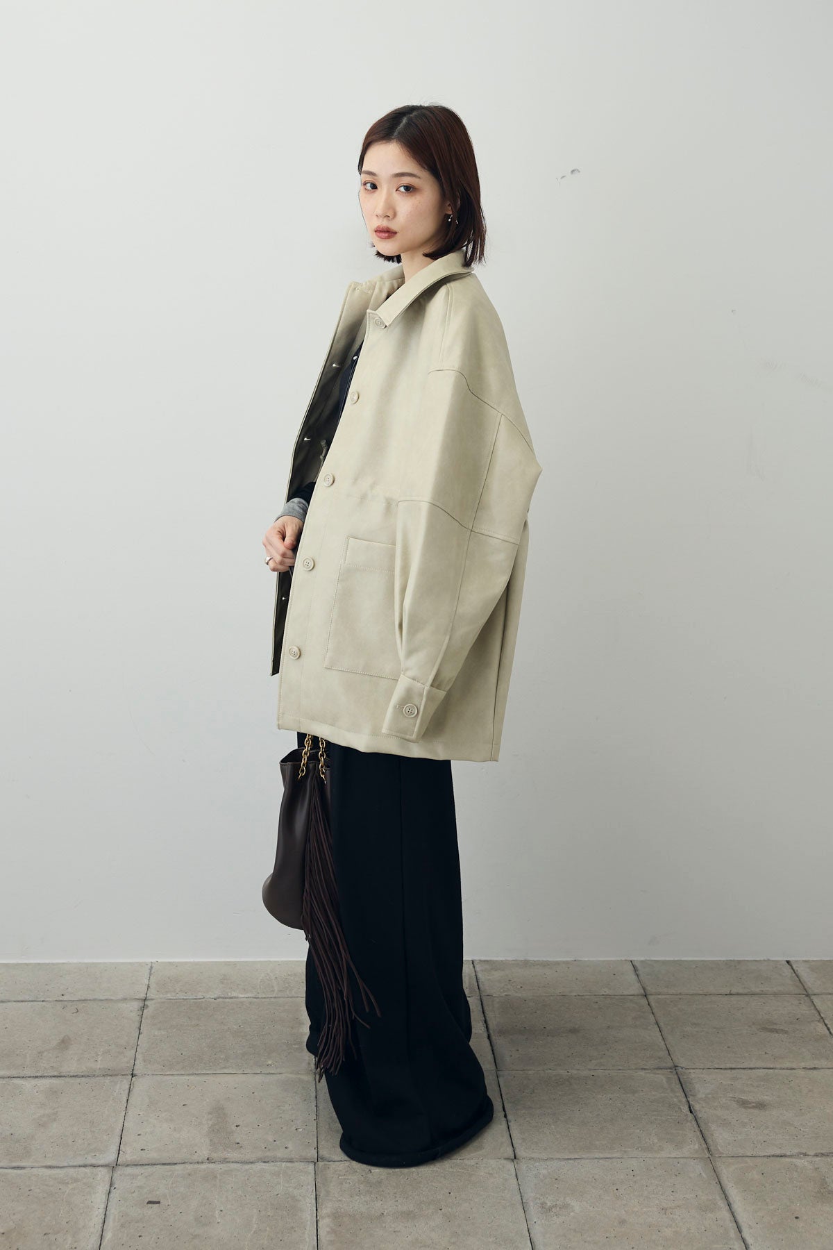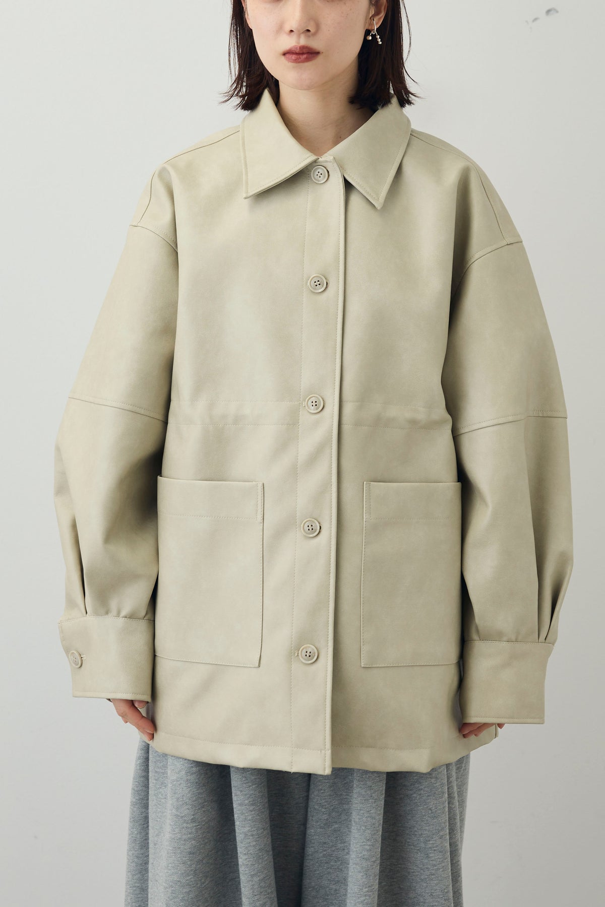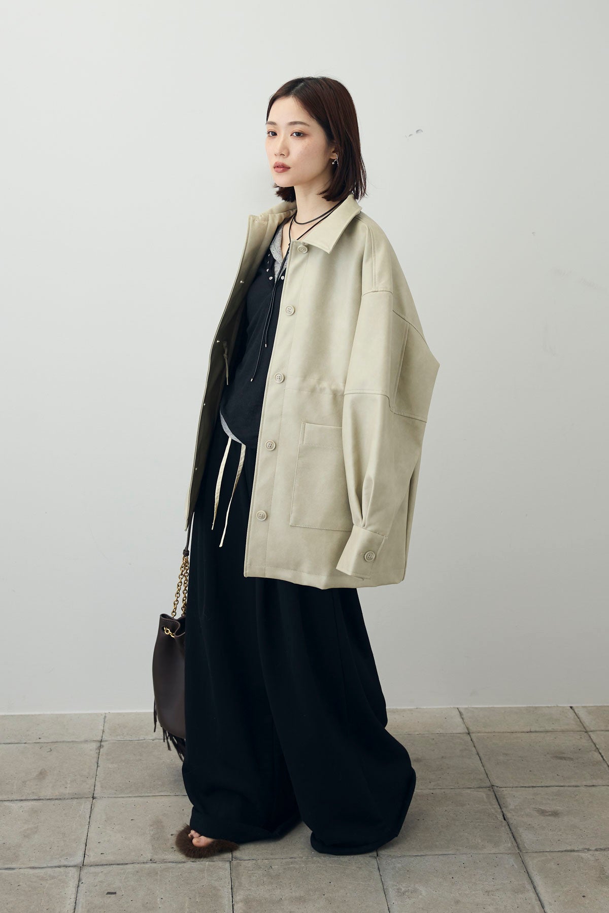 [予約]フェイクレザー オーバーサイズ ダブルジップ ブルゾン