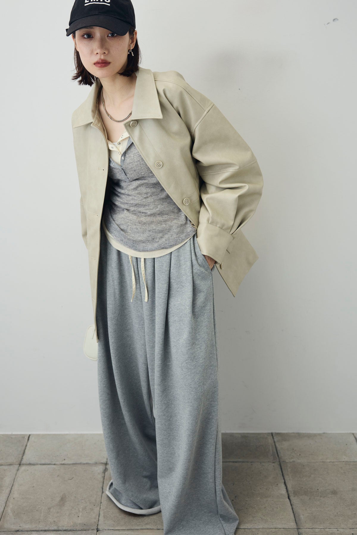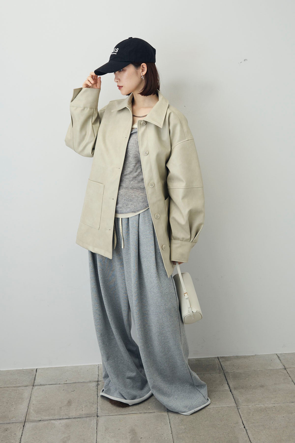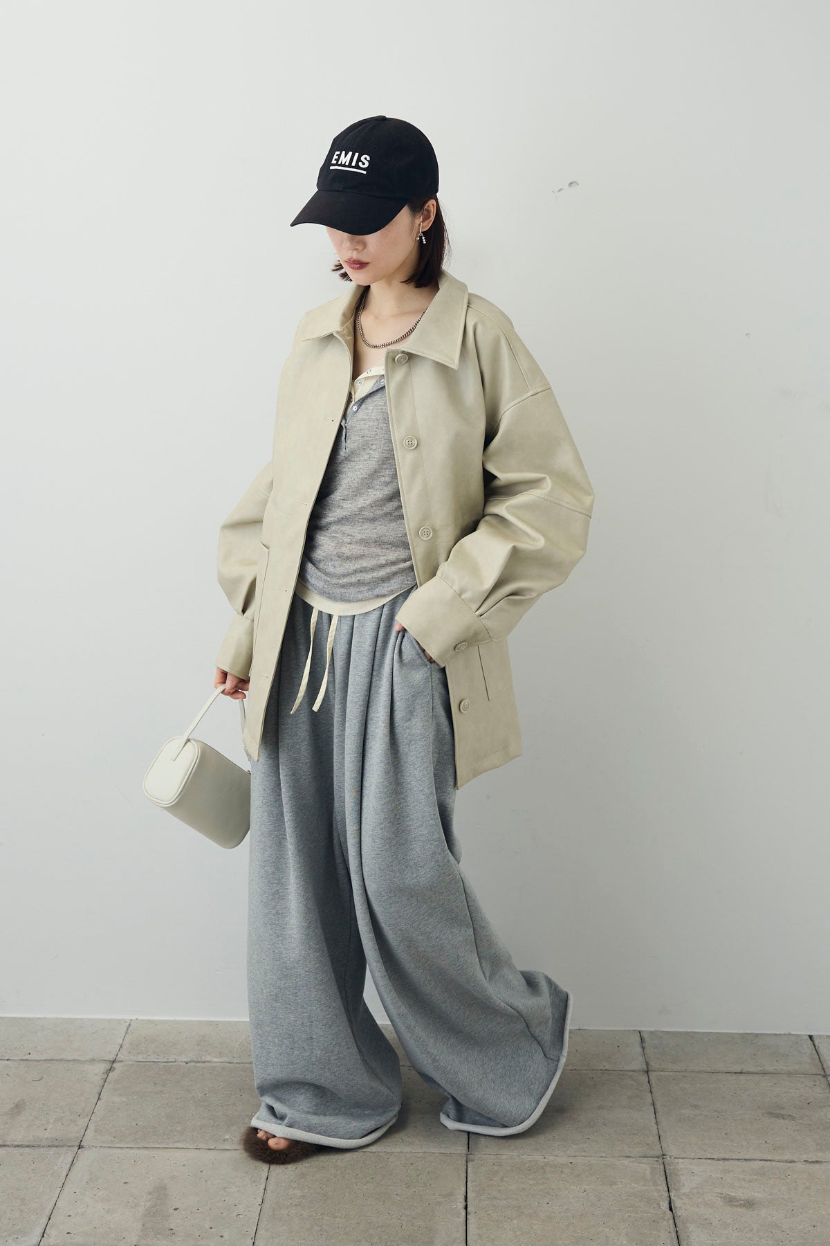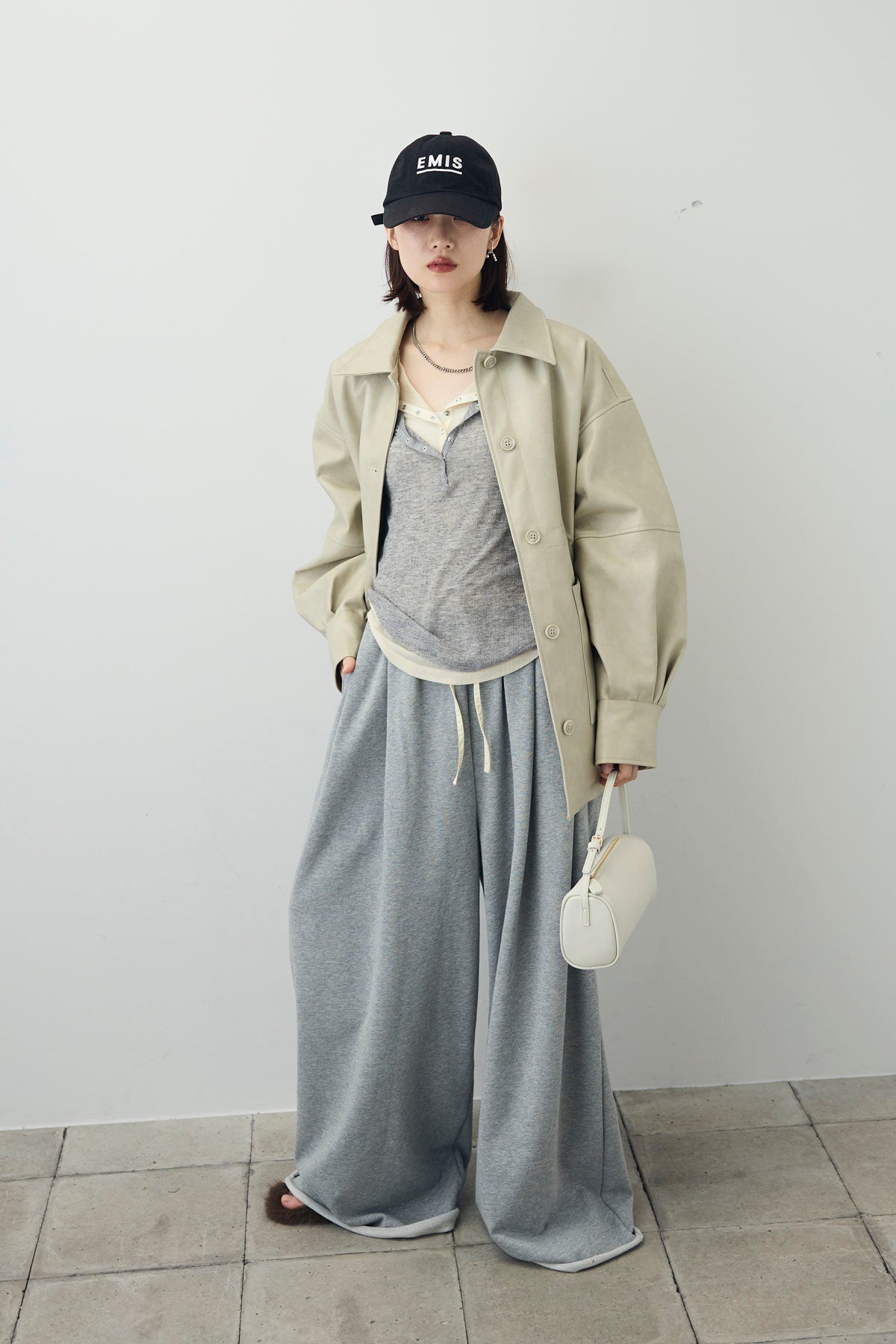 [予約/SET]シアーテレコヘンリーネックPO+ダブルウエストスウェットパンツ+フェイクレザー オーバーサイズ ダブルジップ ブルゾン(3set)