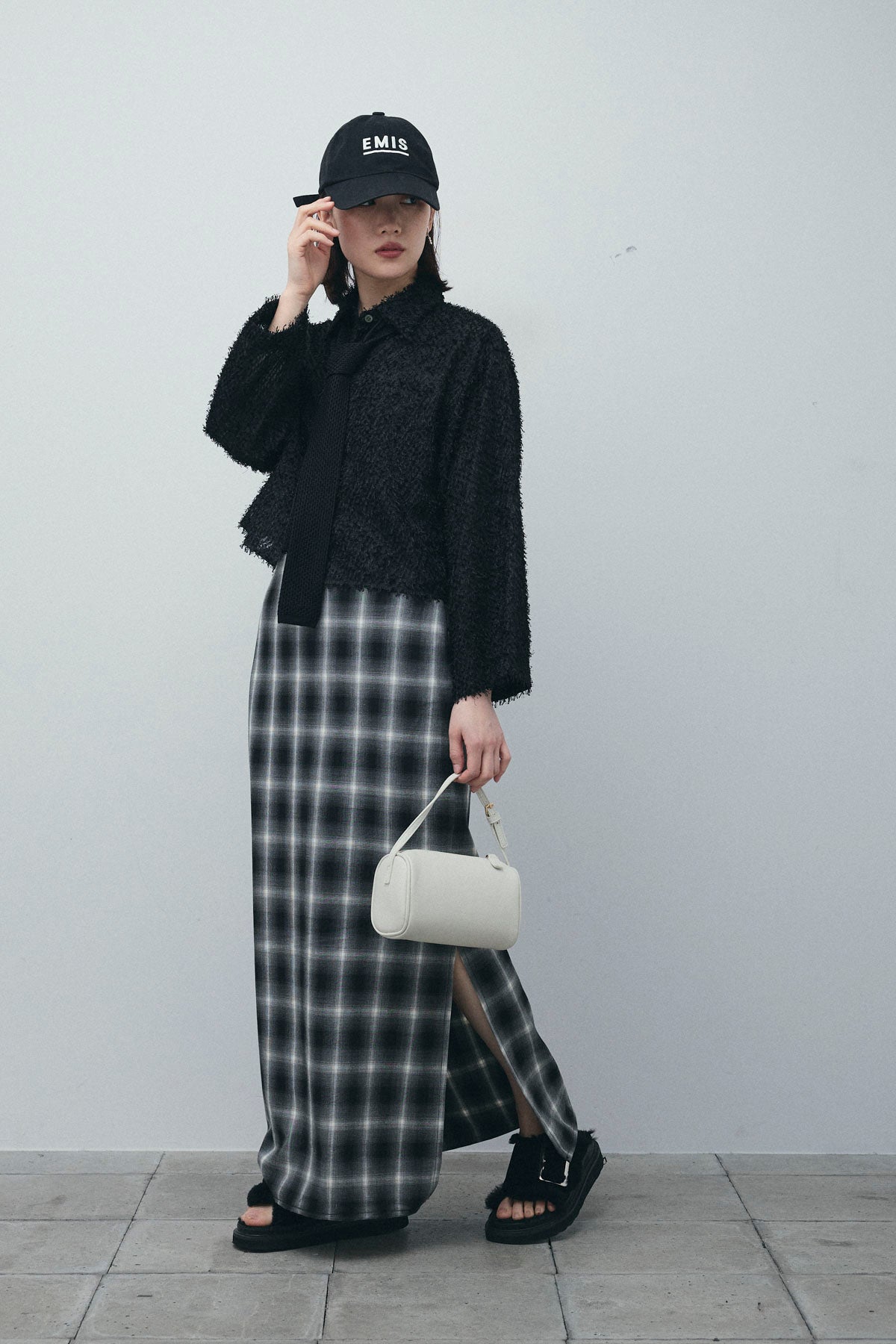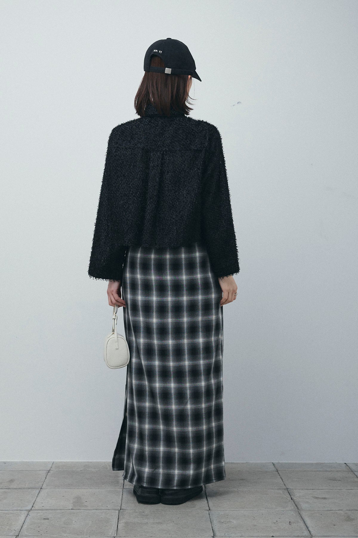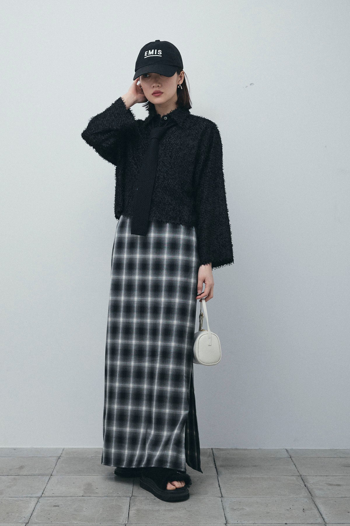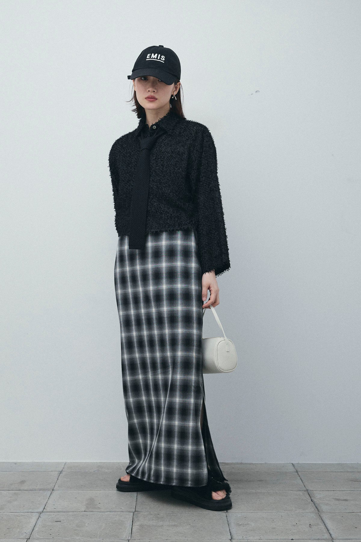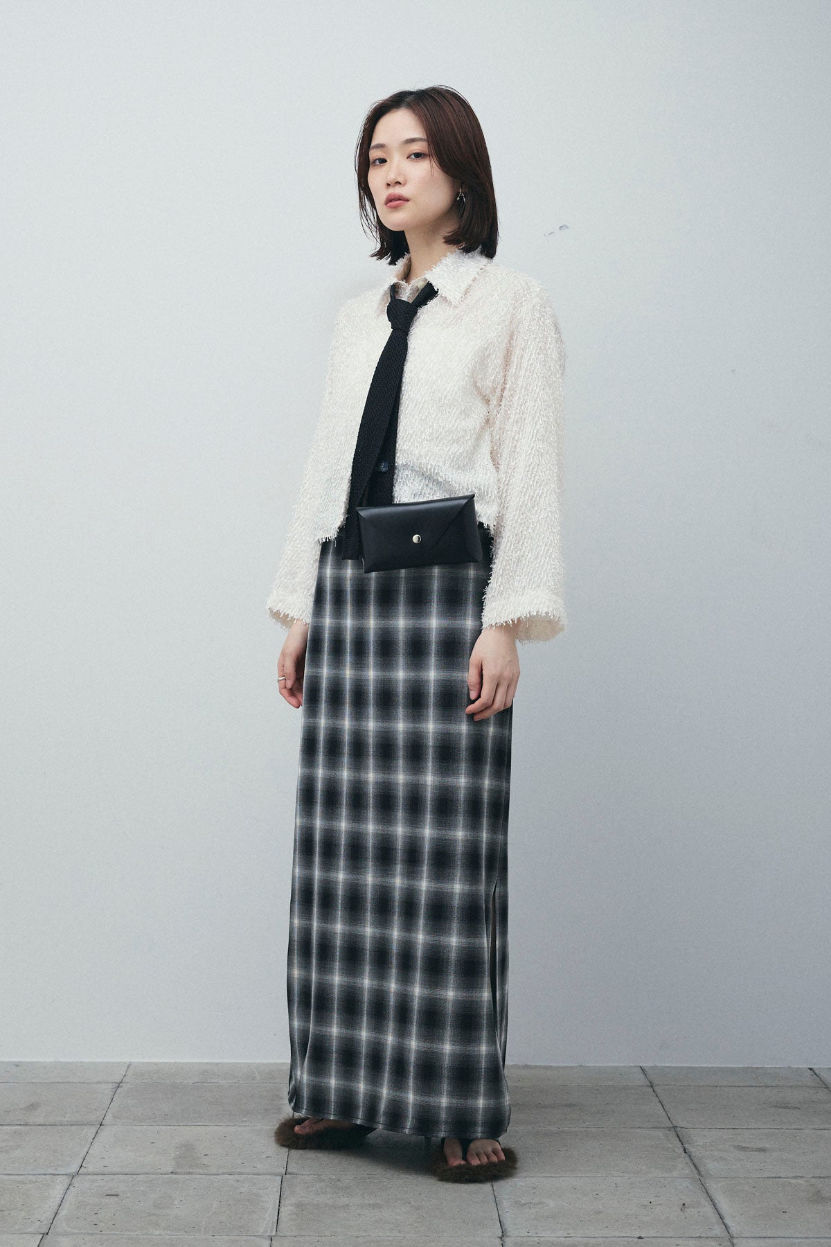 [予約/SET]フェザークロップドシャツ+シルクニットタイ+チェックストレートスカート(3set)
