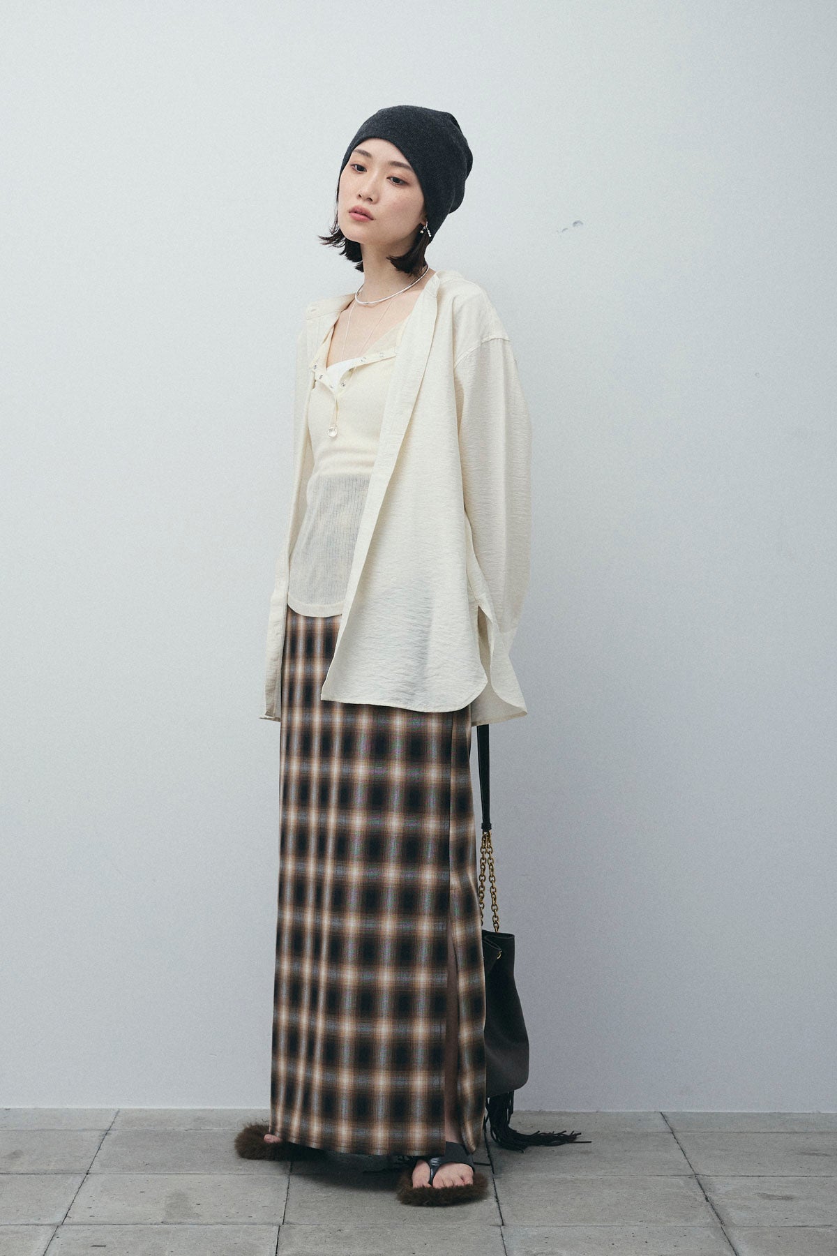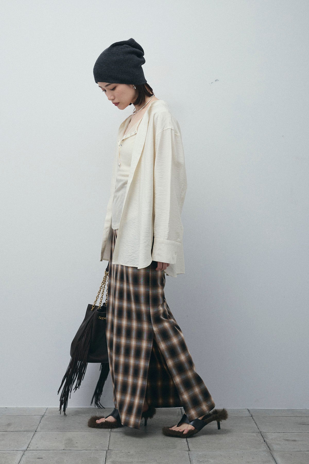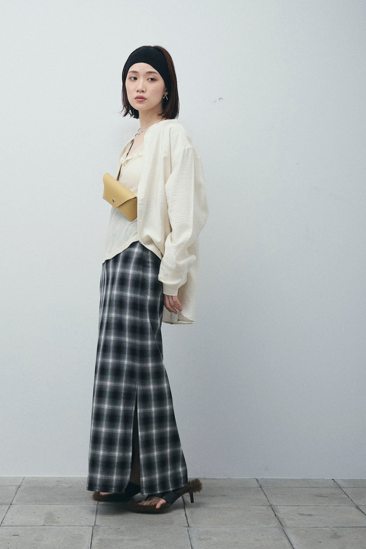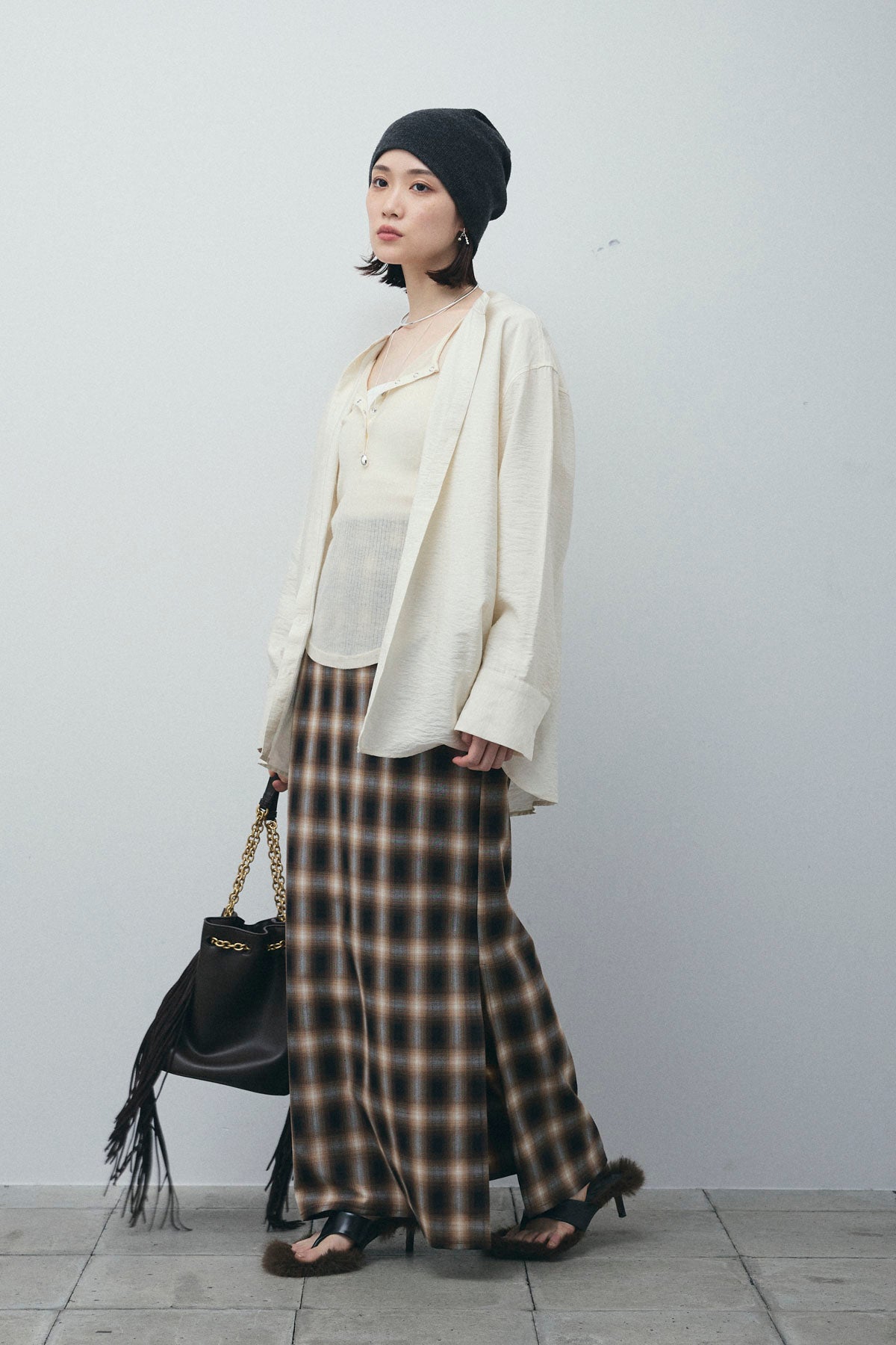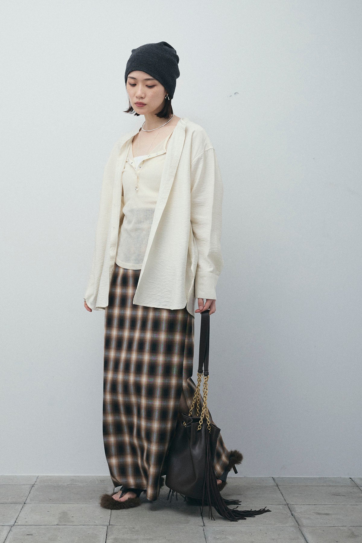 [予約/SET]ビンテージクロスシャツ+チェックストレートスカート(2set)