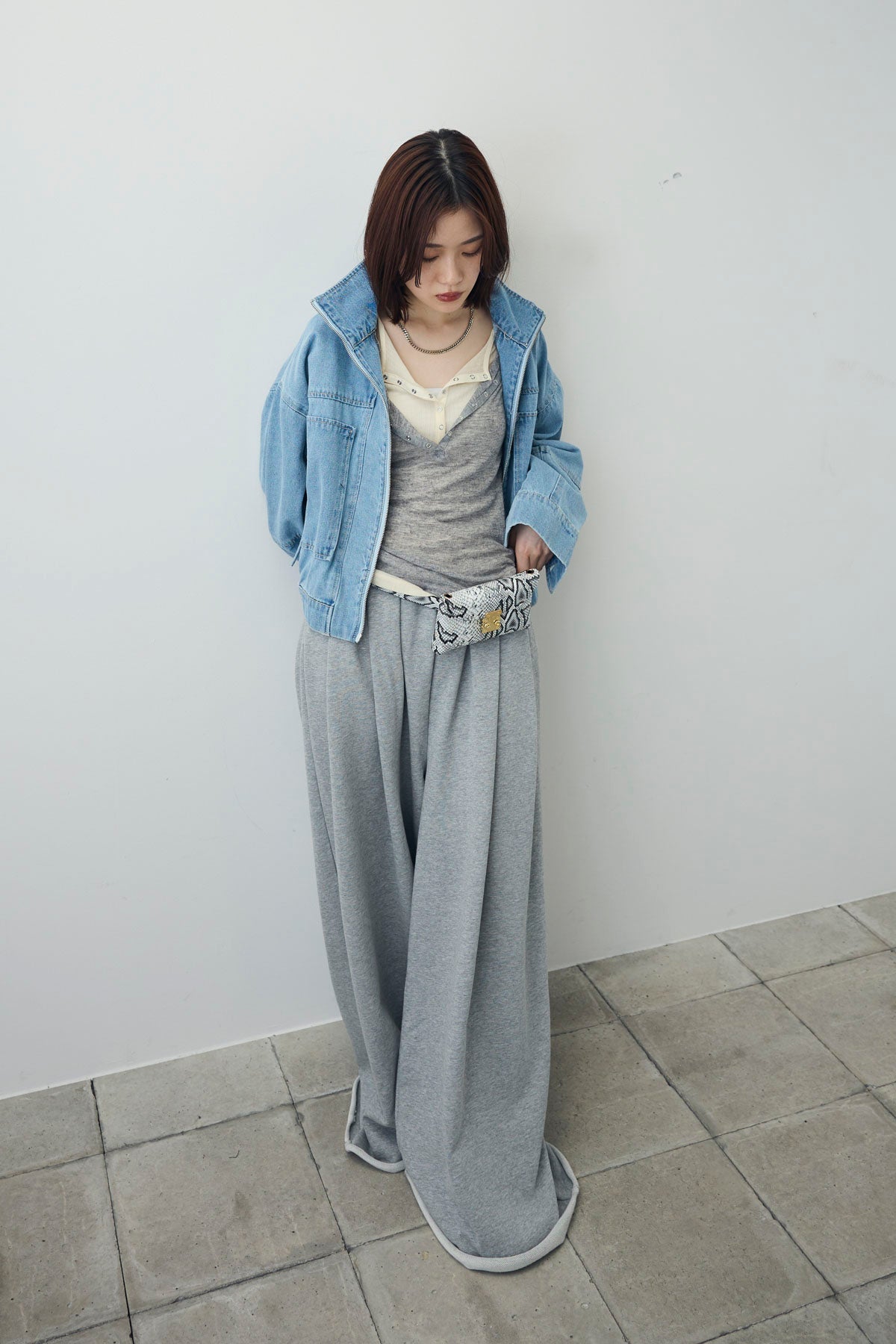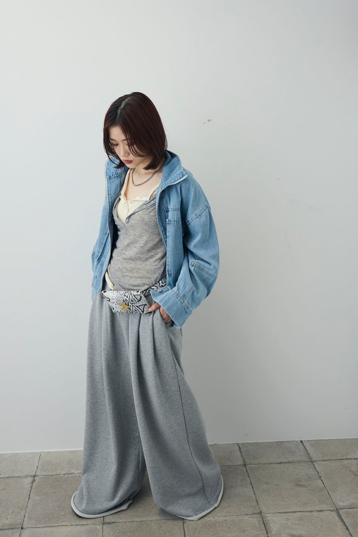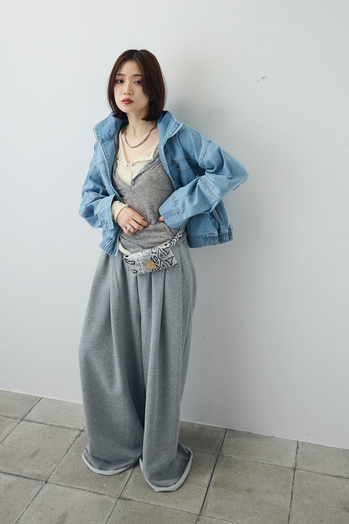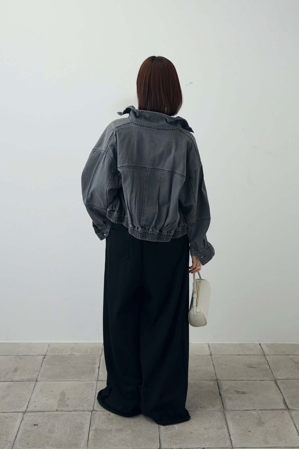 [予約/SET]ダブルウエストスウェットパンツ+スタンドカラーショート丈デニムブルゾン(2set)