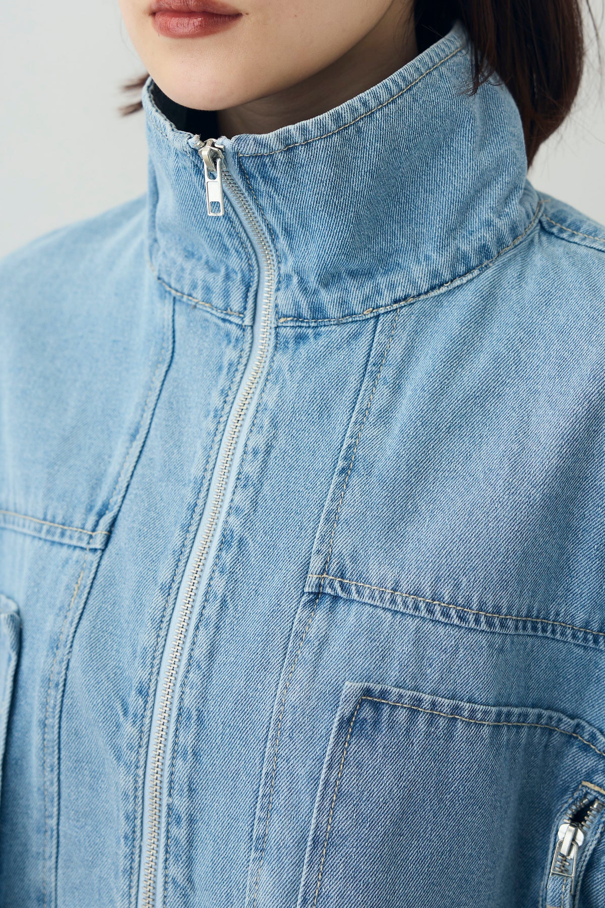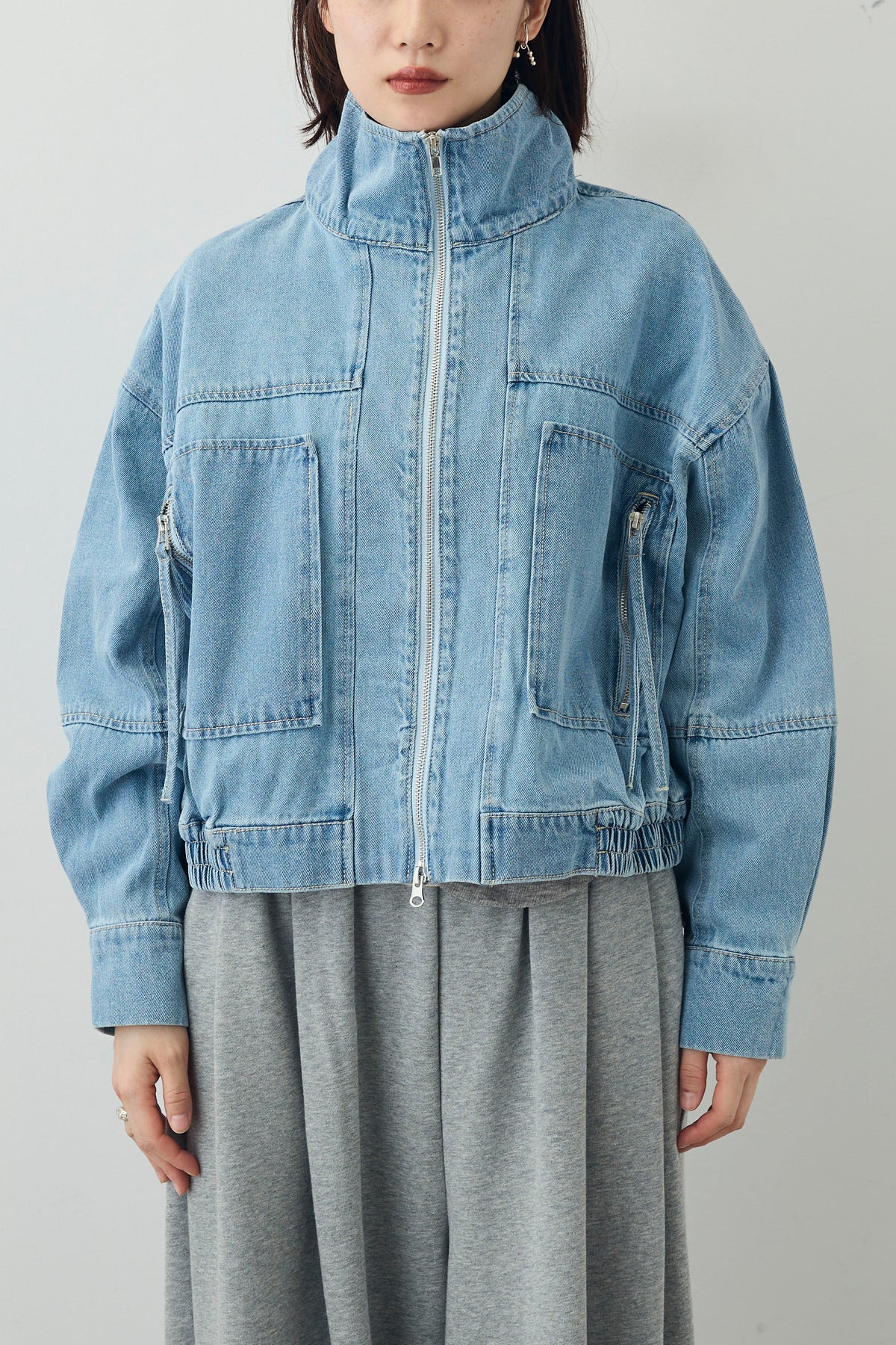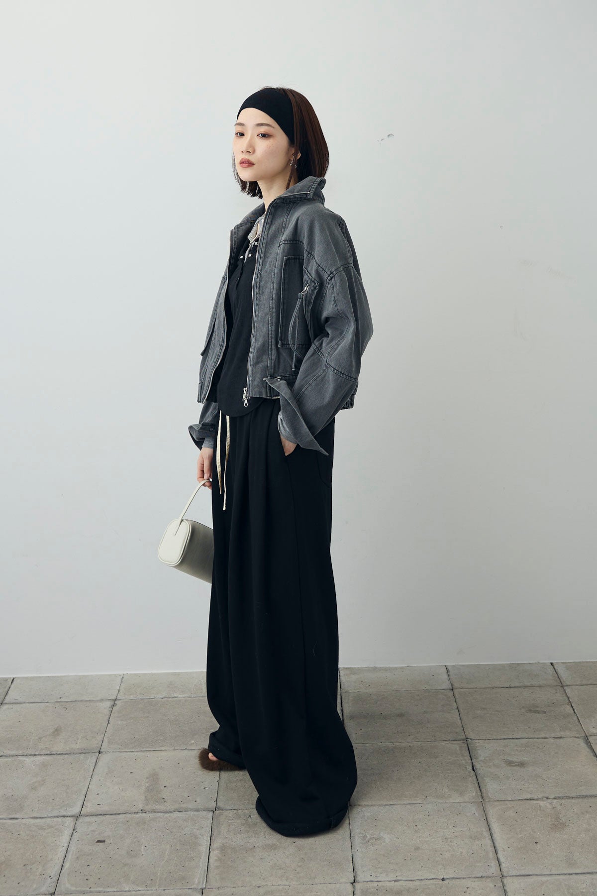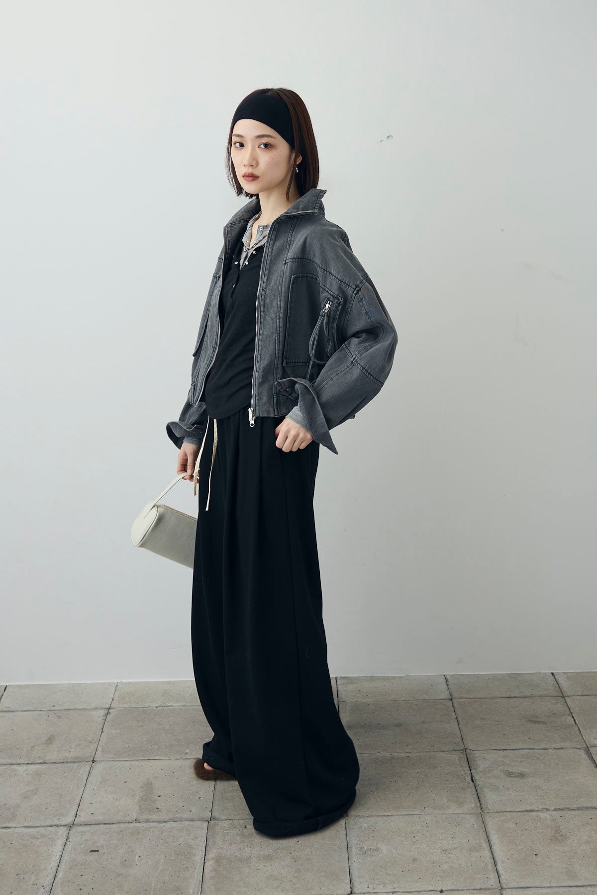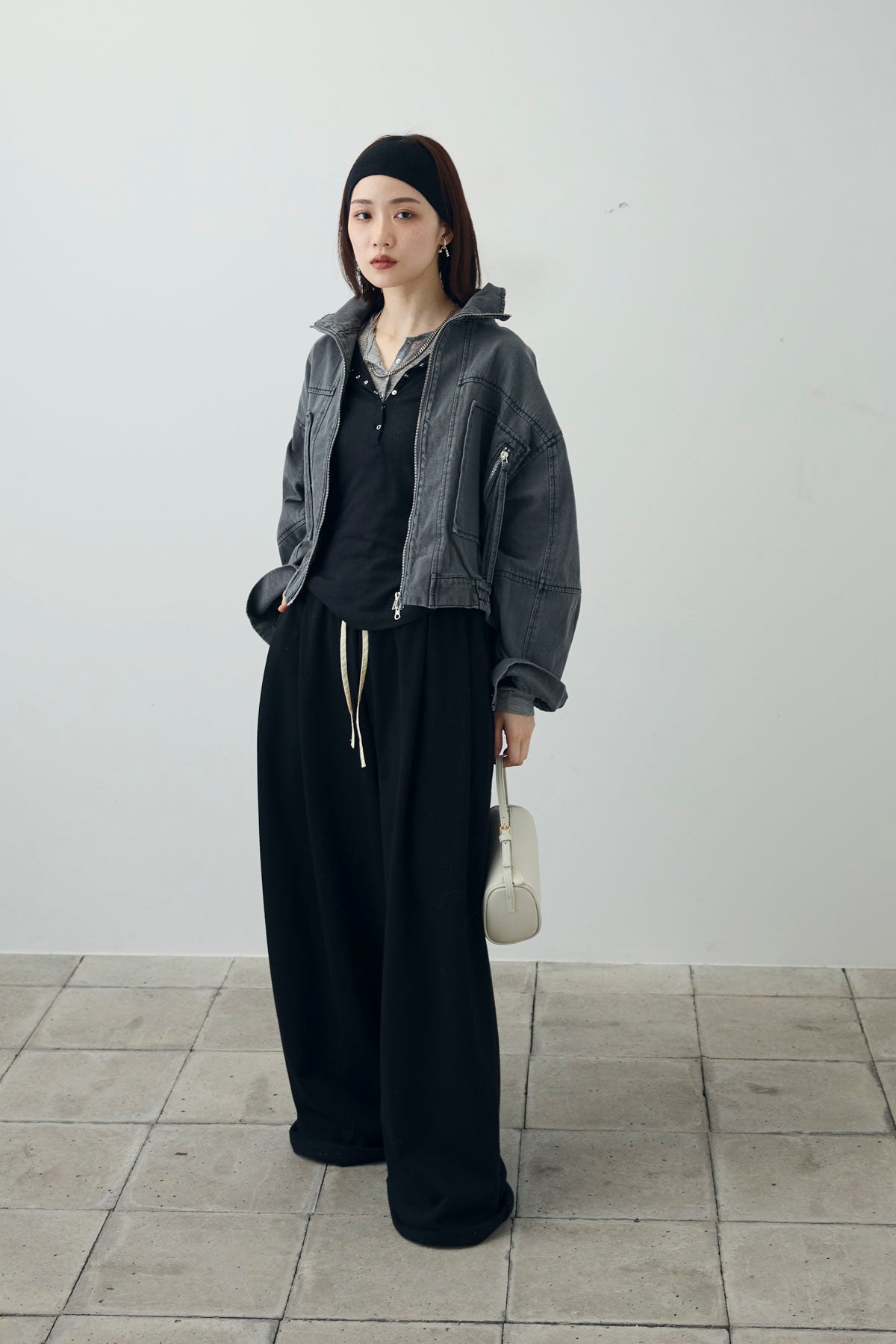 [予約/SET]ダブルウエストスウェットパンツ+スタンドカラーショート丈デニムブルゾン(2set)