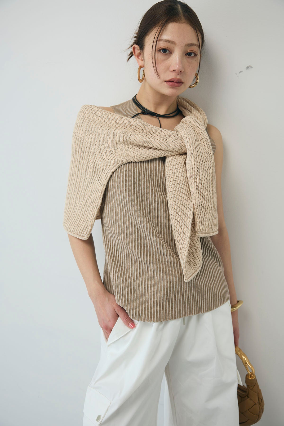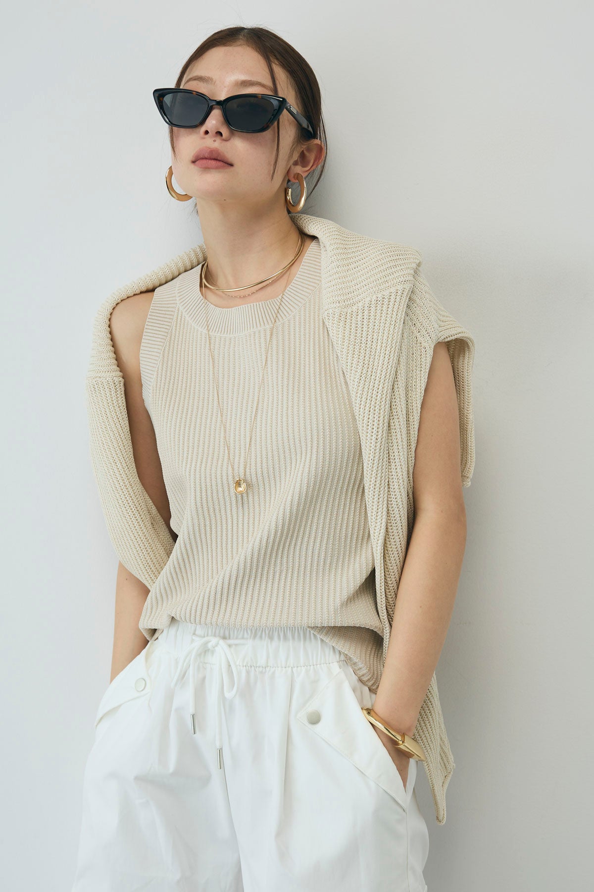 [予約/SET]編柄ノースリーブPO+リネンタッチルーズニットプルオーバー(2set)