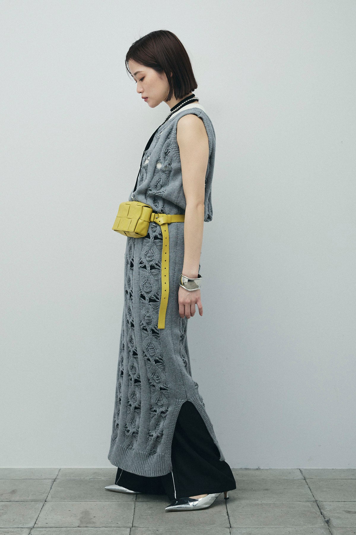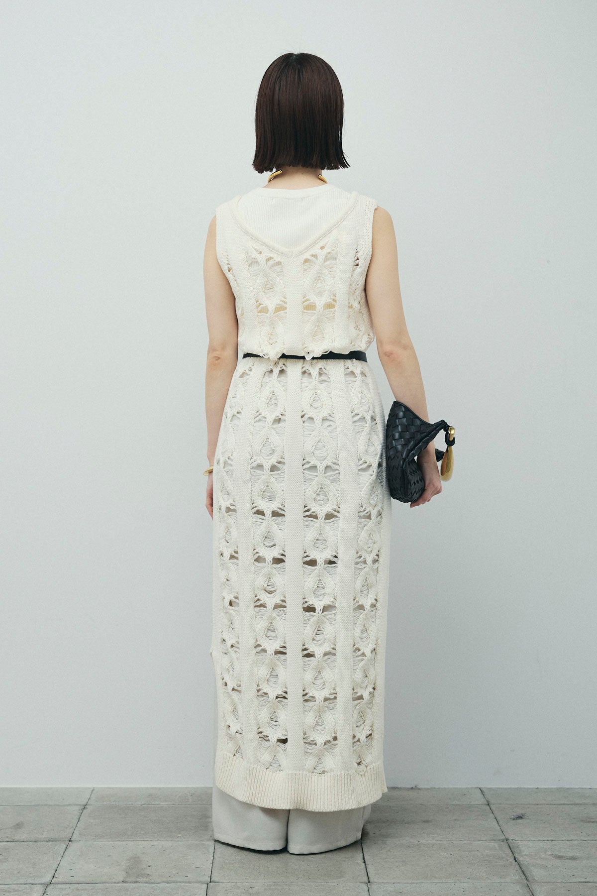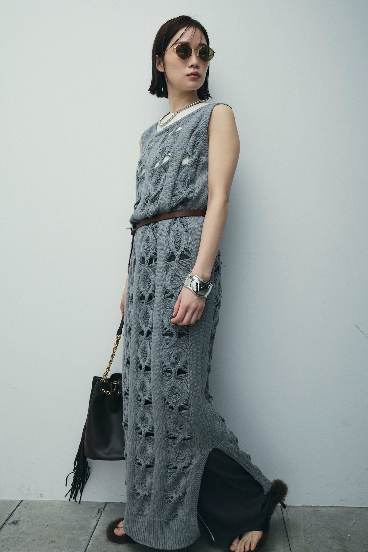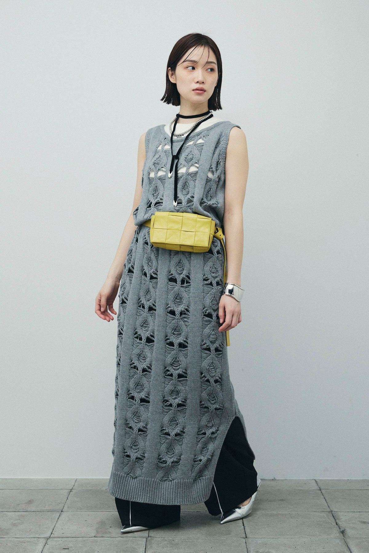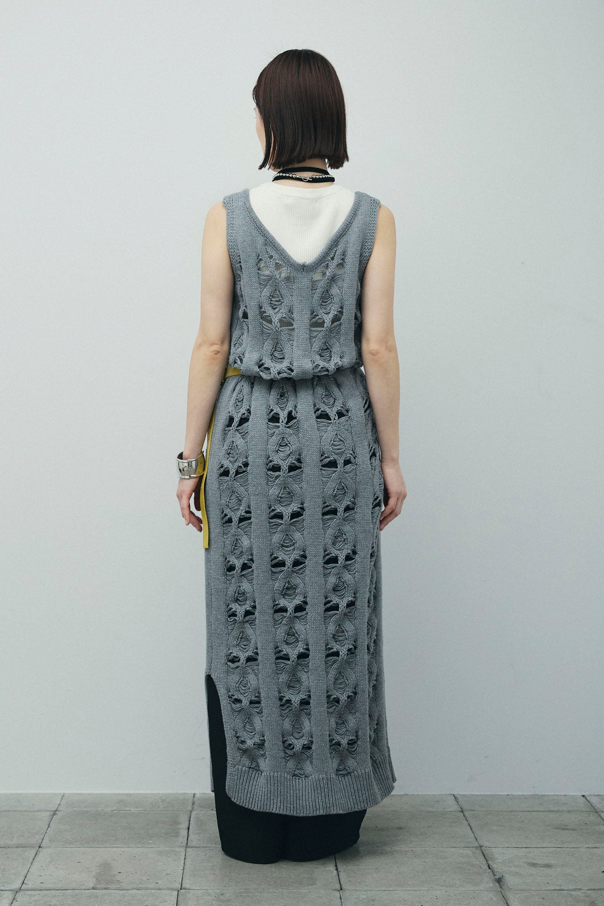 [予約/SET]ミックス編みニットワンピース+フロントロゴ入りリブタンクトップ+ヘザーエステルカーブパンツ(3set)