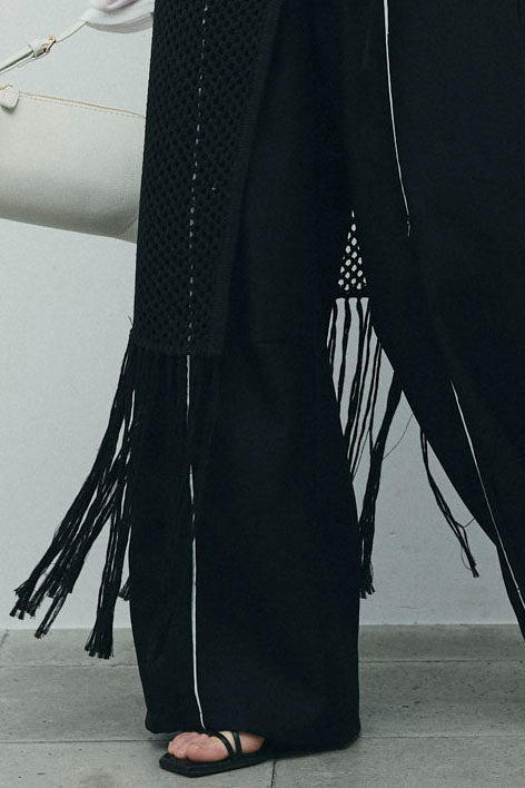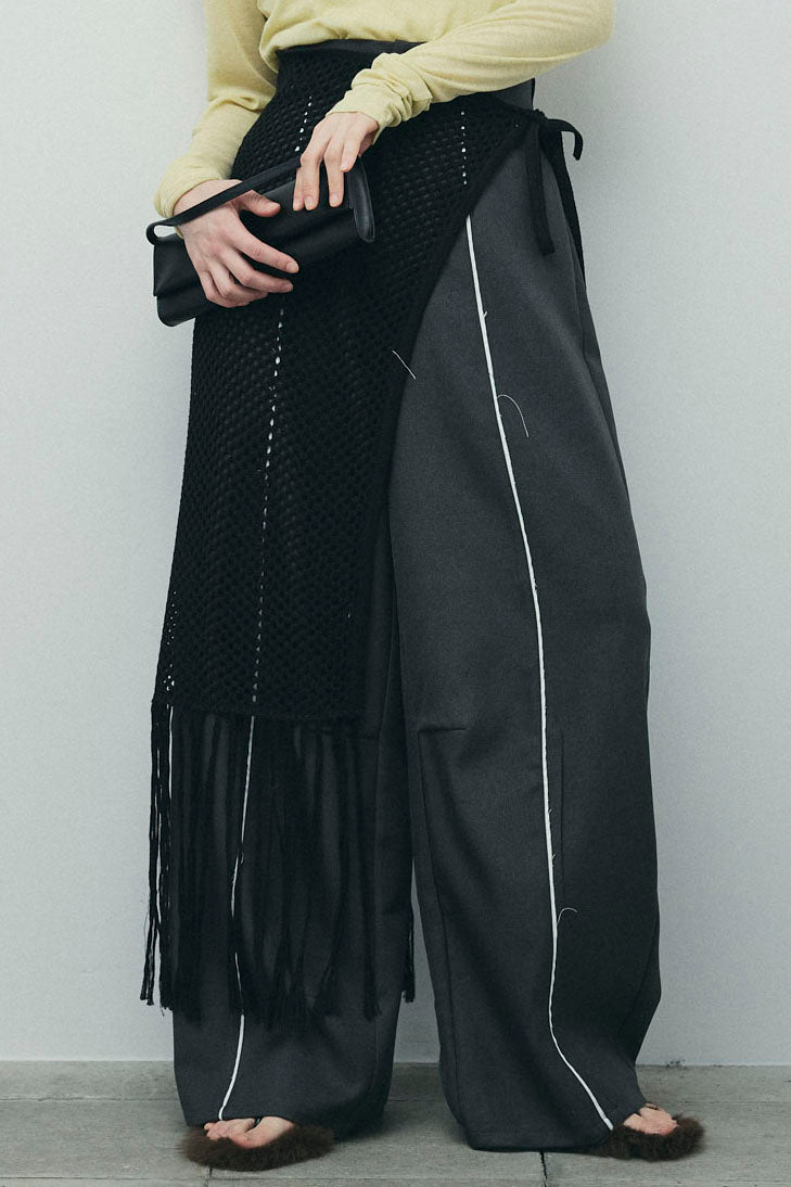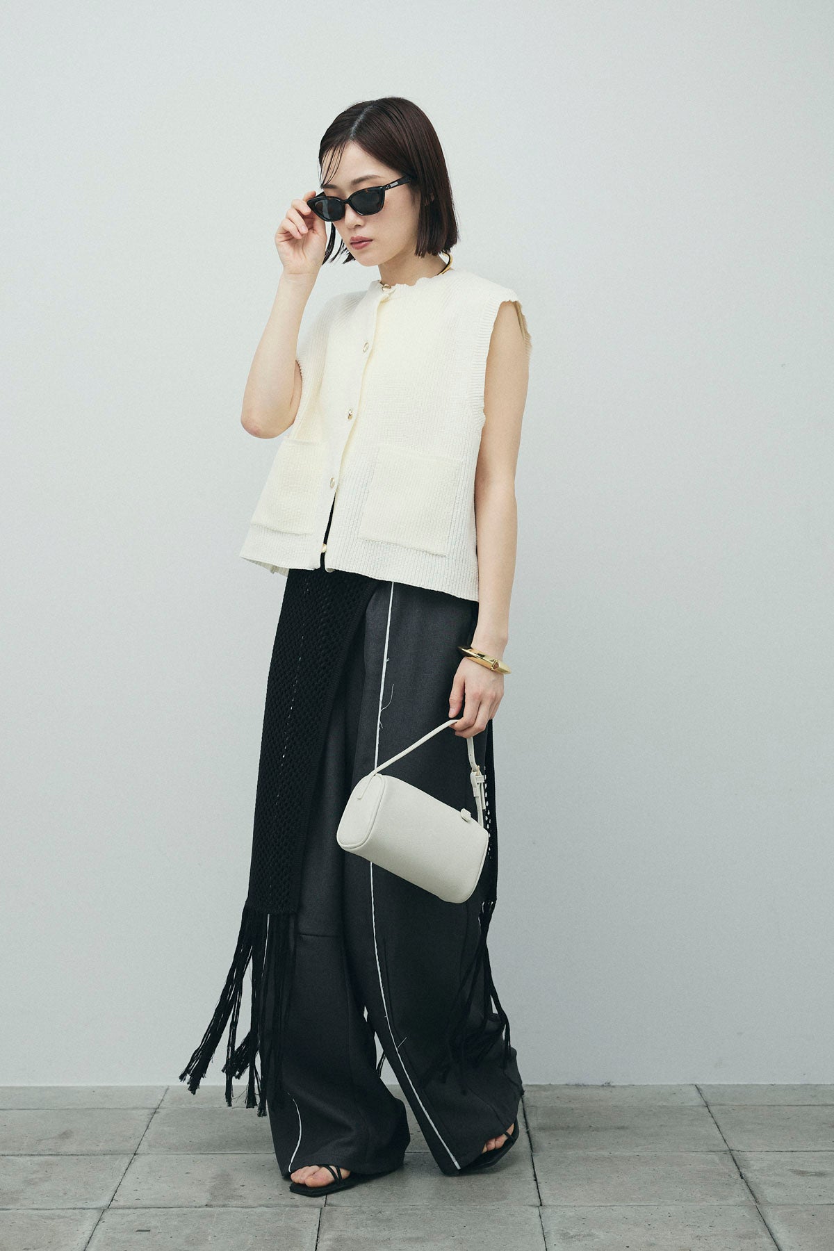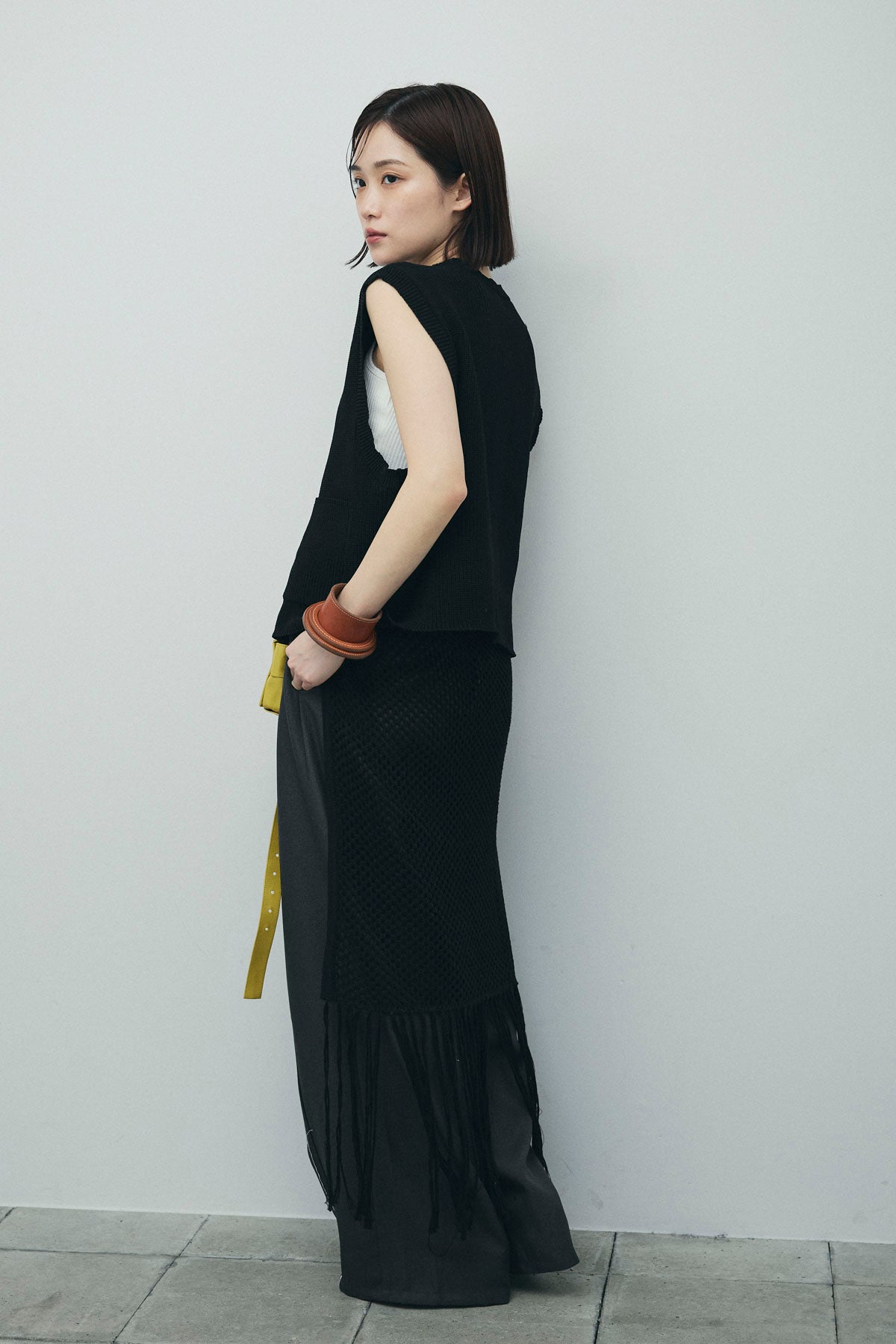 [予約/SET]畦編み金釦ルーズベスト+ヘザーエステルカーブパンツ+メッシュラップスカート(3set)