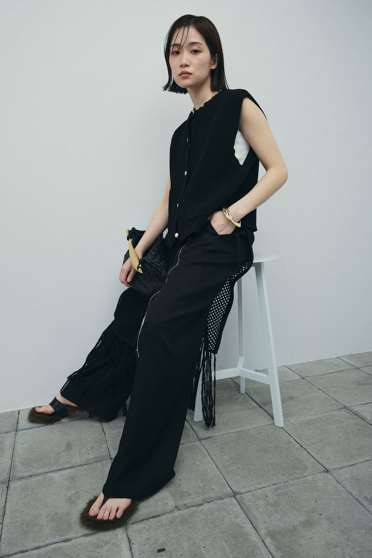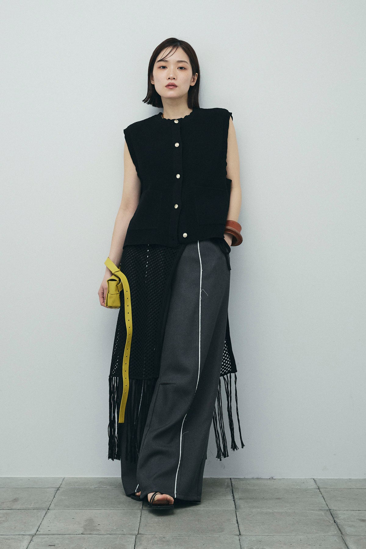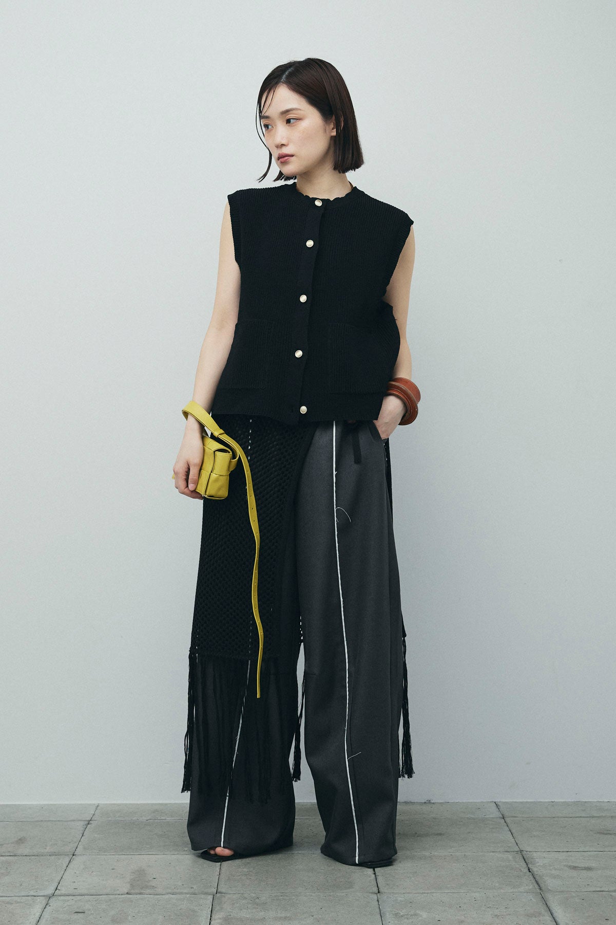 [予約/SET]畦編み金釦ルーズベスト+ヘザーエステルカーブパンツ(2set)
