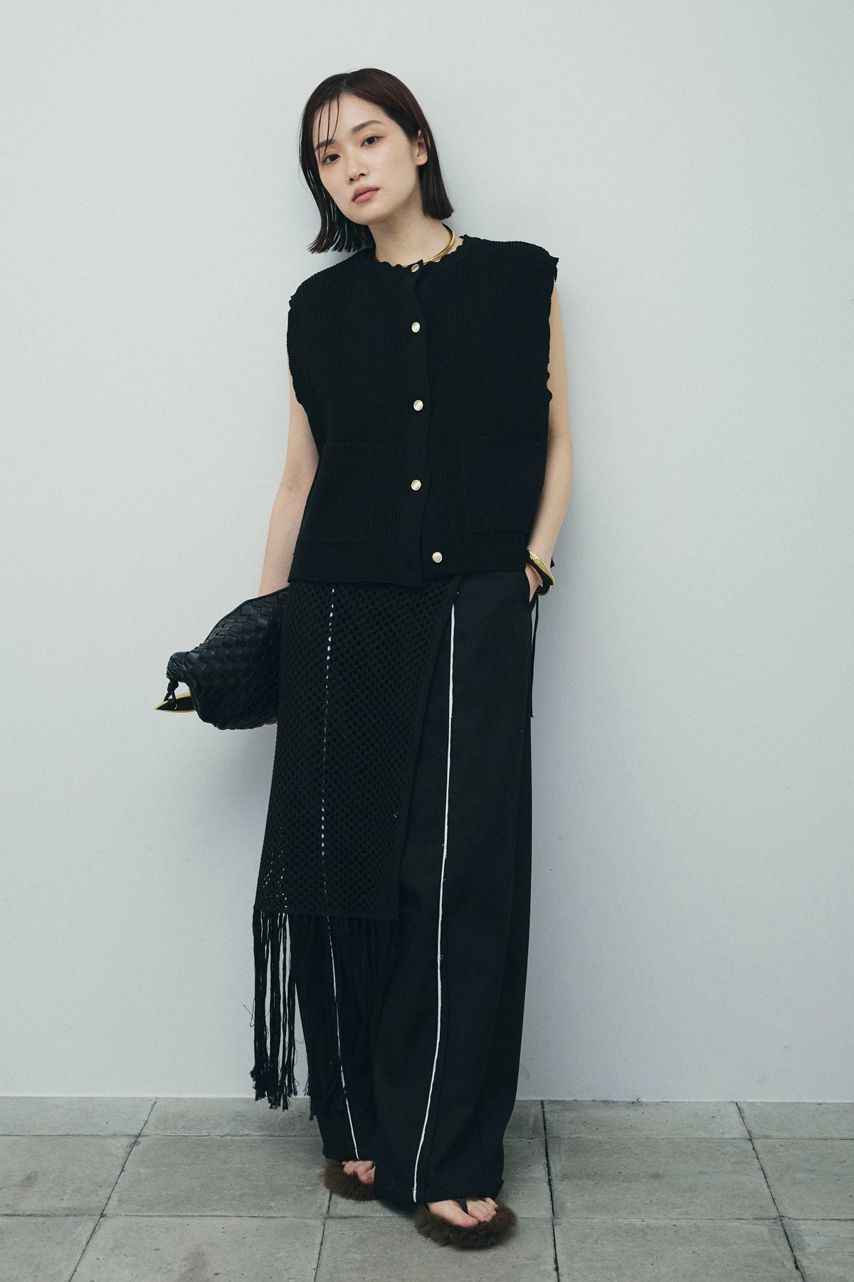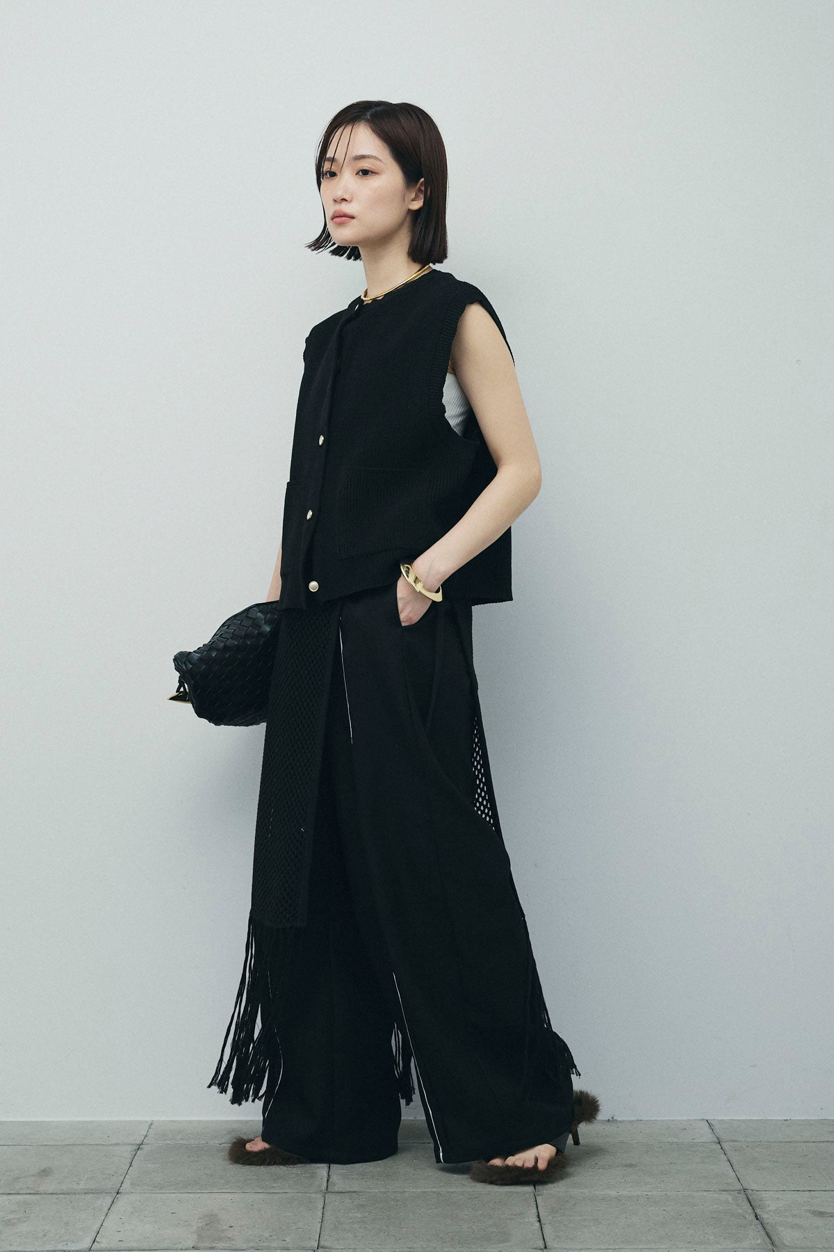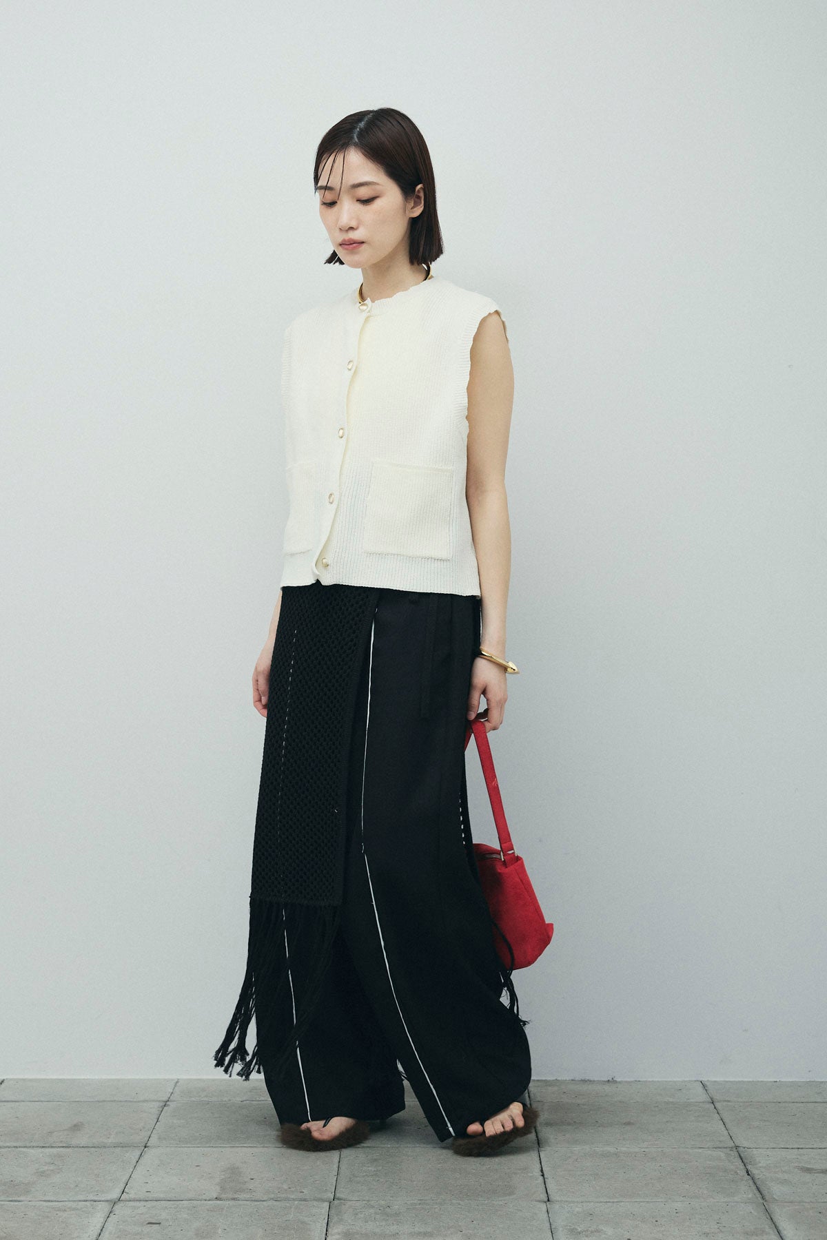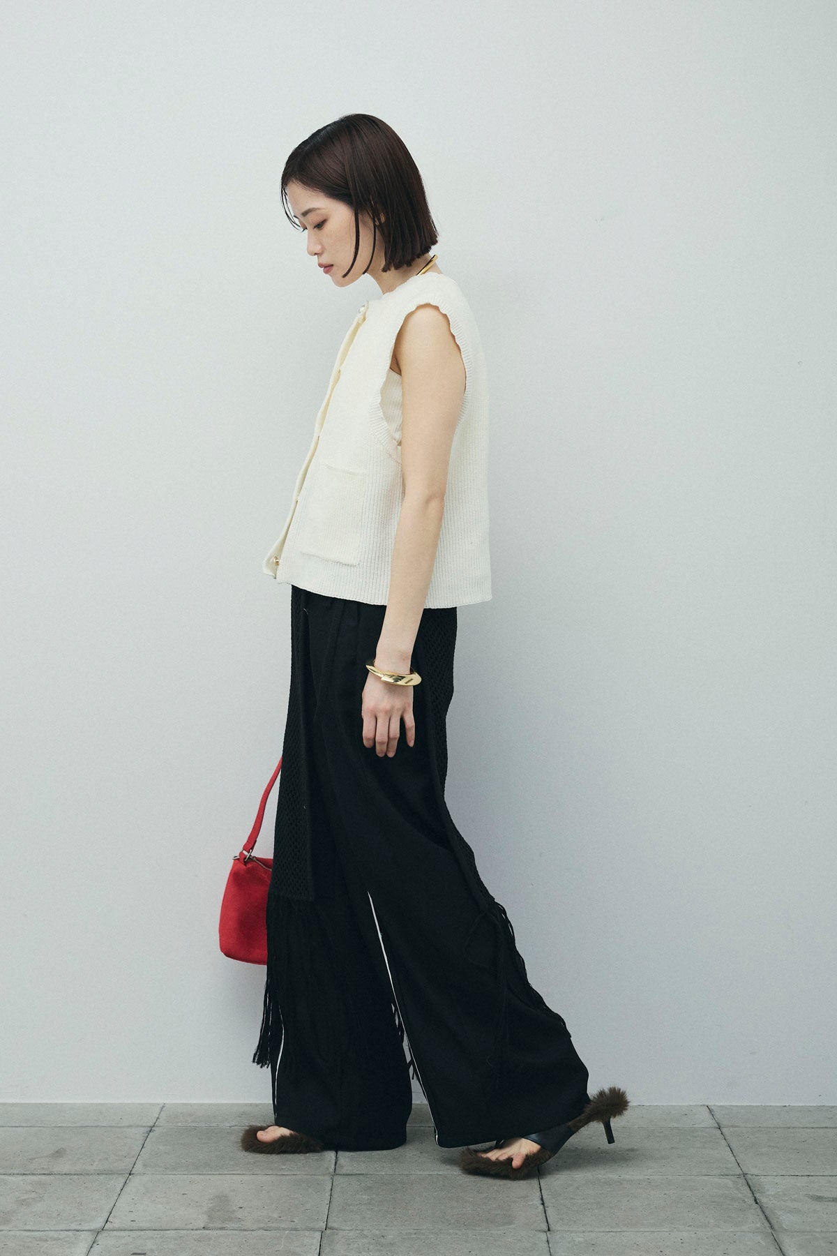 [予約/SET]畦編み金釦ルーズベスト+ヘザーエステルカーブパンツ(2set)