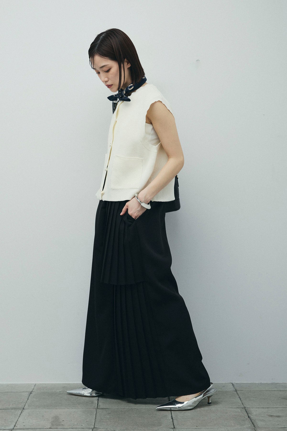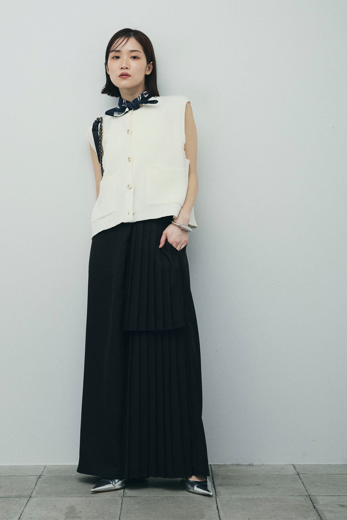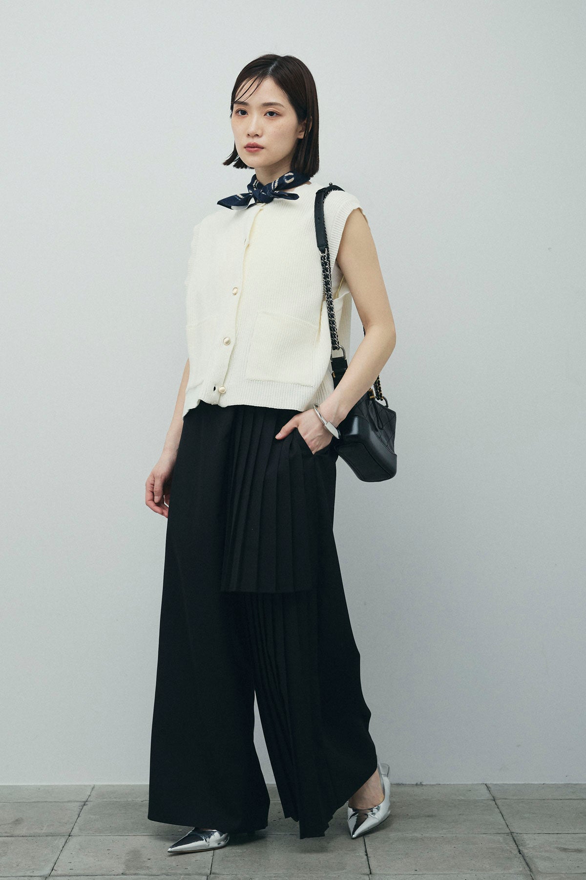 [予約/SET]畦編み金釦ルーズベスト+アシメプリーツパンツ(2set)