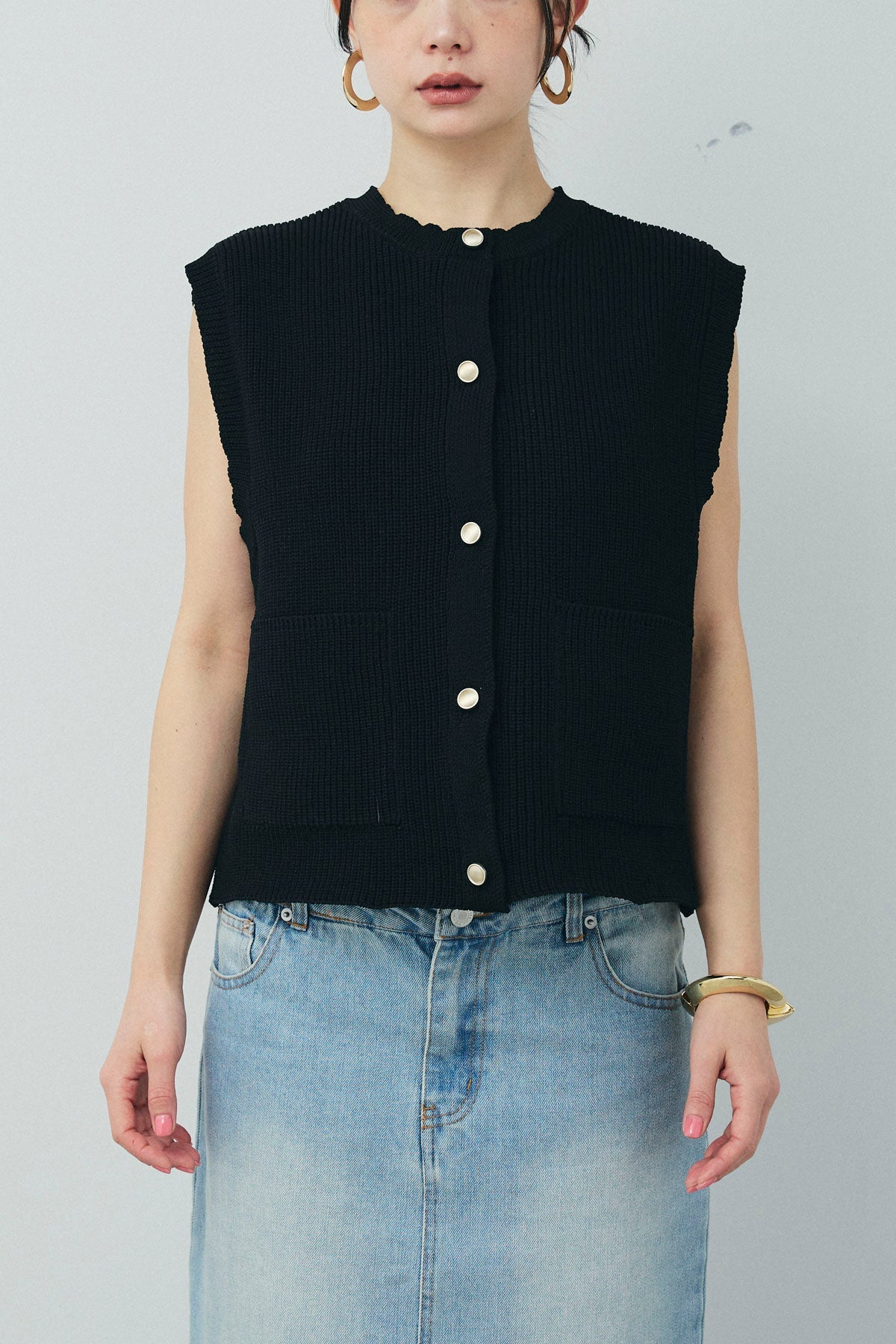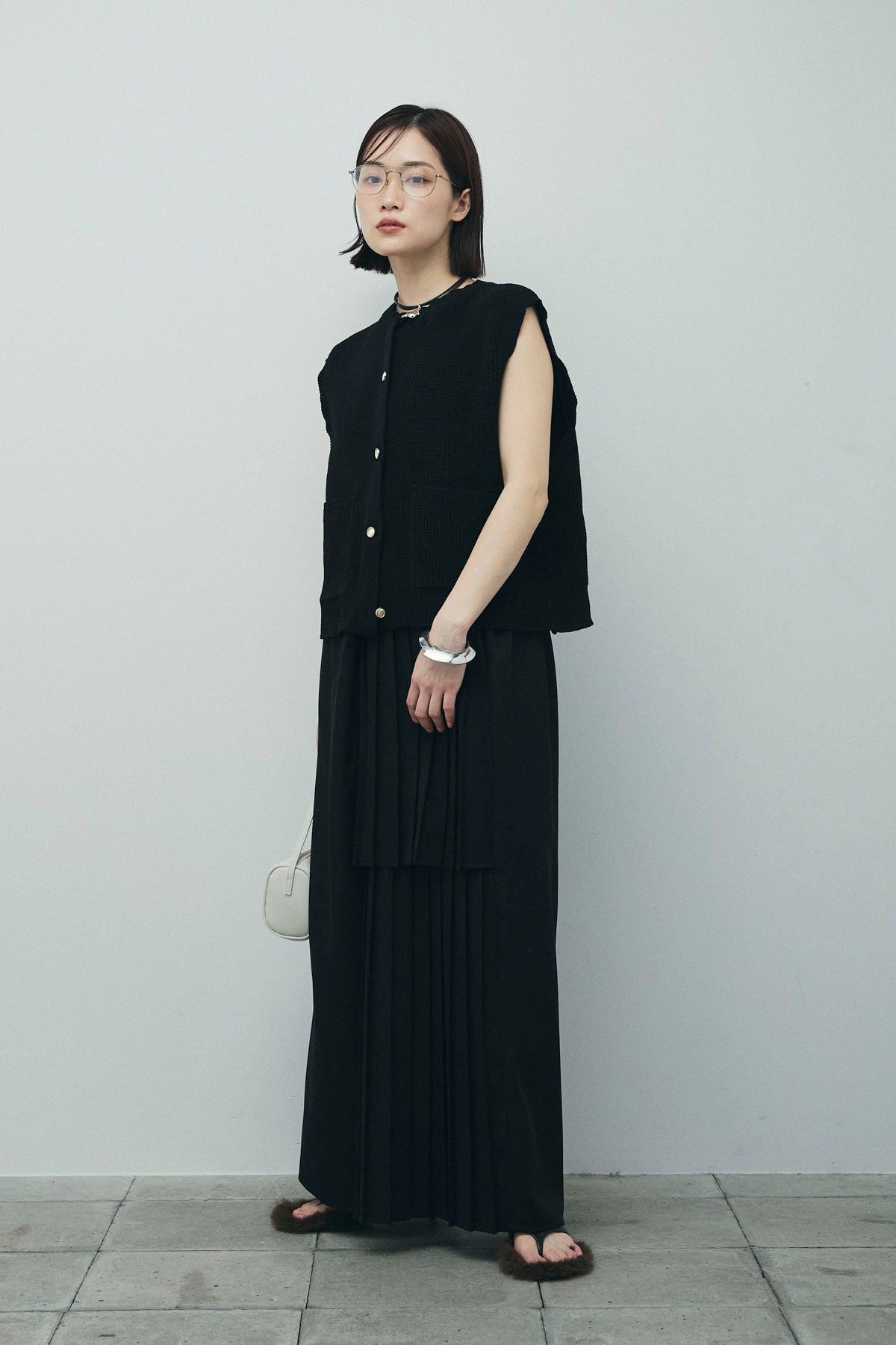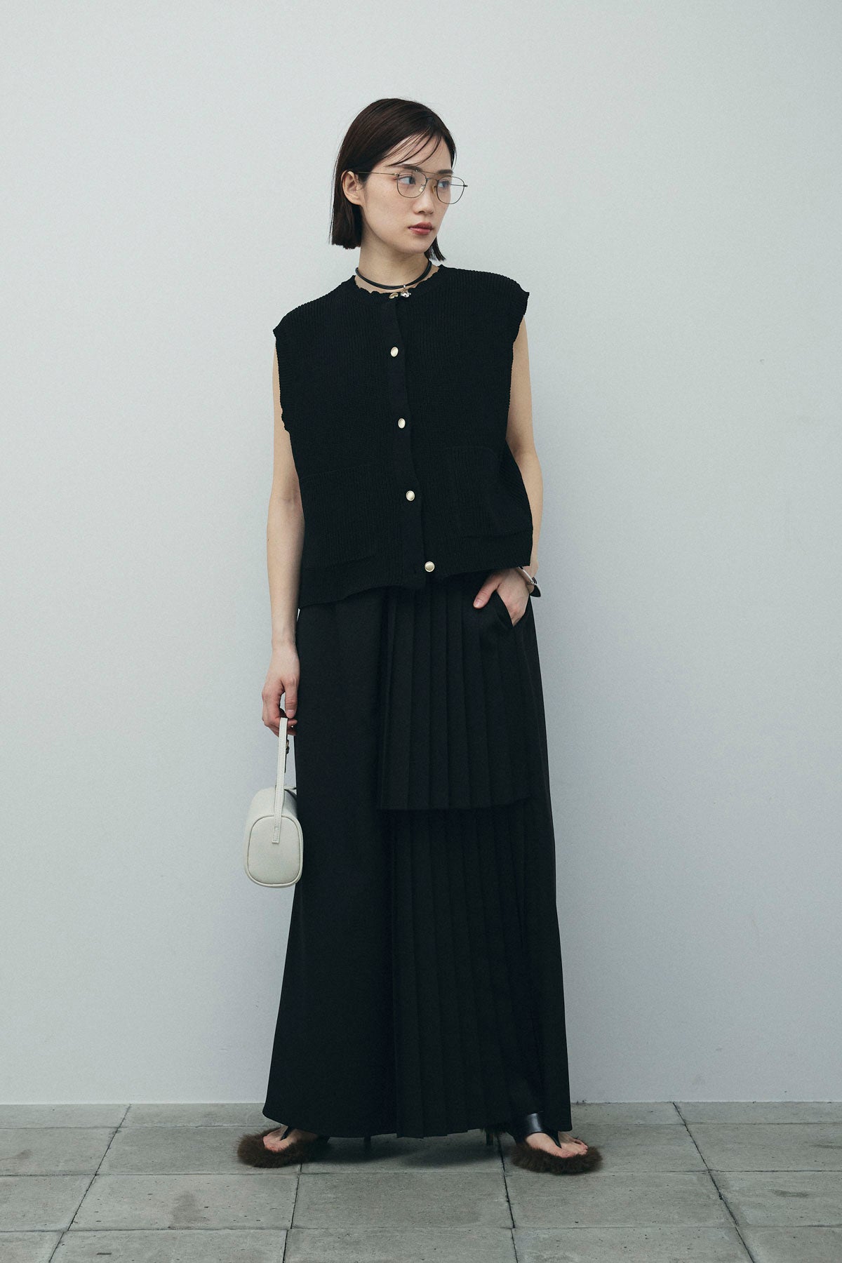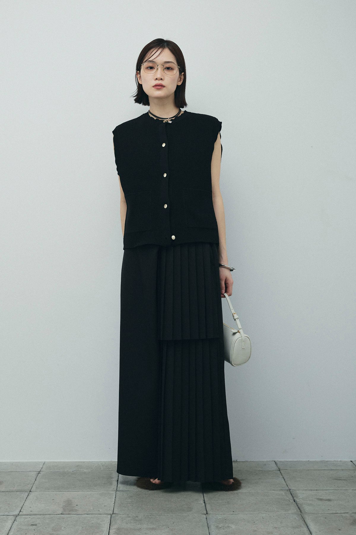 [予約/SET]畦編み金釦ルーズベスト+アシメプリーツパンツ(2set)