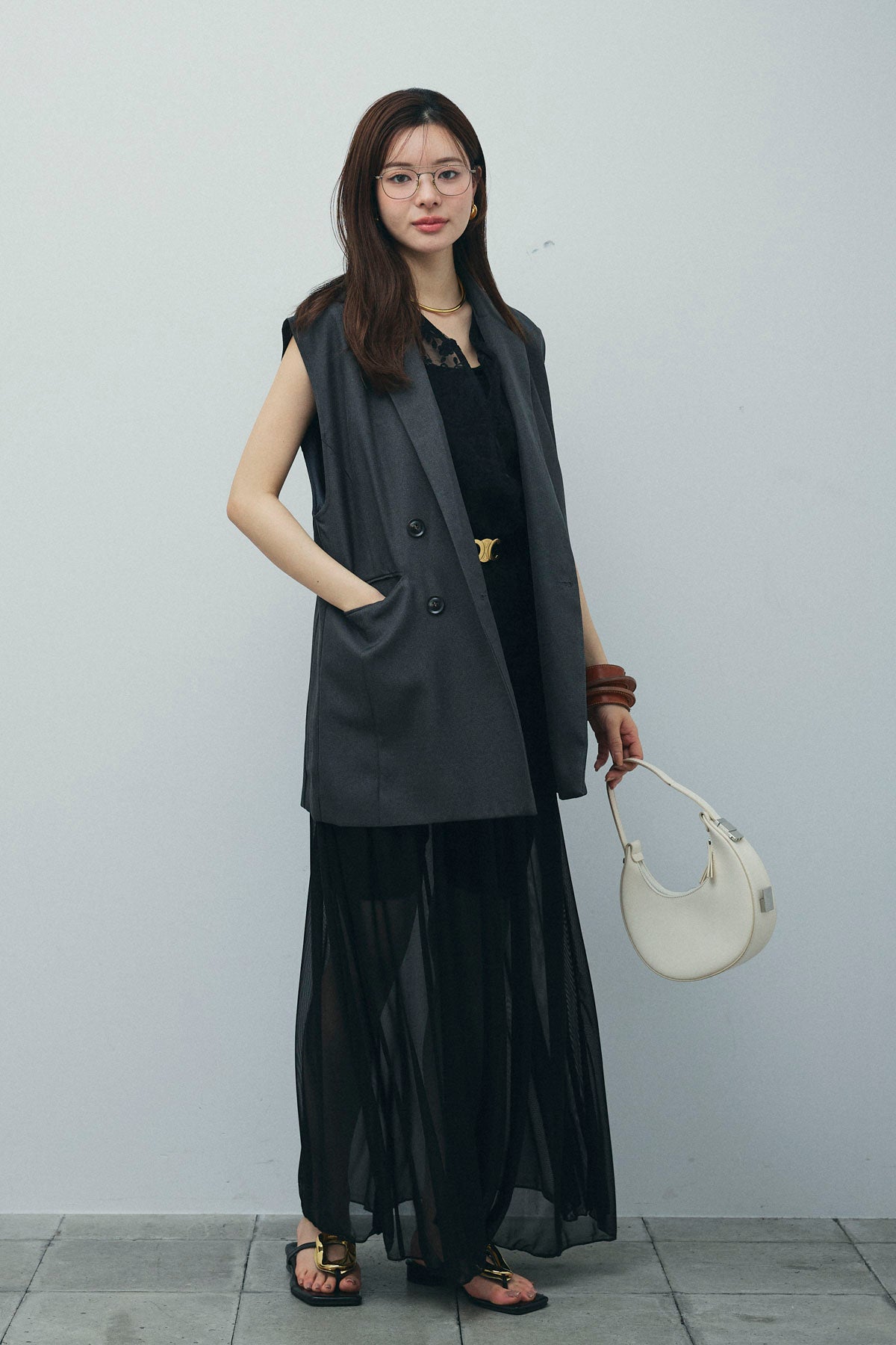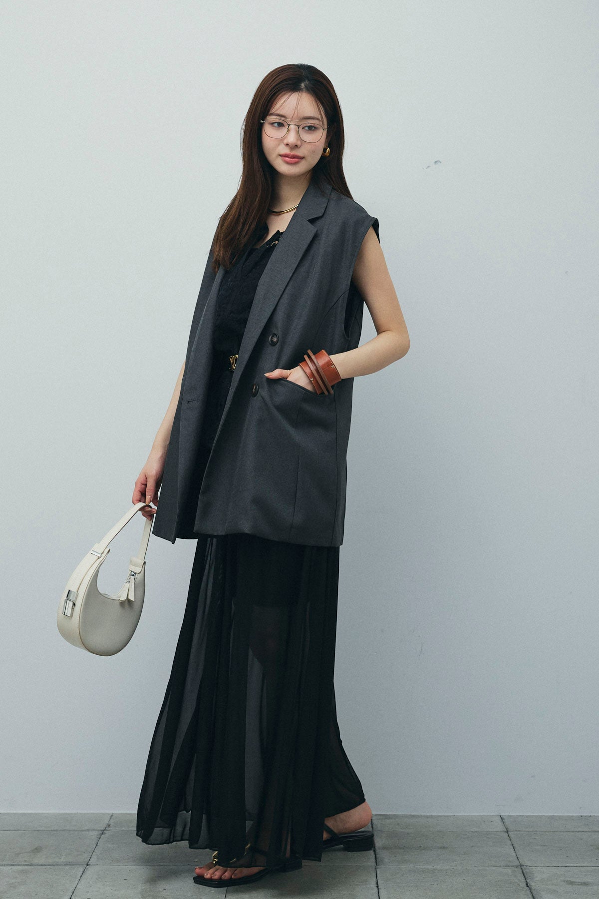 [予約/SET]ヘザーエステルテーラードジレ+オーガンジーレースPO(2set)