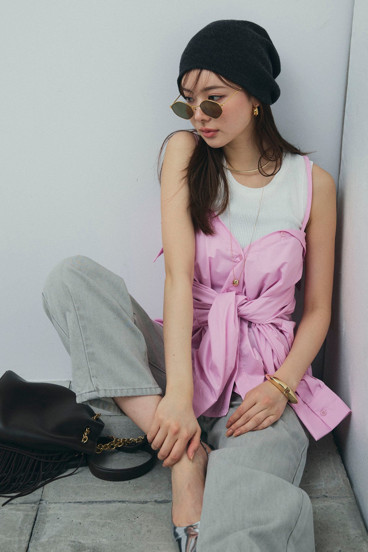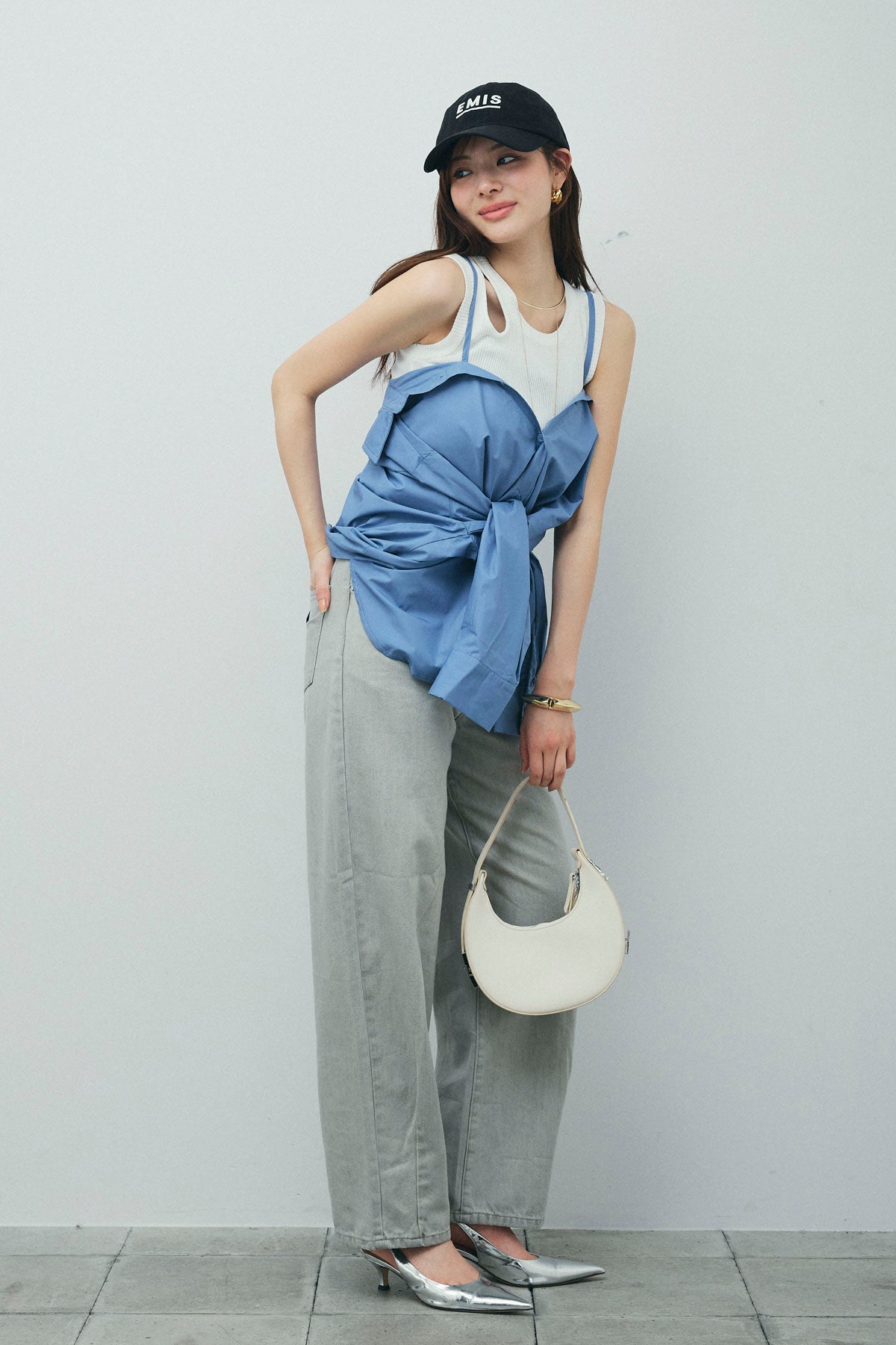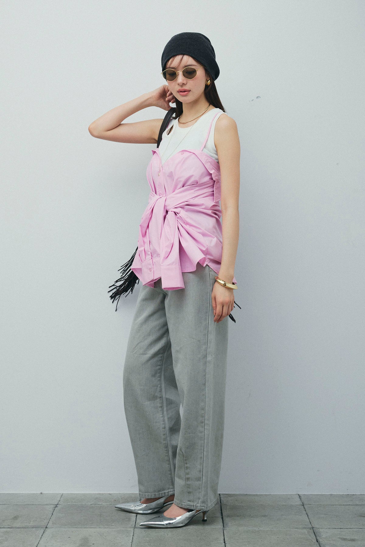[予約/SET]2WAYキャミソールビスチェシャツ+カットアウトリブタンク(2set)