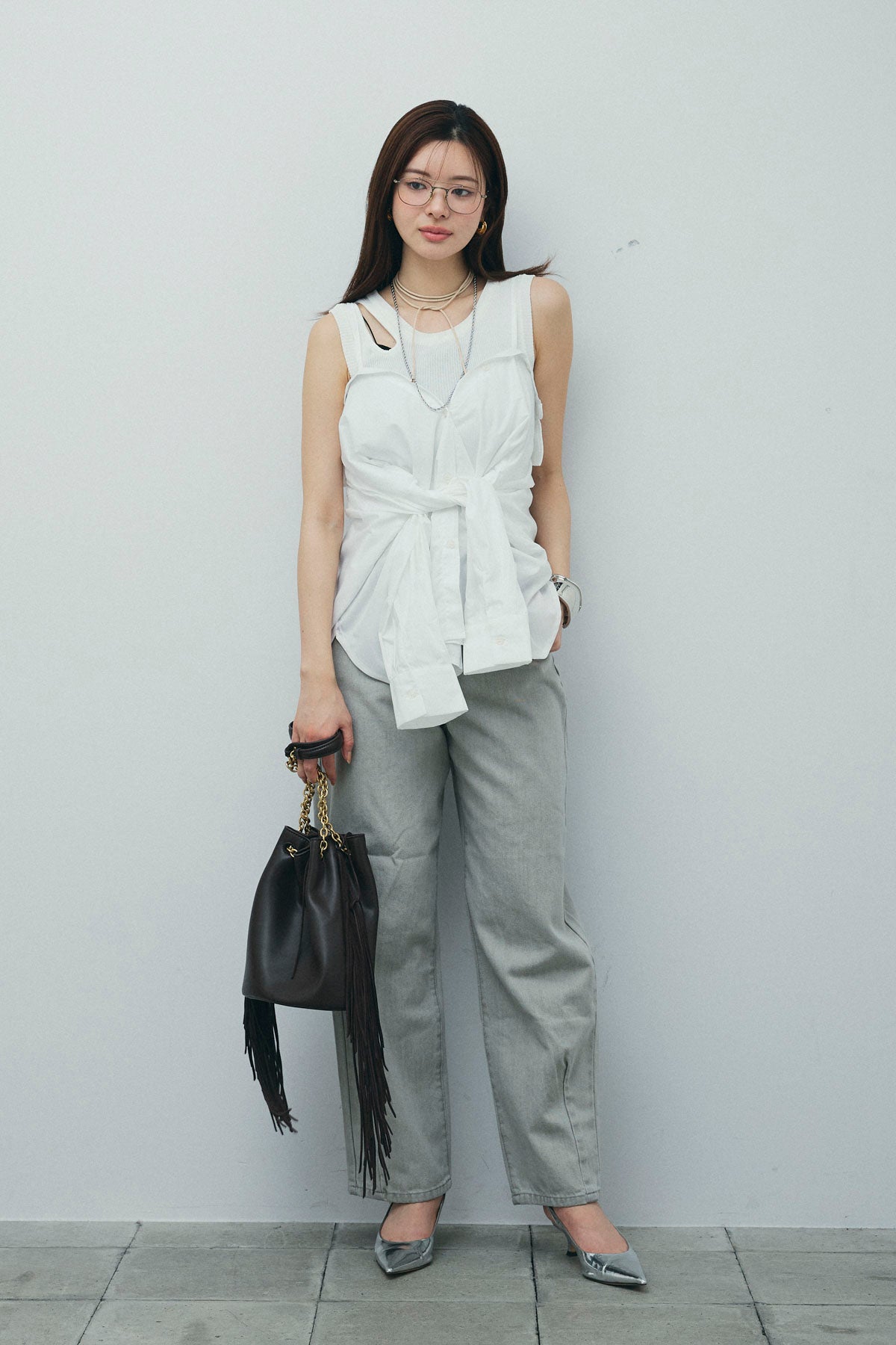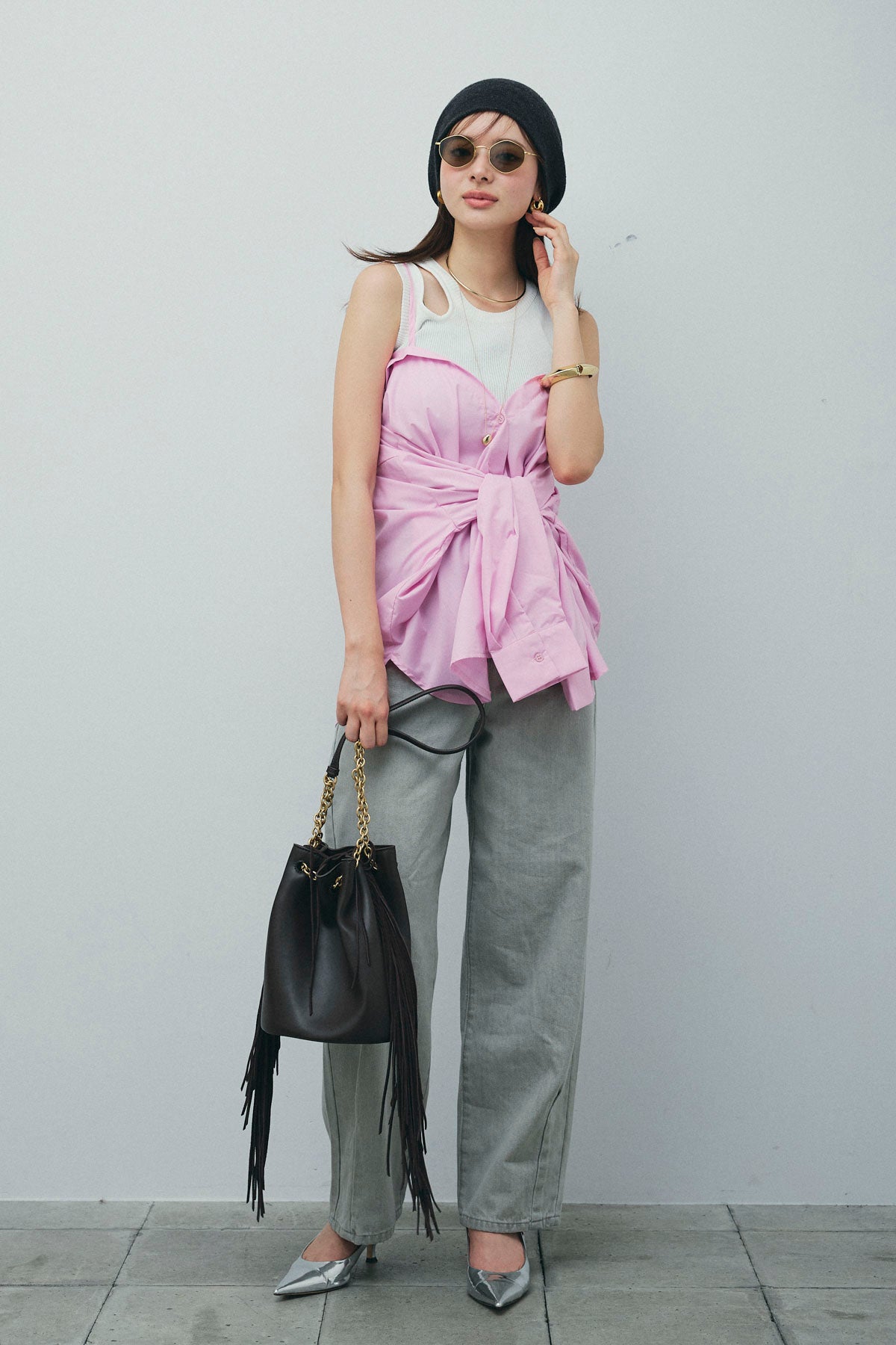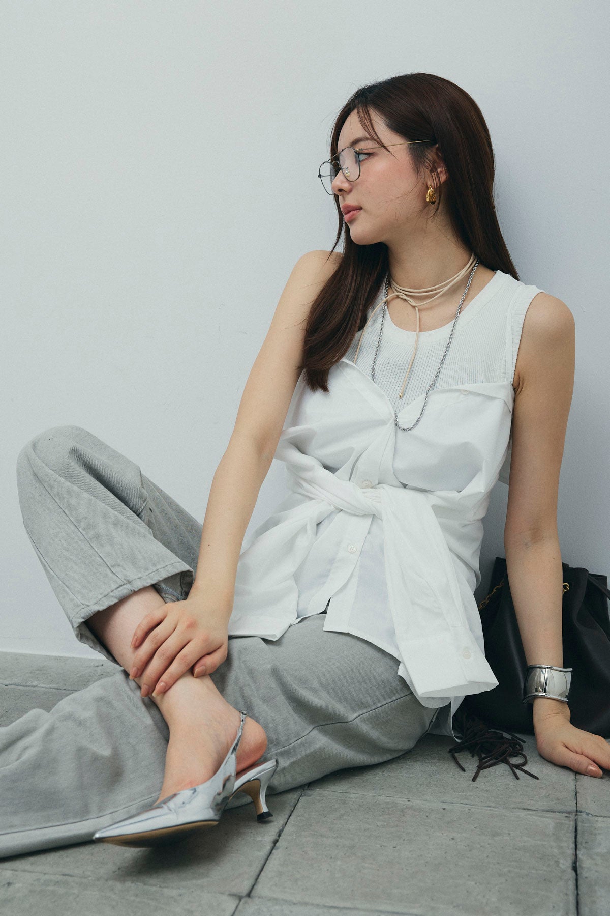 [予約/SET]2WAYキャミソールビスチェシャツ+カットアウトリブタンク(2set)