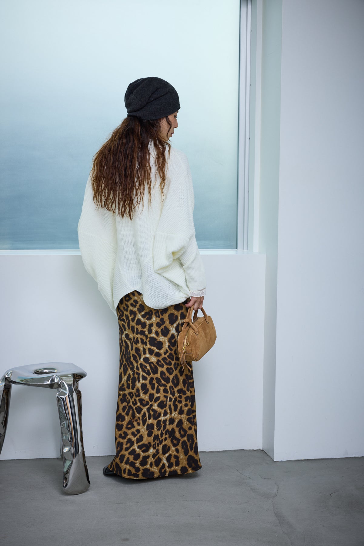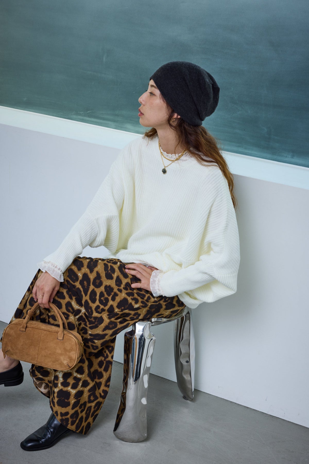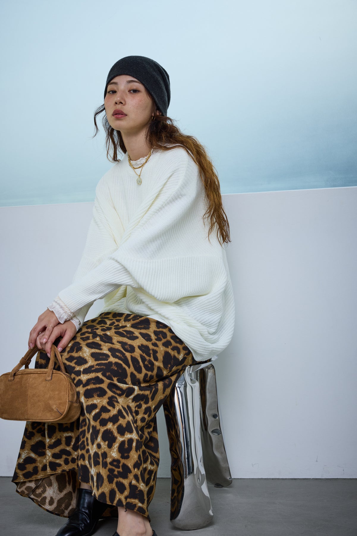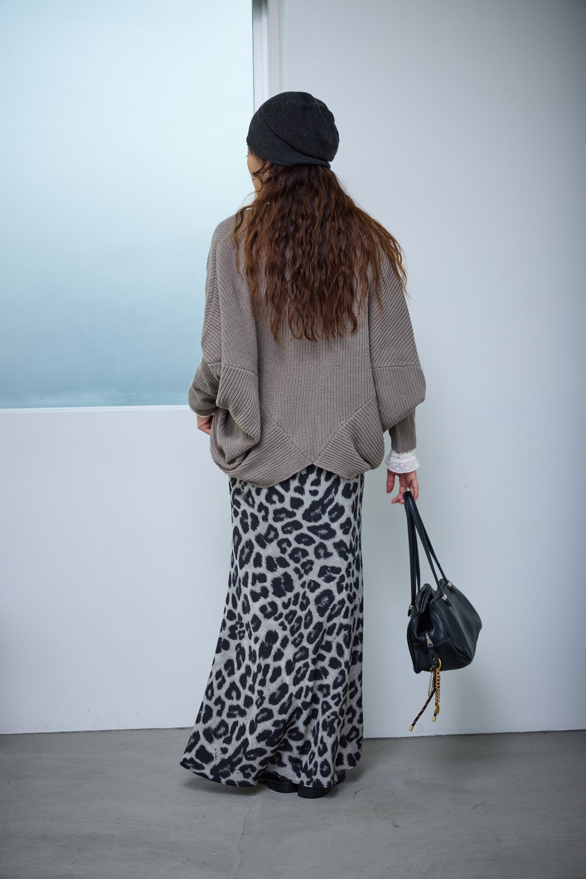 [予約/SET]ルーズドレープドルマンニットプルオーバー+レオパードナロースカート(2set)