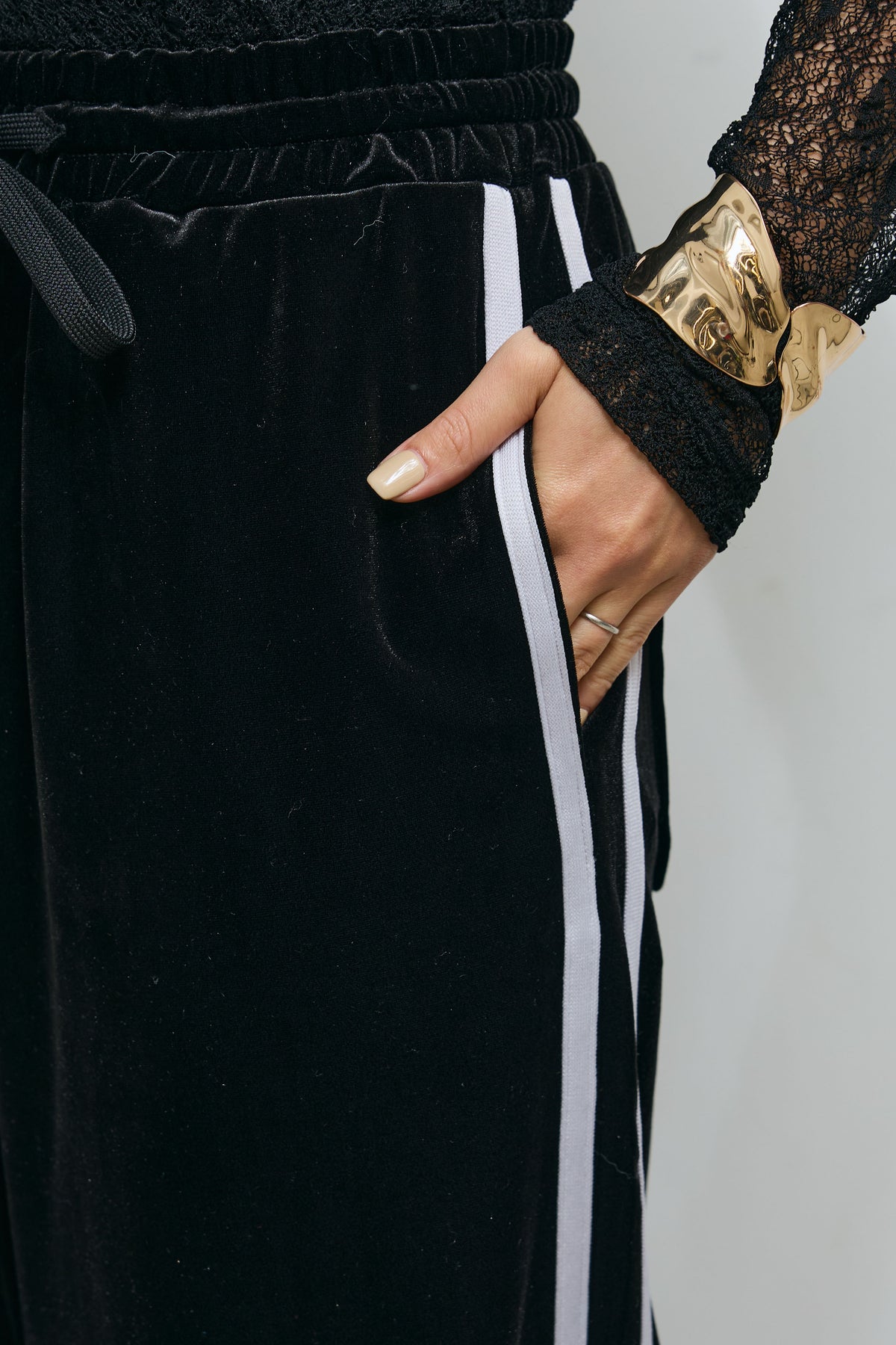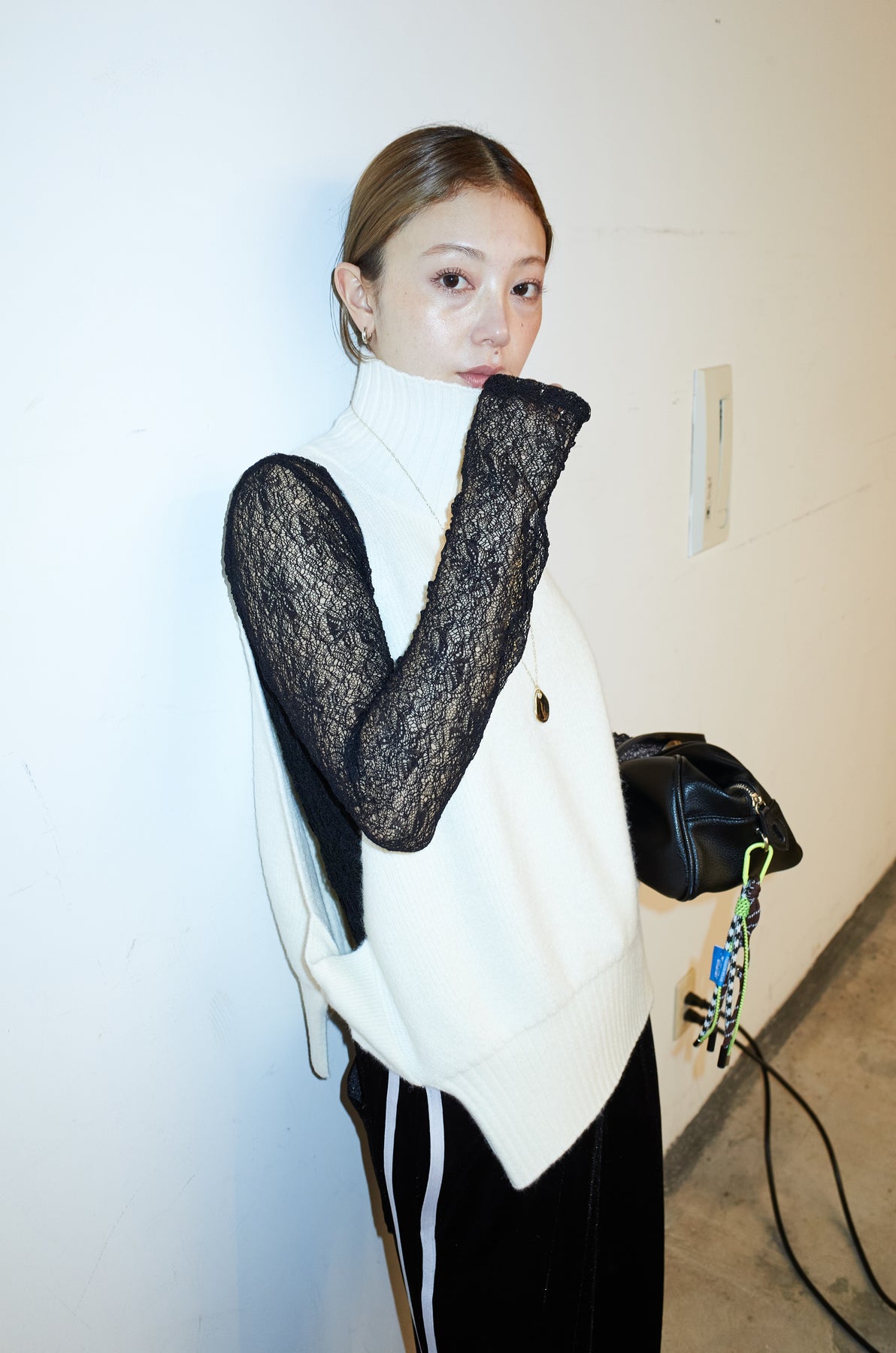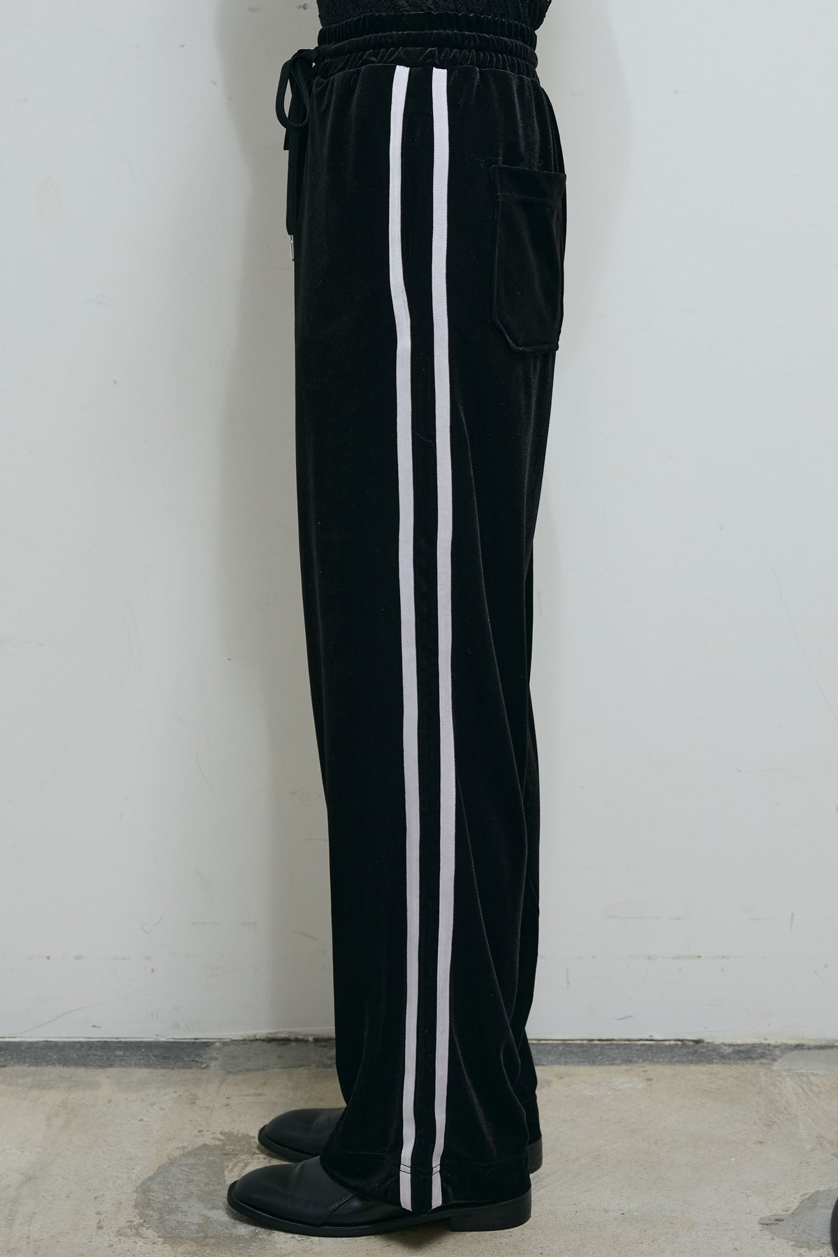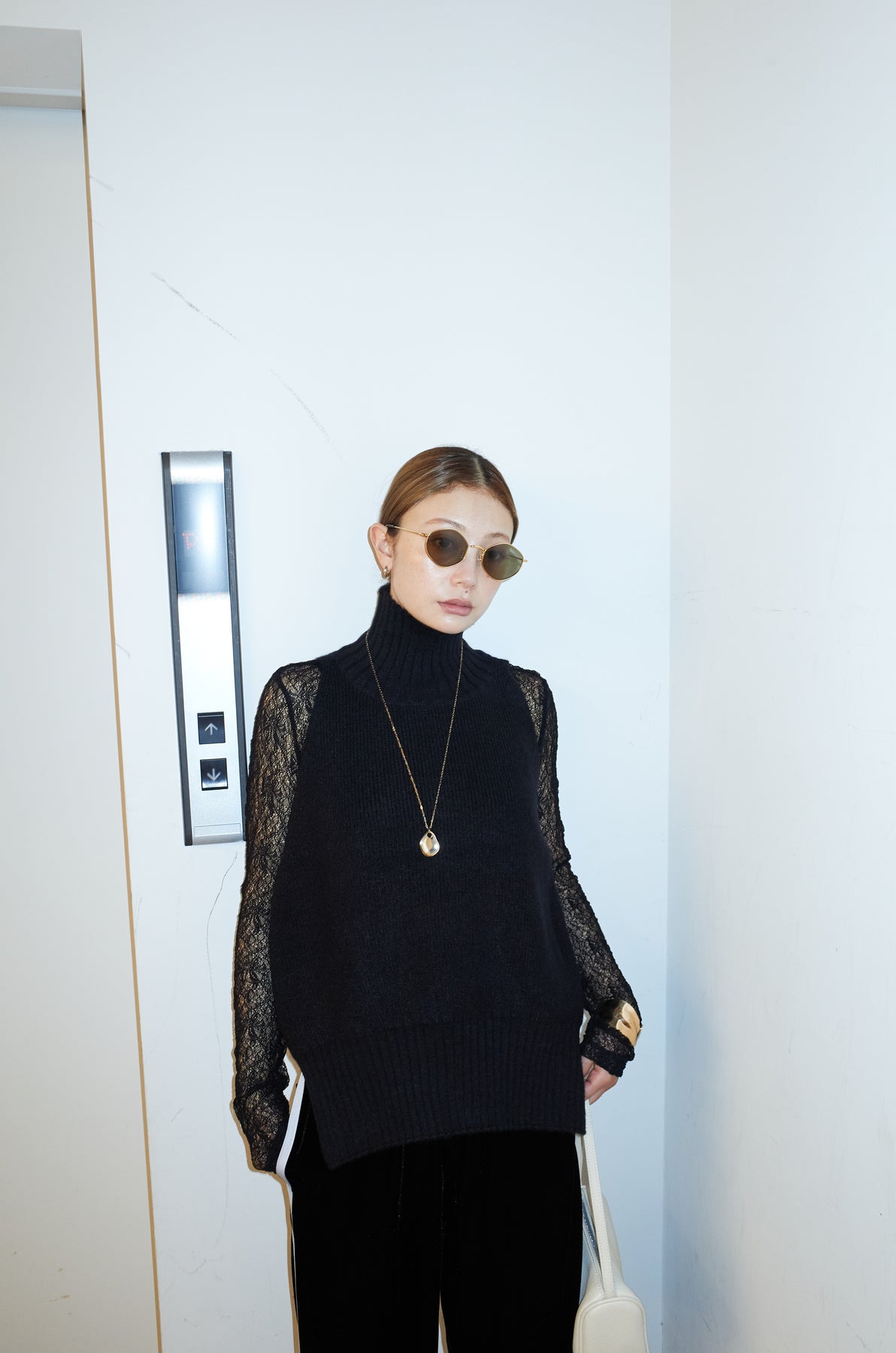 [予約/SET]ハイネックワイドーオープンニットベスト+シアーレーストップス+サイドラインベロアパンツ(3set)