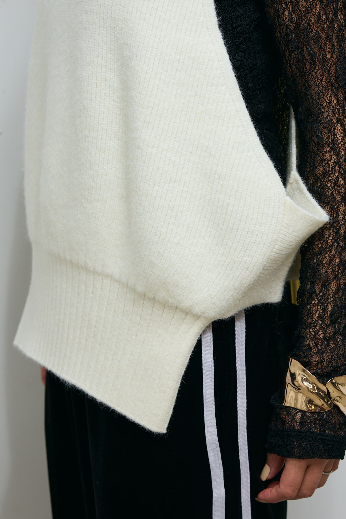 [予約/SET]ハイネックワイドーオープンニットベスト+サイドラインベロアパンツ(2set)