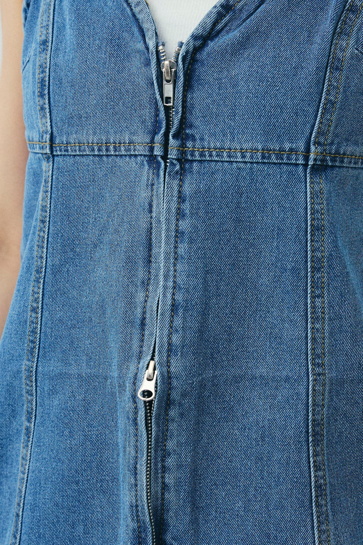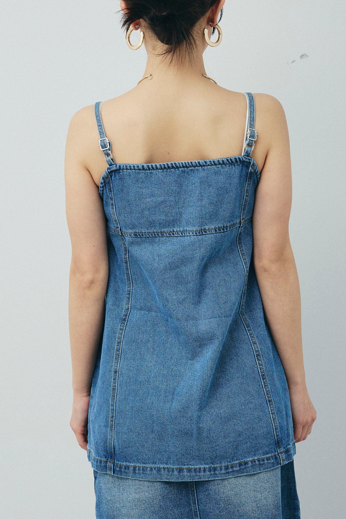 トレンド感たっぷりのデニムビスチェ。フロントのダブルジップがアクセントになり、カジュアルながらも洗練された印象に。タイトすぎないシルエットで抜け感があり、Tシャツやタンクトップとレイヤードすることでさまざまなスタイリングが楽しめます。デニムアイテムとセットアップで着こなすのもおすすめ。