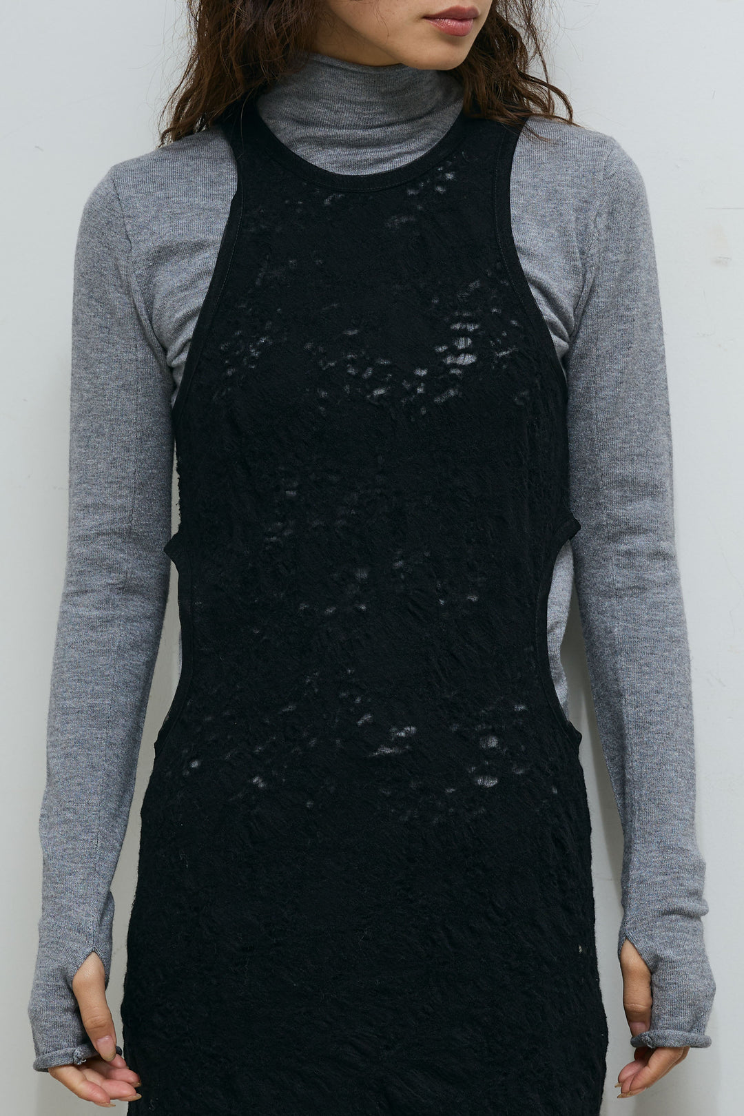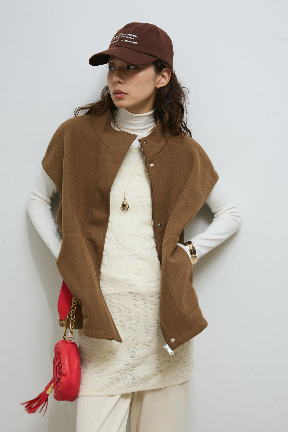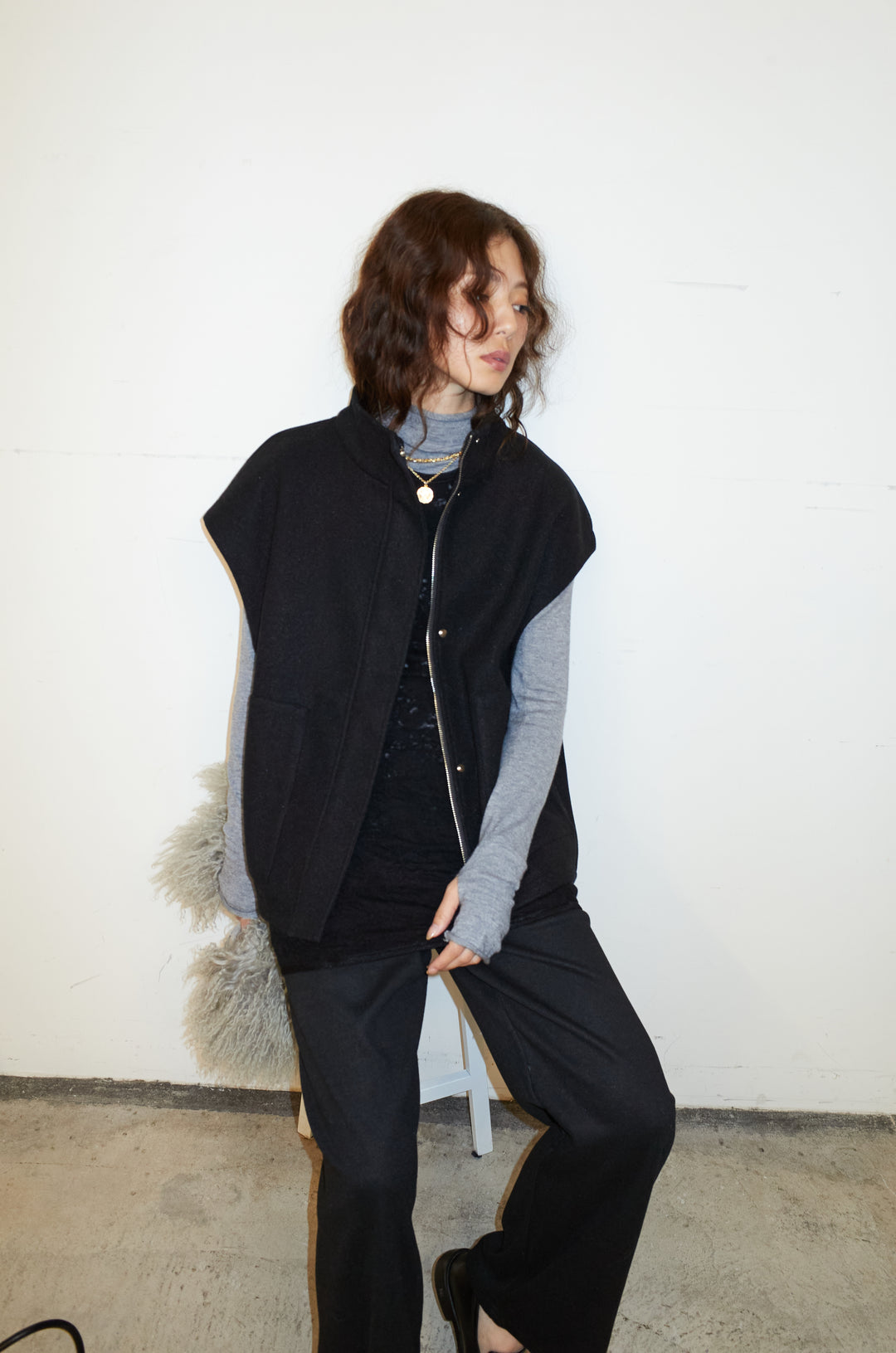 [予約/SET]ウールライクスタンドカラーベスト+サイドホールウールブレンドレースロングタンク+ダンボールニットパンツ(3set)