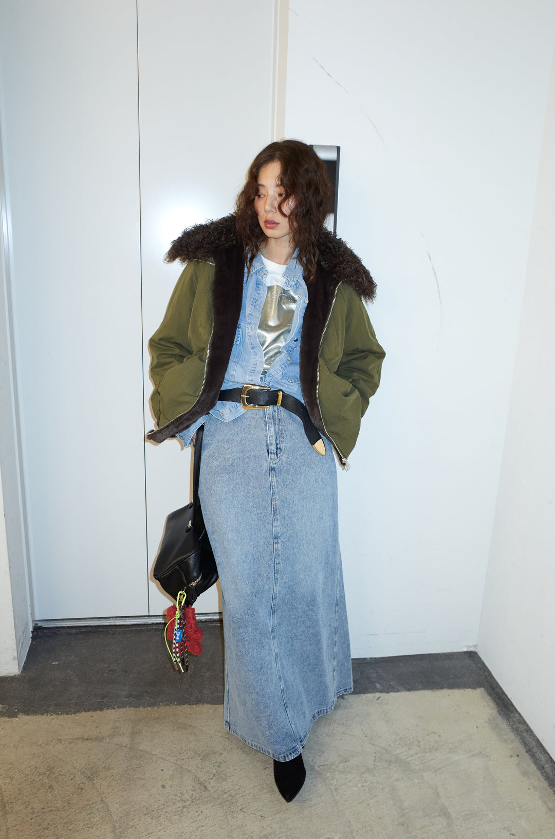 [予約/SET]ボア襟ジップブルゾン+オーセンティックデニムSK(2set)