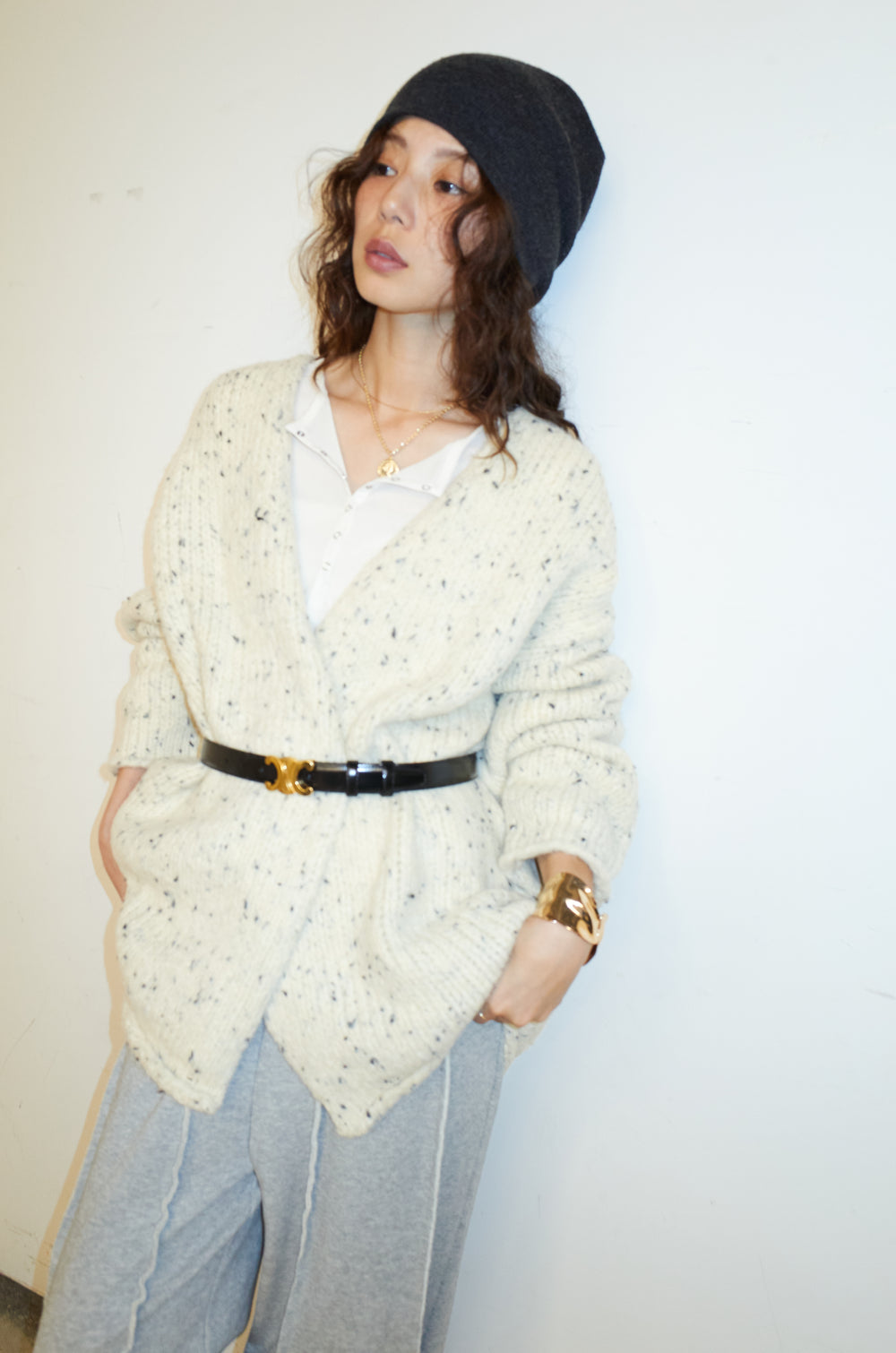 [予約/SET]ネップモールミドルカーディガン+ベロアチュールヘンリーネックT+ストレート裏毛パンツ(3set)