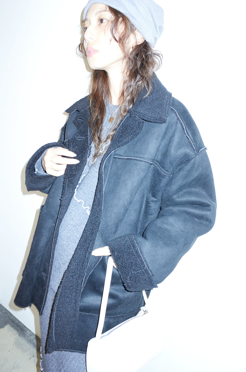 [予約/SET]フェイクムートンジャケット+ランダムメローニットスカート(2set)