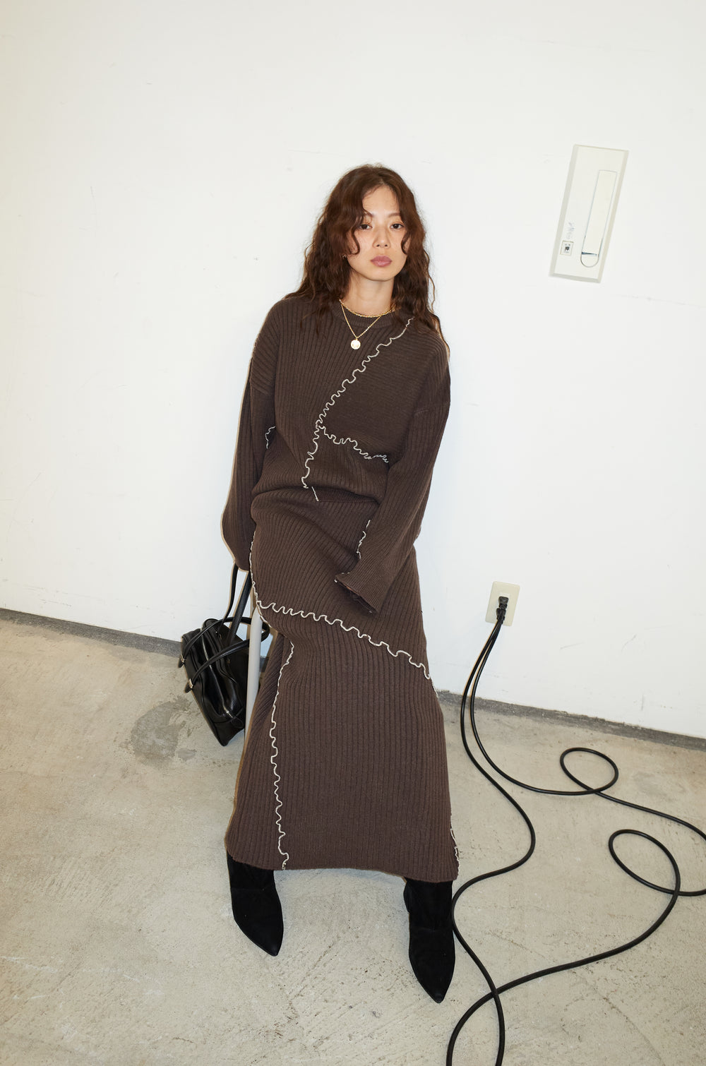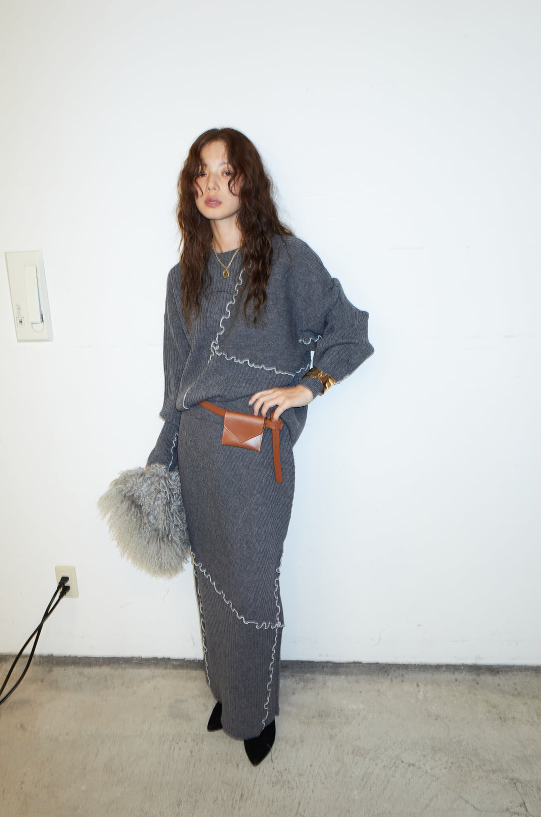 [予約/SET]ローゲージシアー ニット+切り替えリブニットロングスカート(2set)