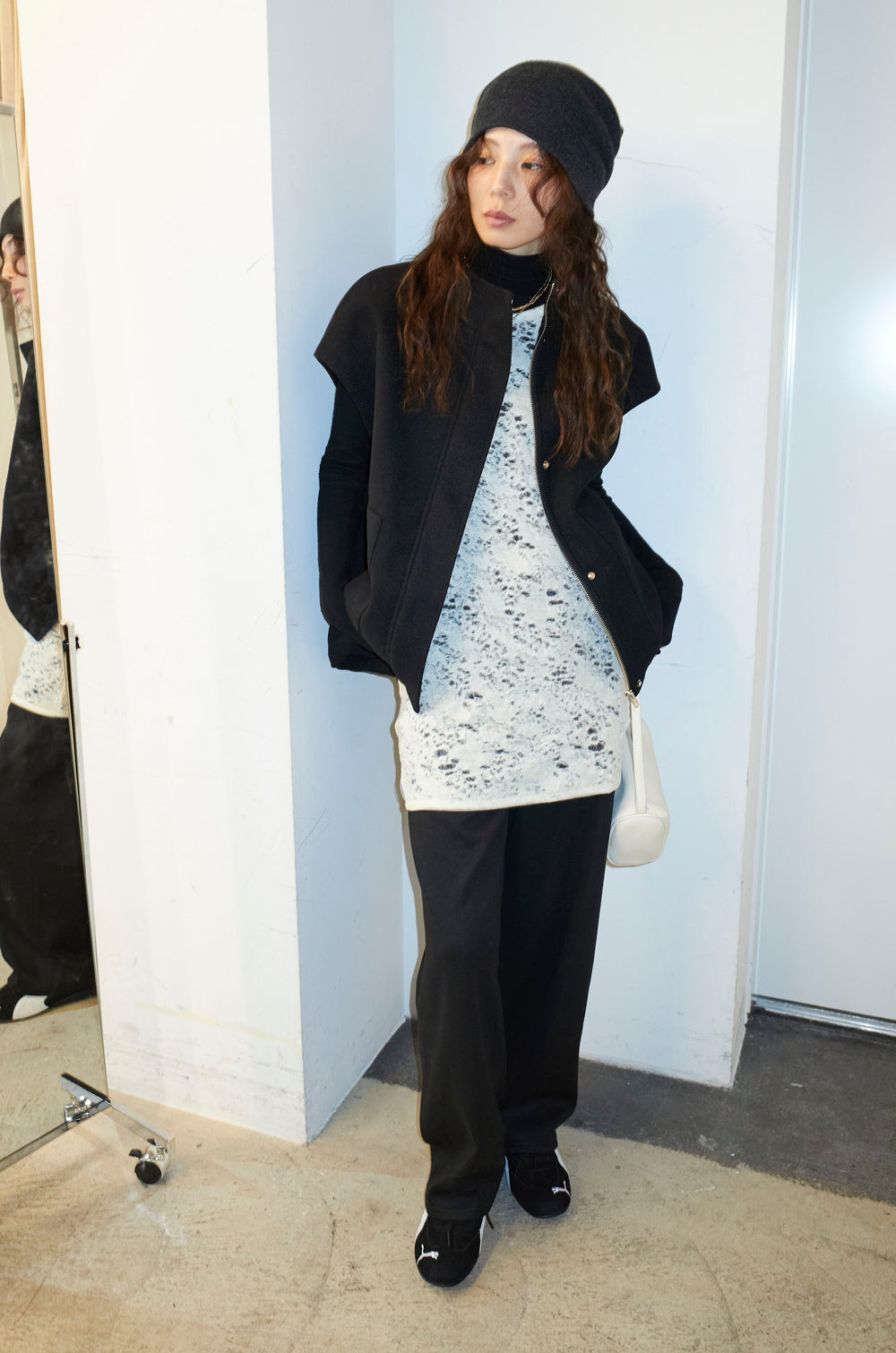 [予約/SET]ボア切替中綿ベスト+アンゴラタッチフィンガーホールタートルニット+ダンボールニットパンツ(3set)