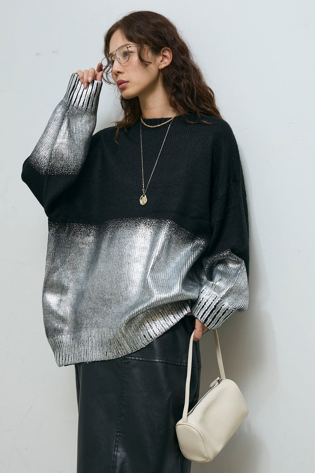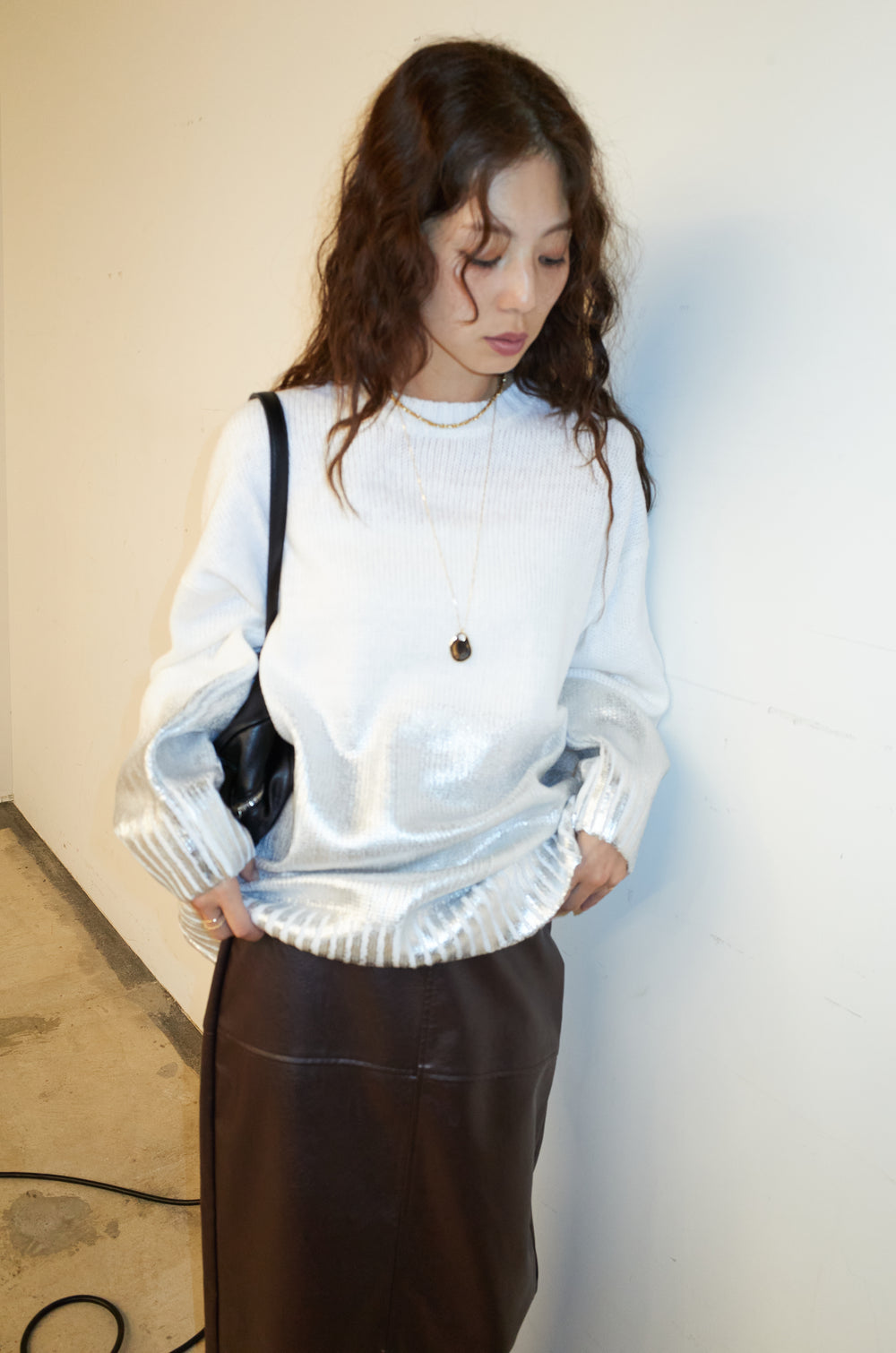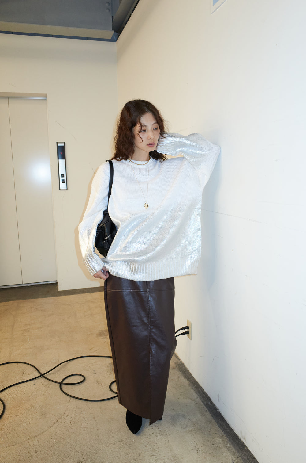 [予約/SET]箔プリントオーバーサイズプルオーバー+エコレザーバックスリットペンシルスカート(2set)