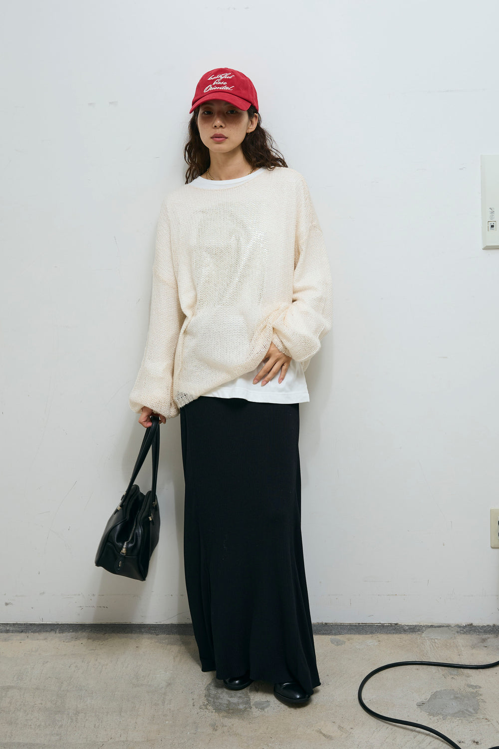 [予約/SET]ローゲージシアー ニット+箔プリントロンT+切り替えリブニットロングスカート(3set)