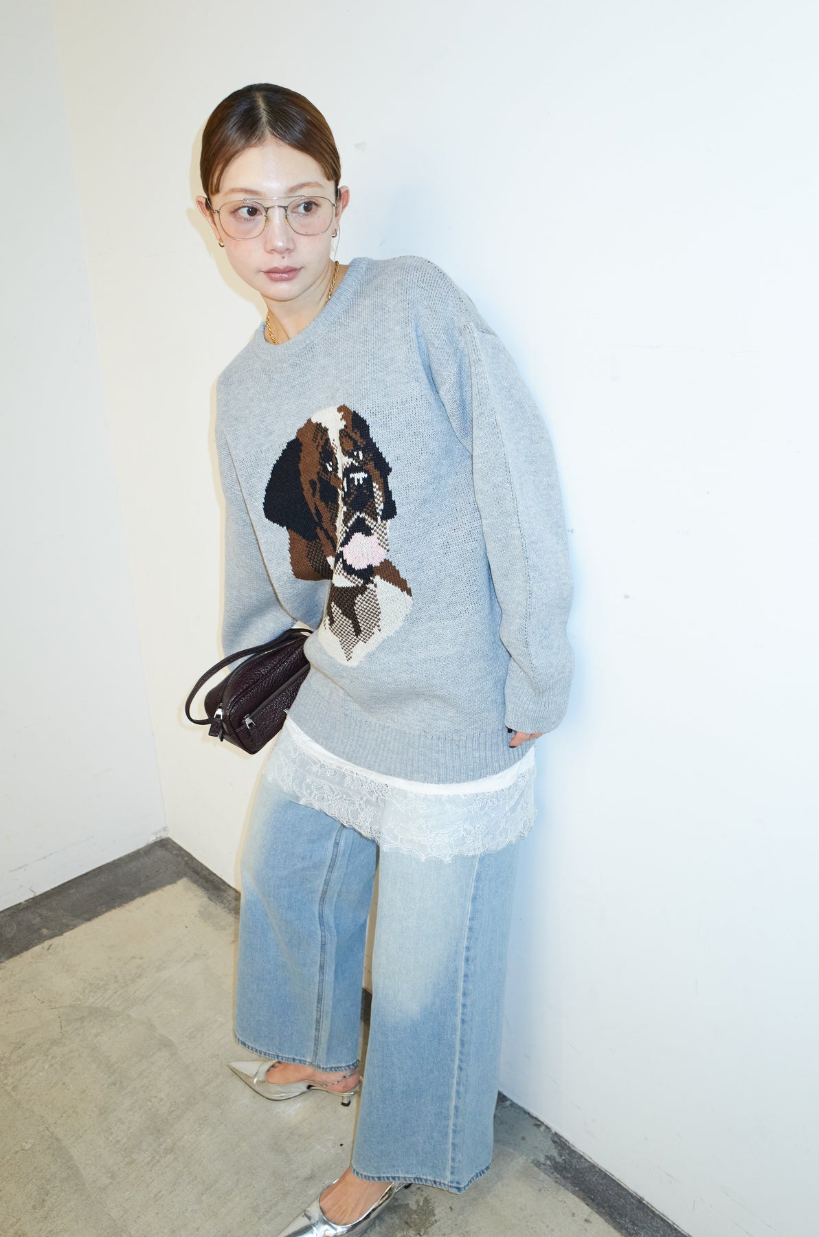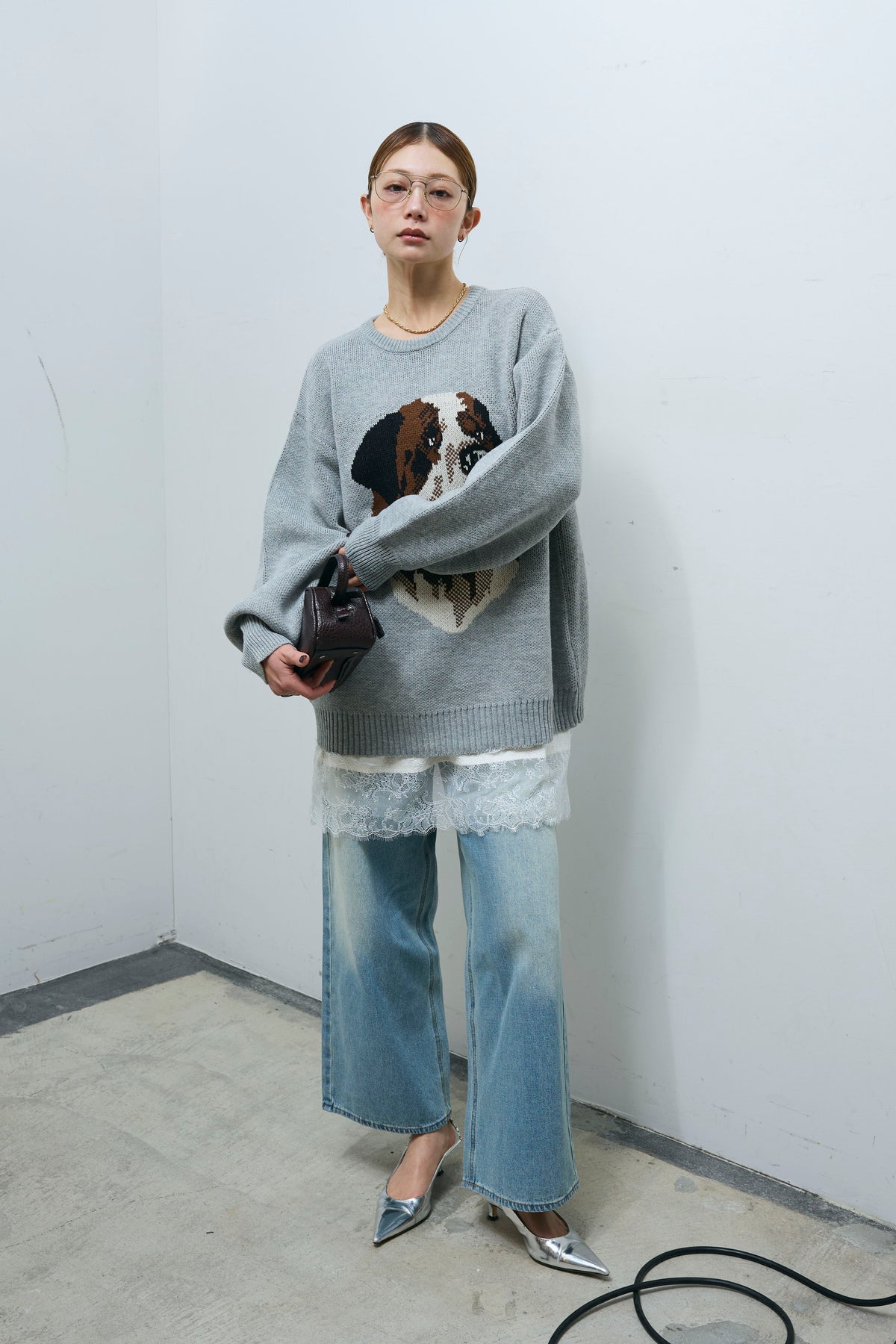 [予約/SET]バーナードジャガードプルオーバー+ウエスト切り替えストレートデニム(2set)