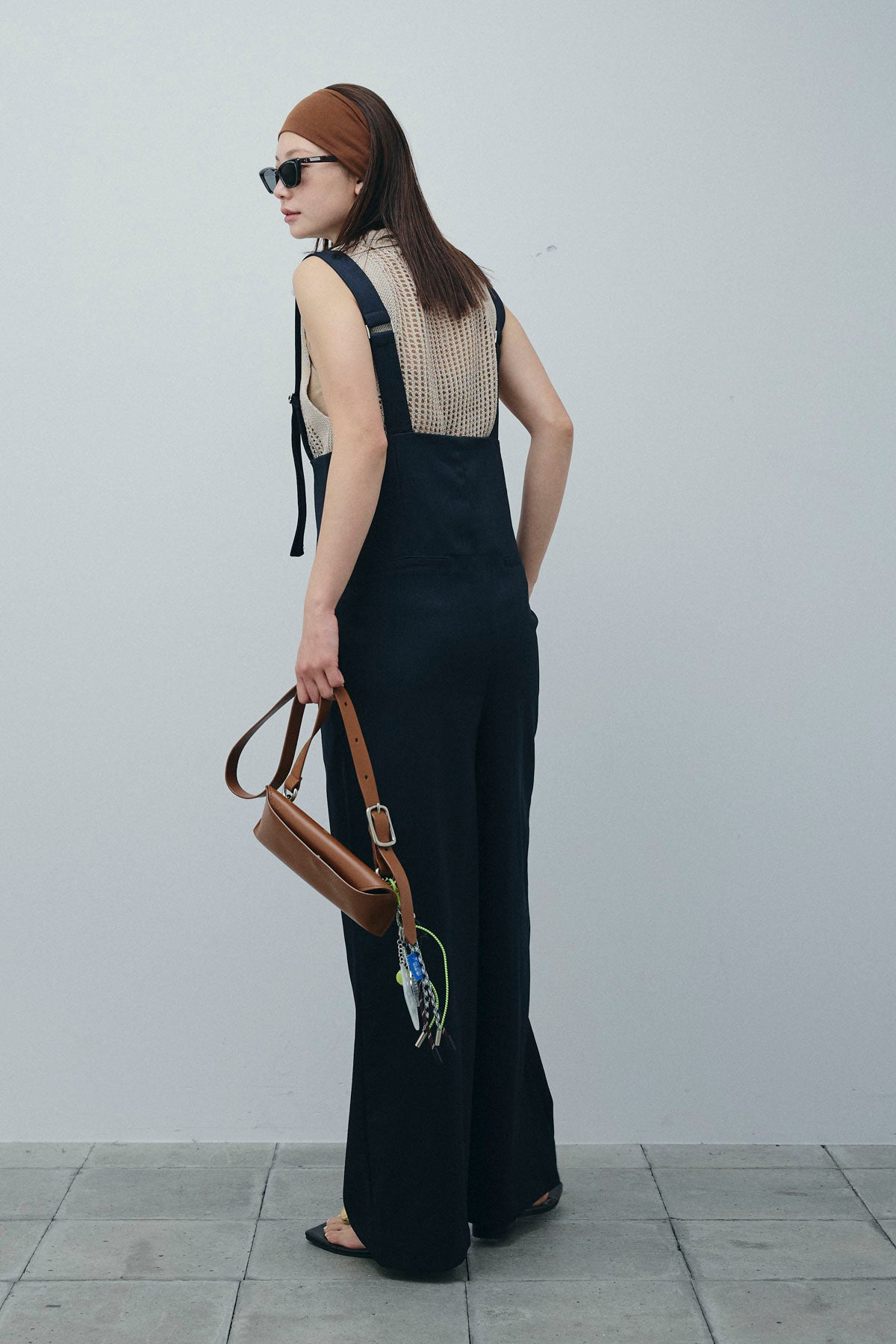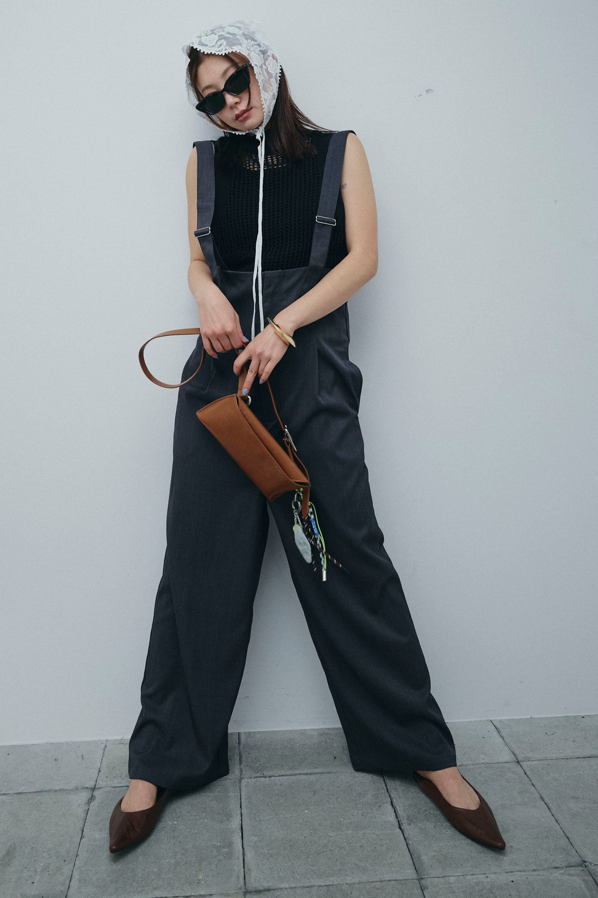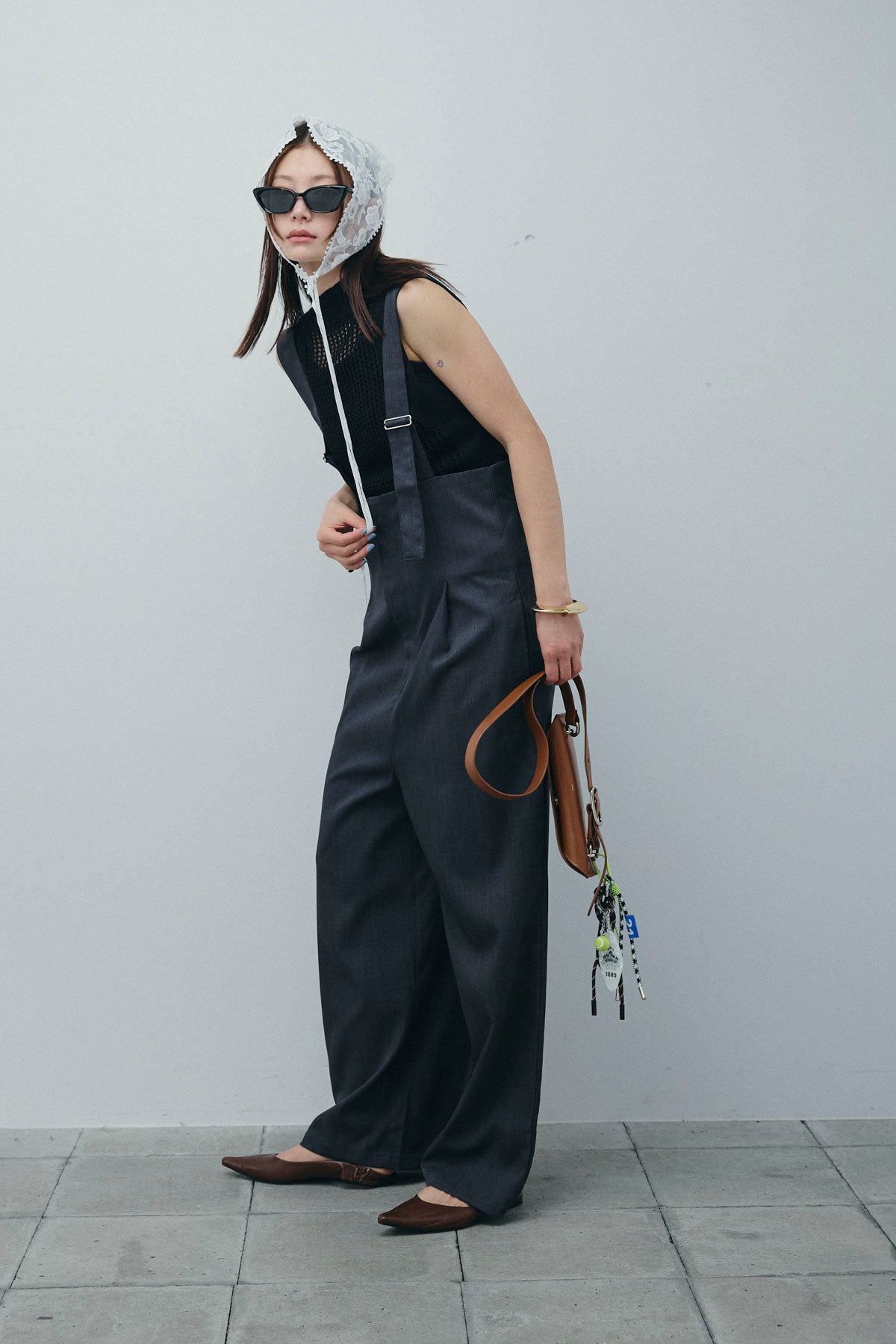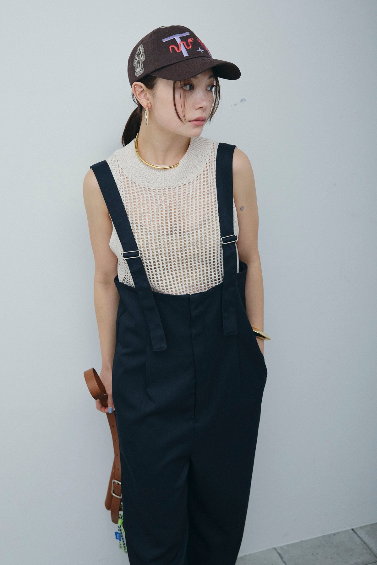 [予約/SET]フィッシュネットノースリーブニット+ハイウエストワイドサロペット(2set)