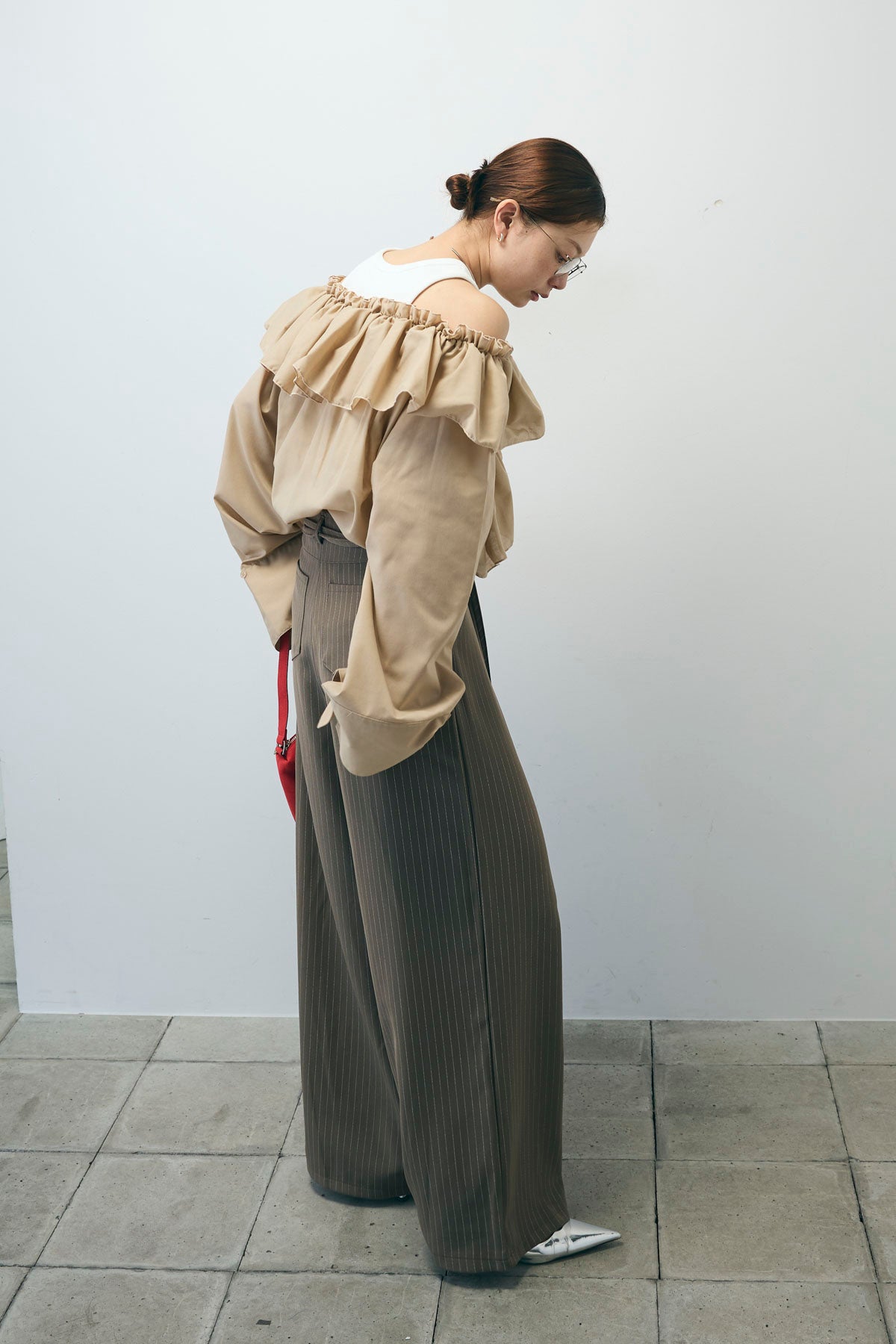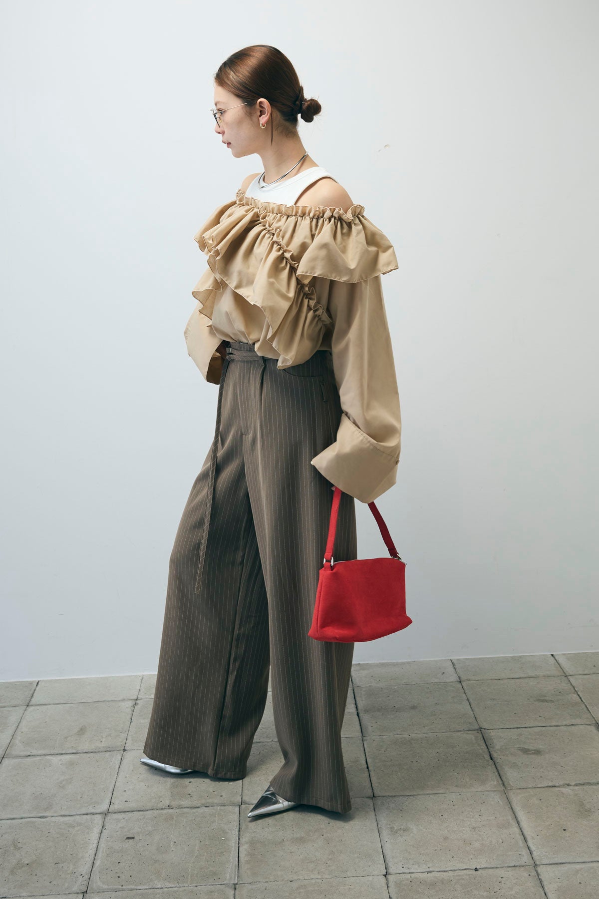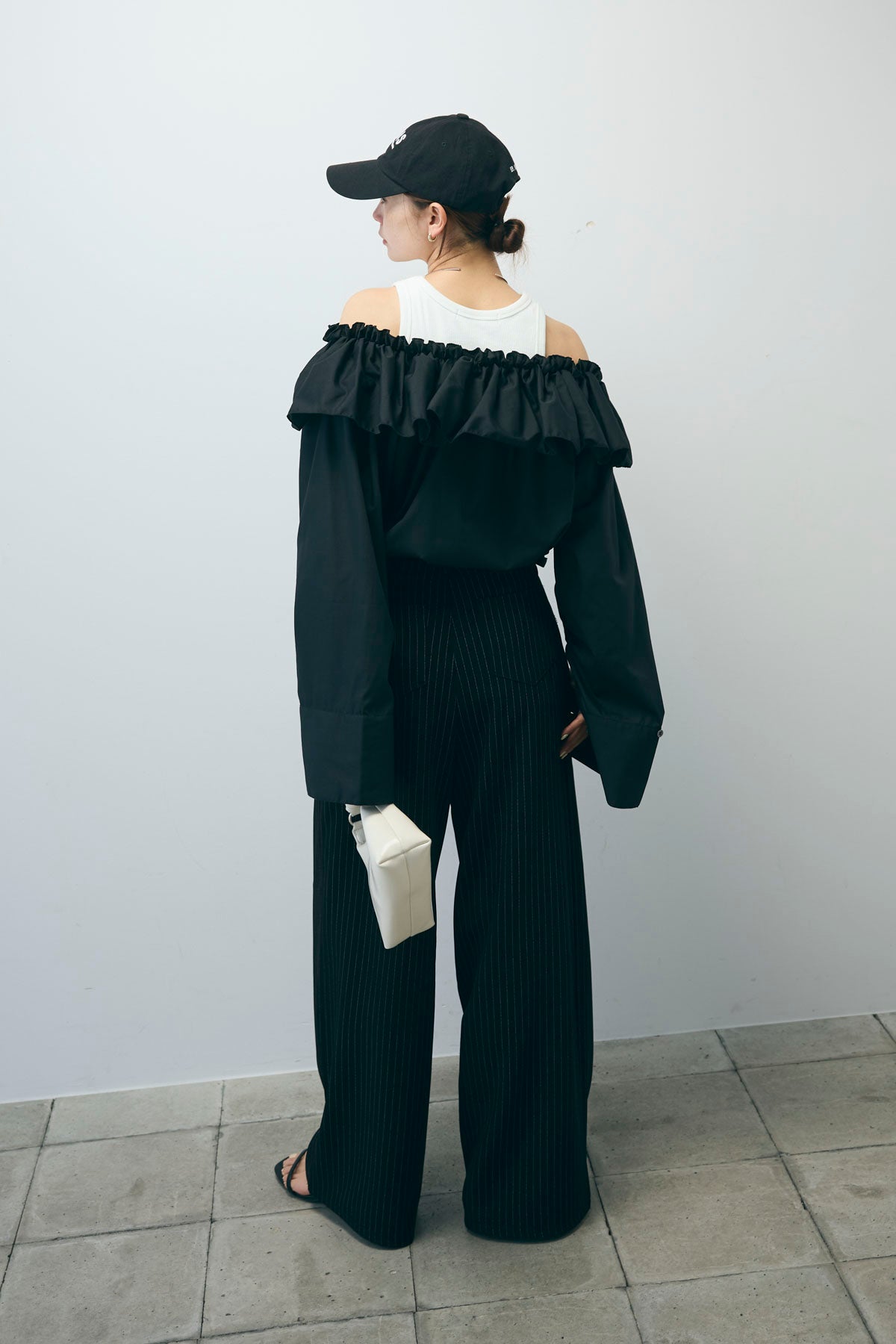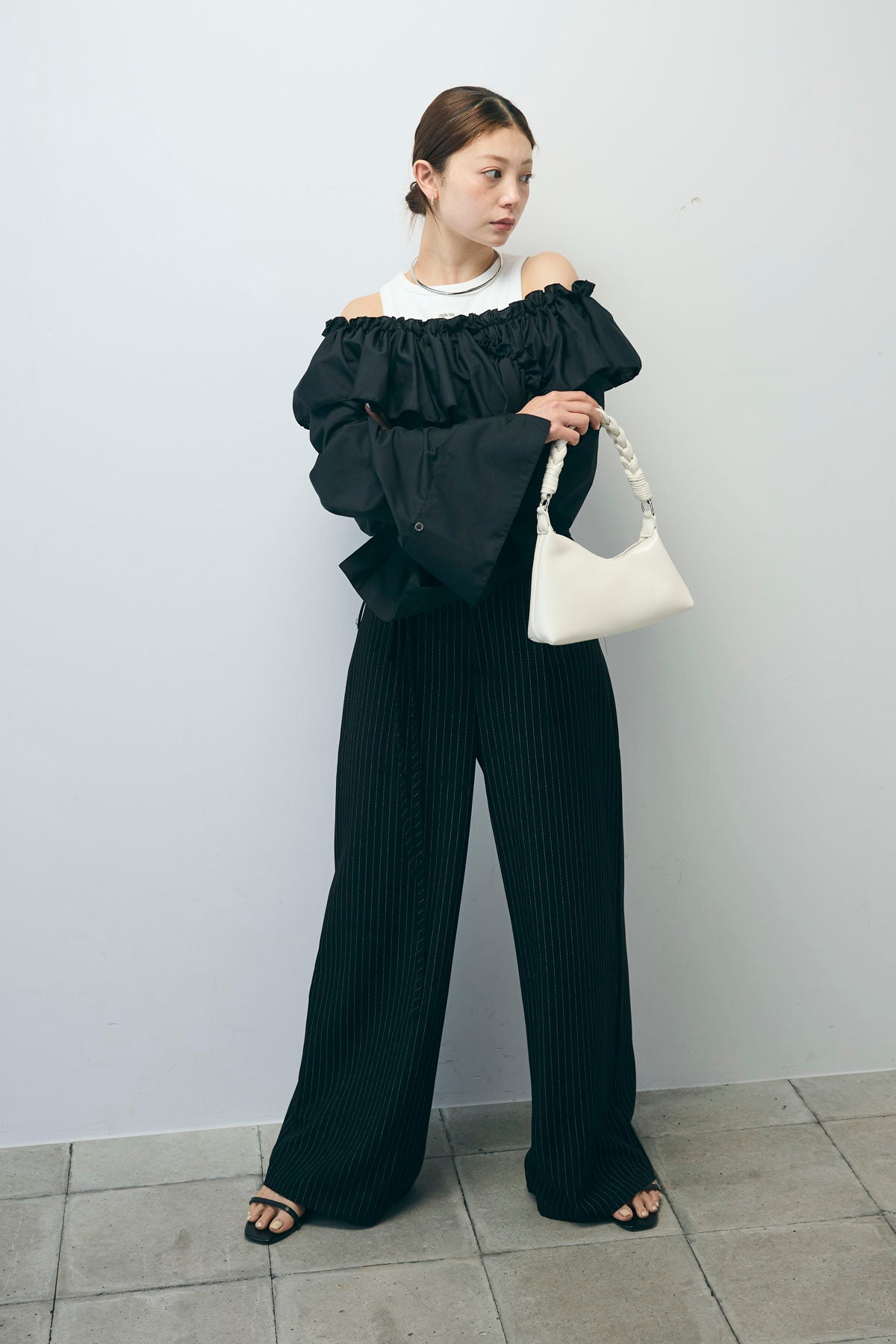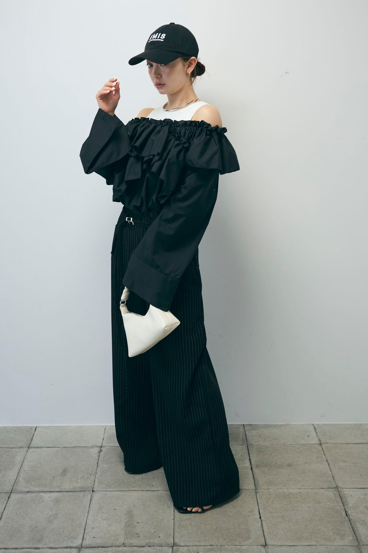 [予約/SET]TCブロード2wayフリルオフショルブラウス+ダブルベルトストライプパンツ(2set)
