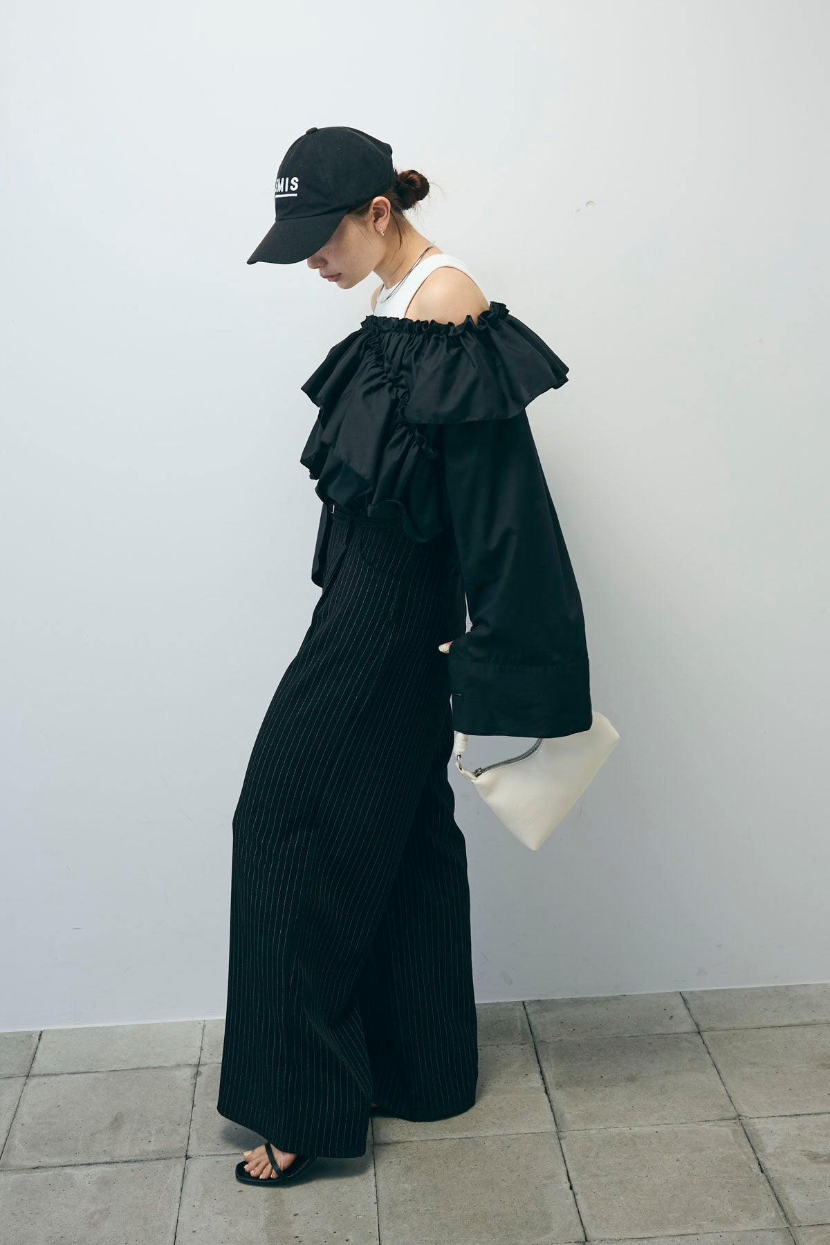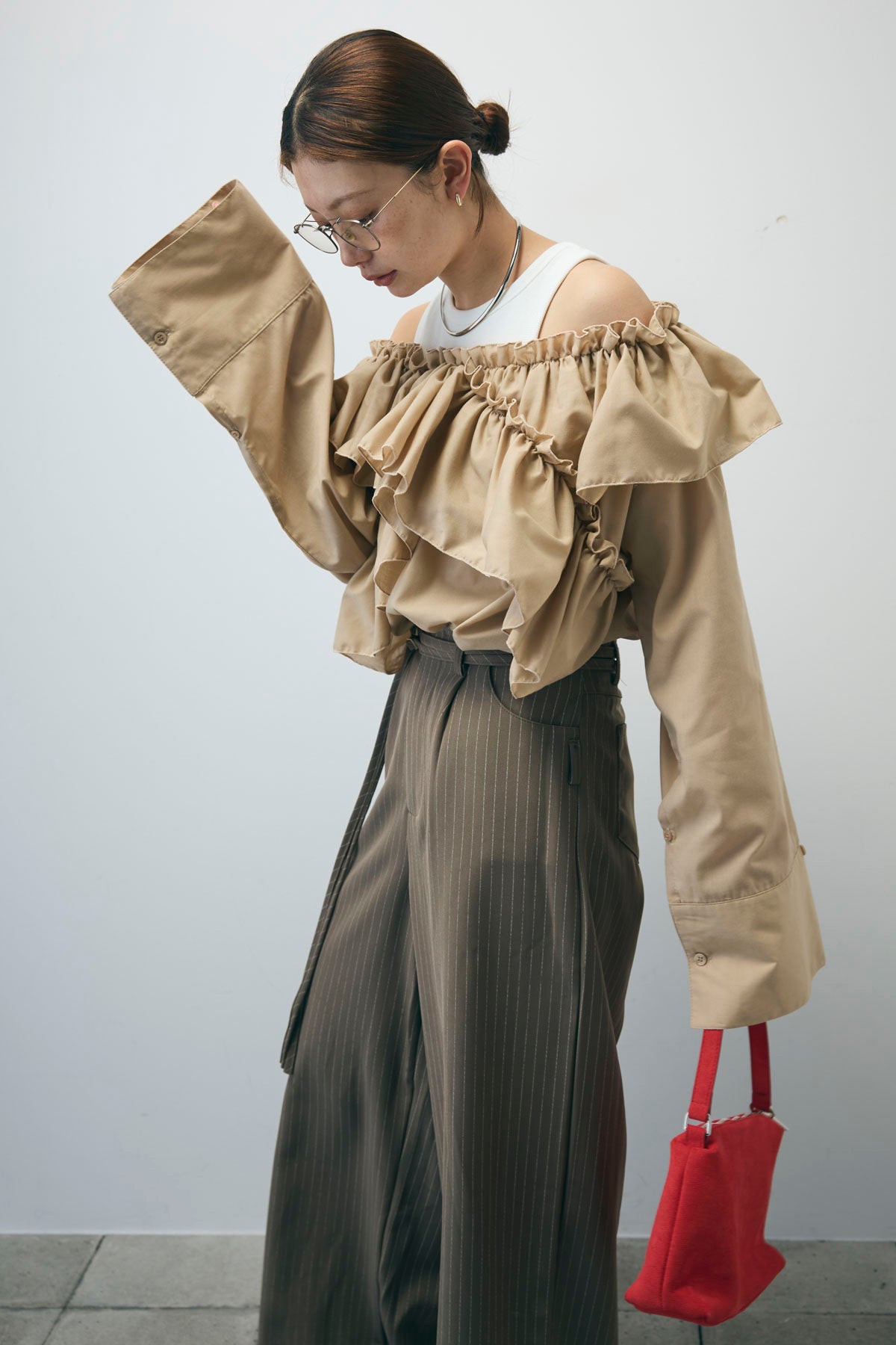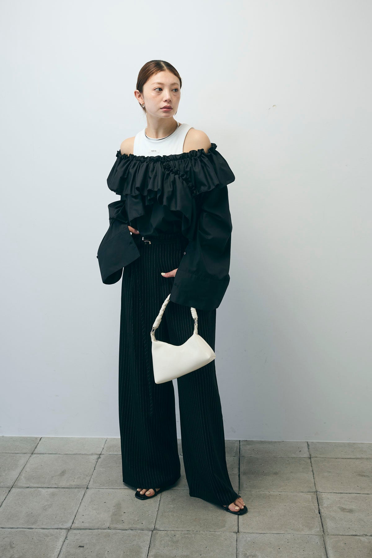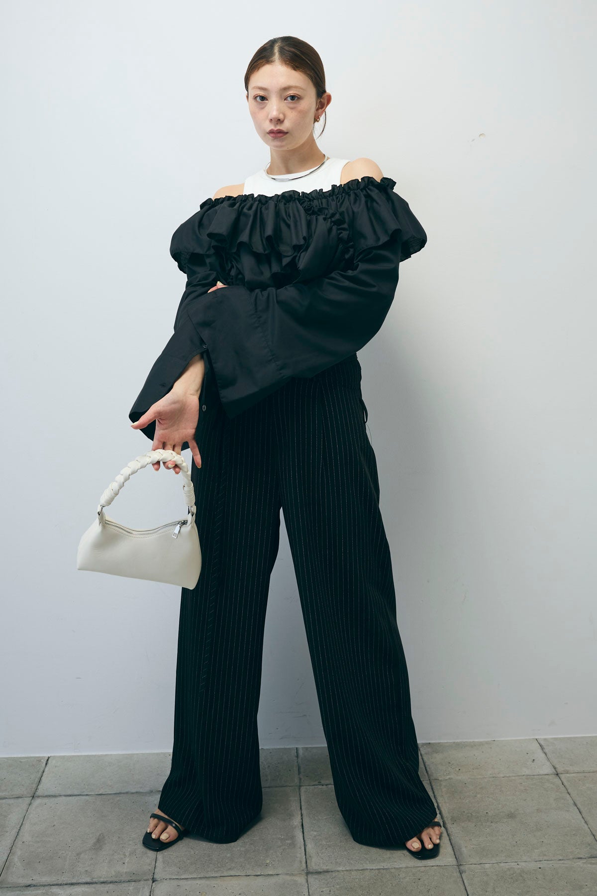 [予約/SET]TCブロード2wayフリルオフショルブラウス+ダブルベルトストライプパンツ(2set)