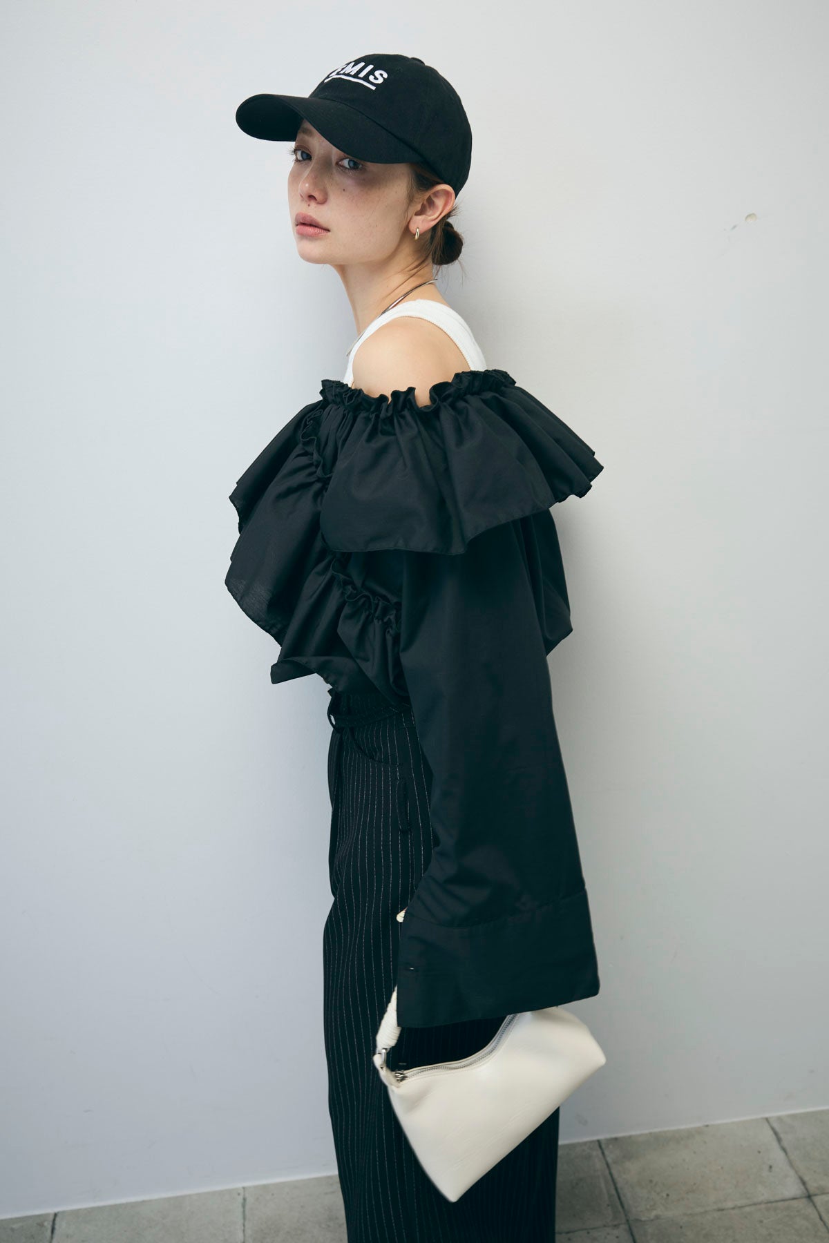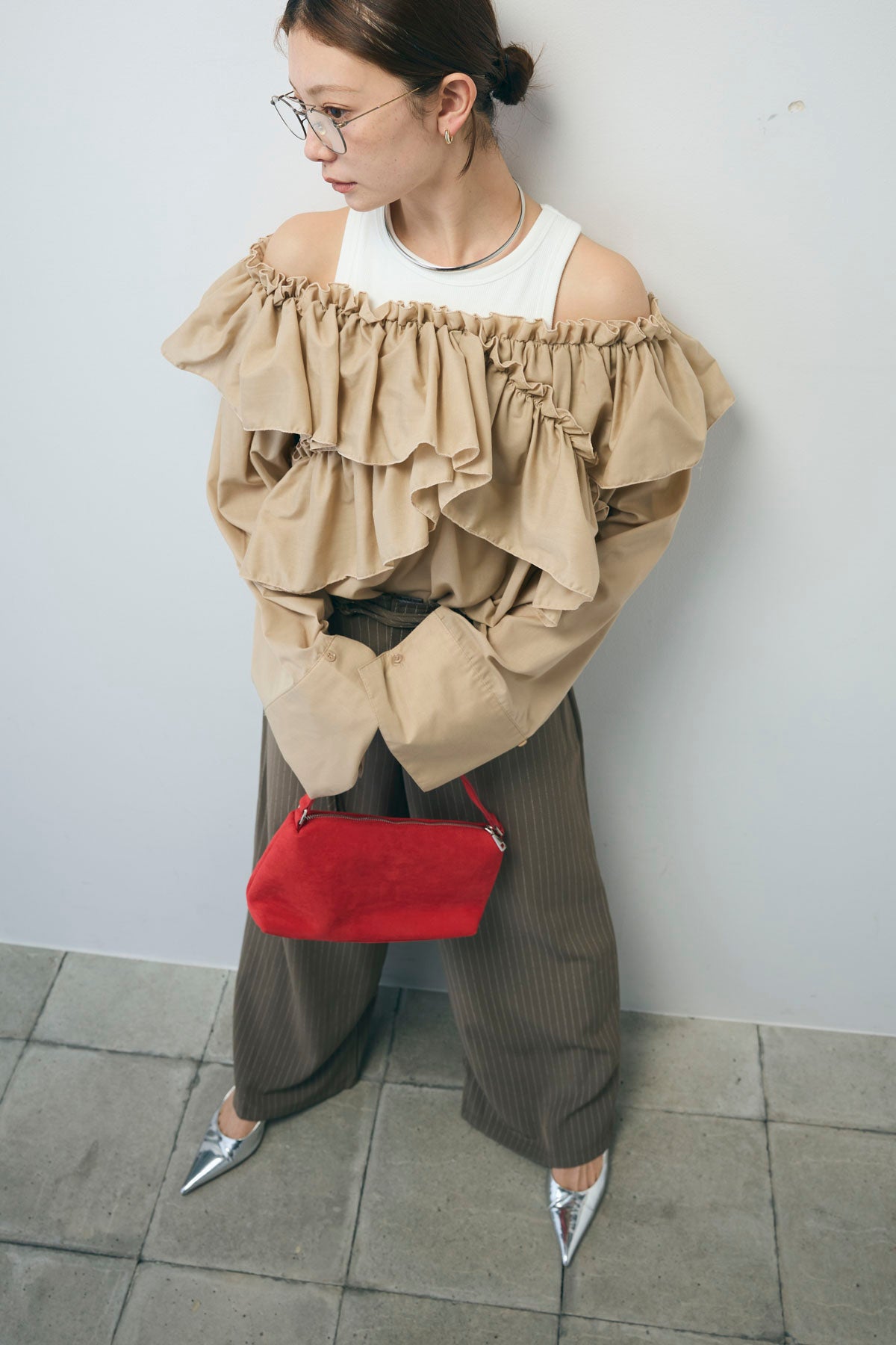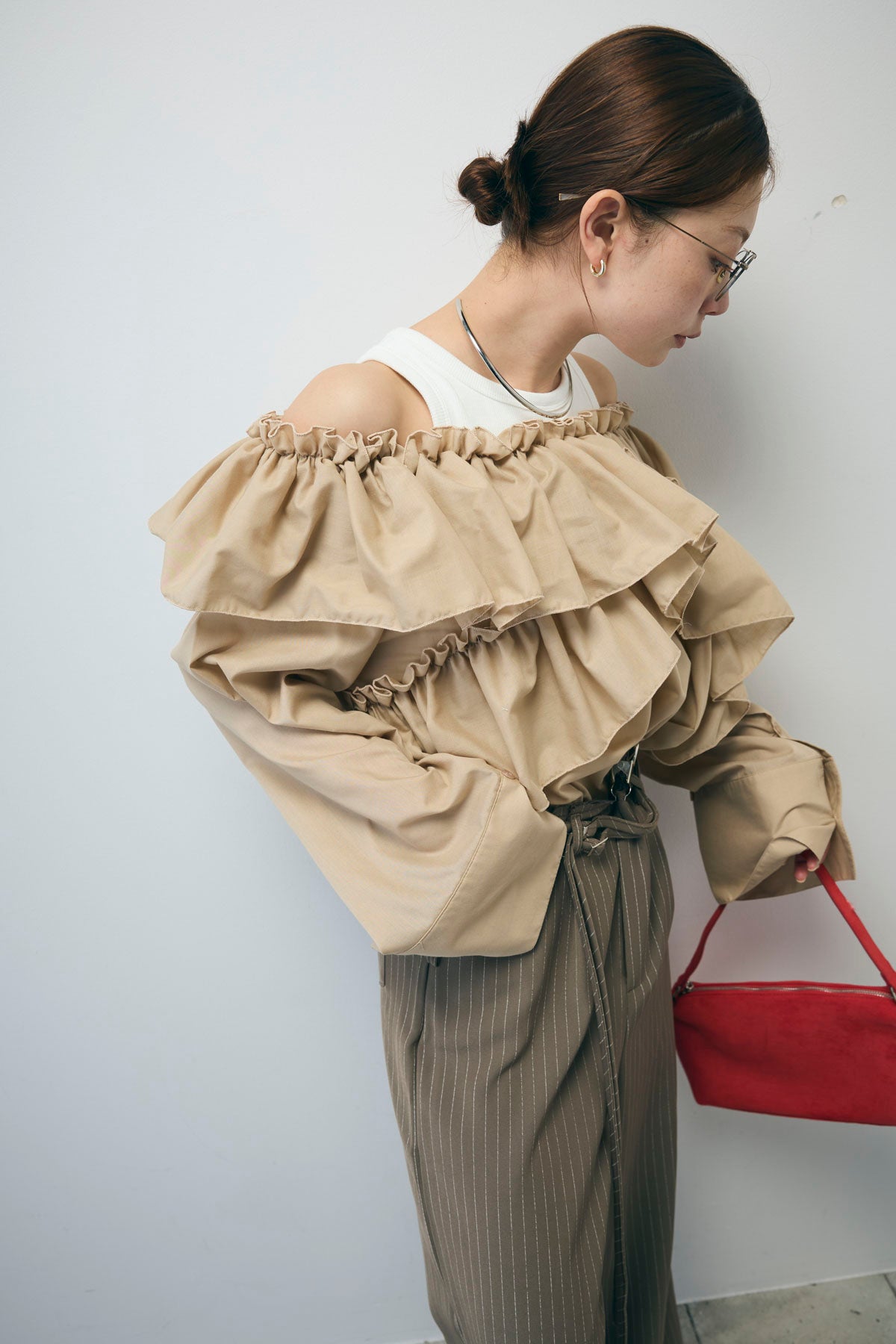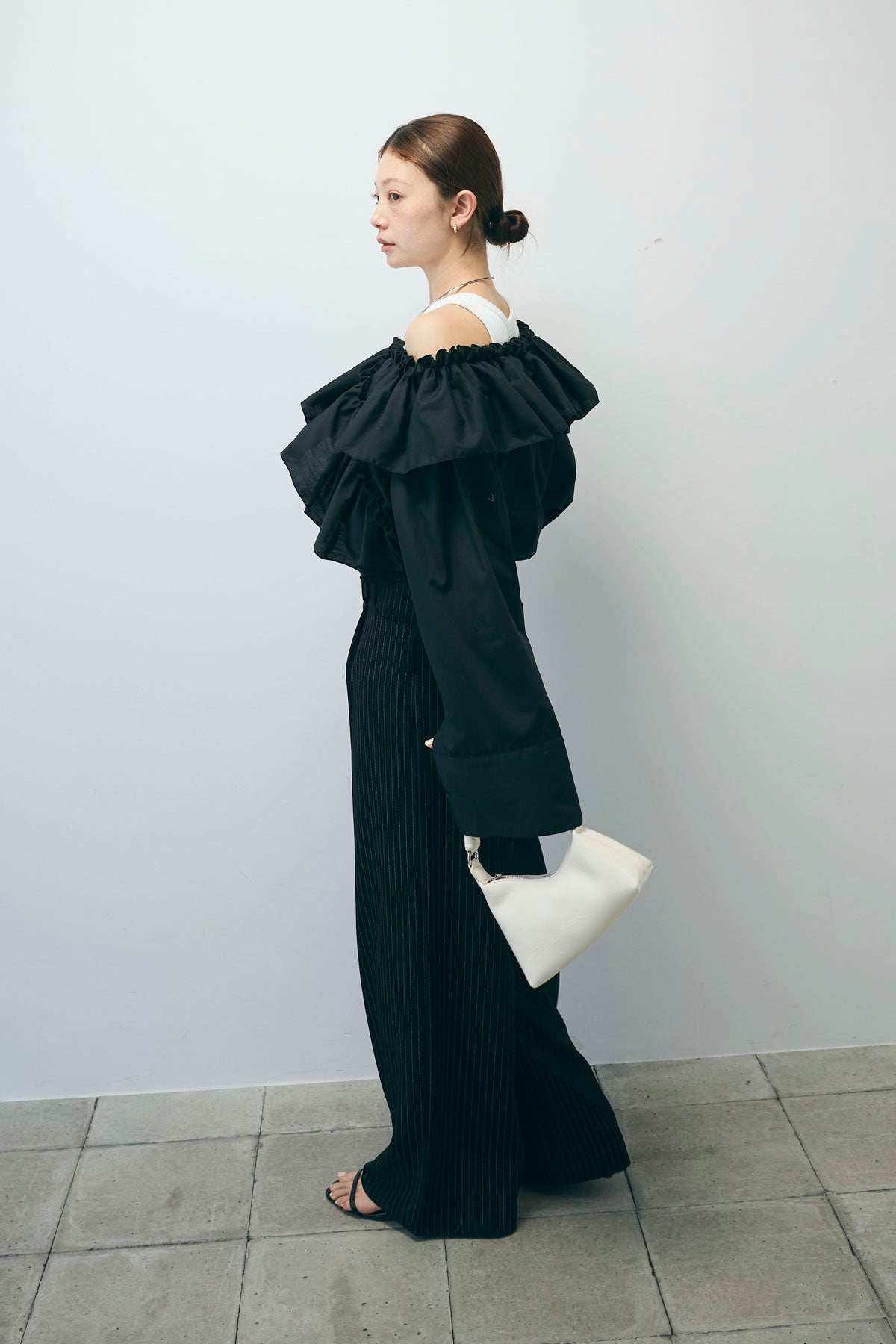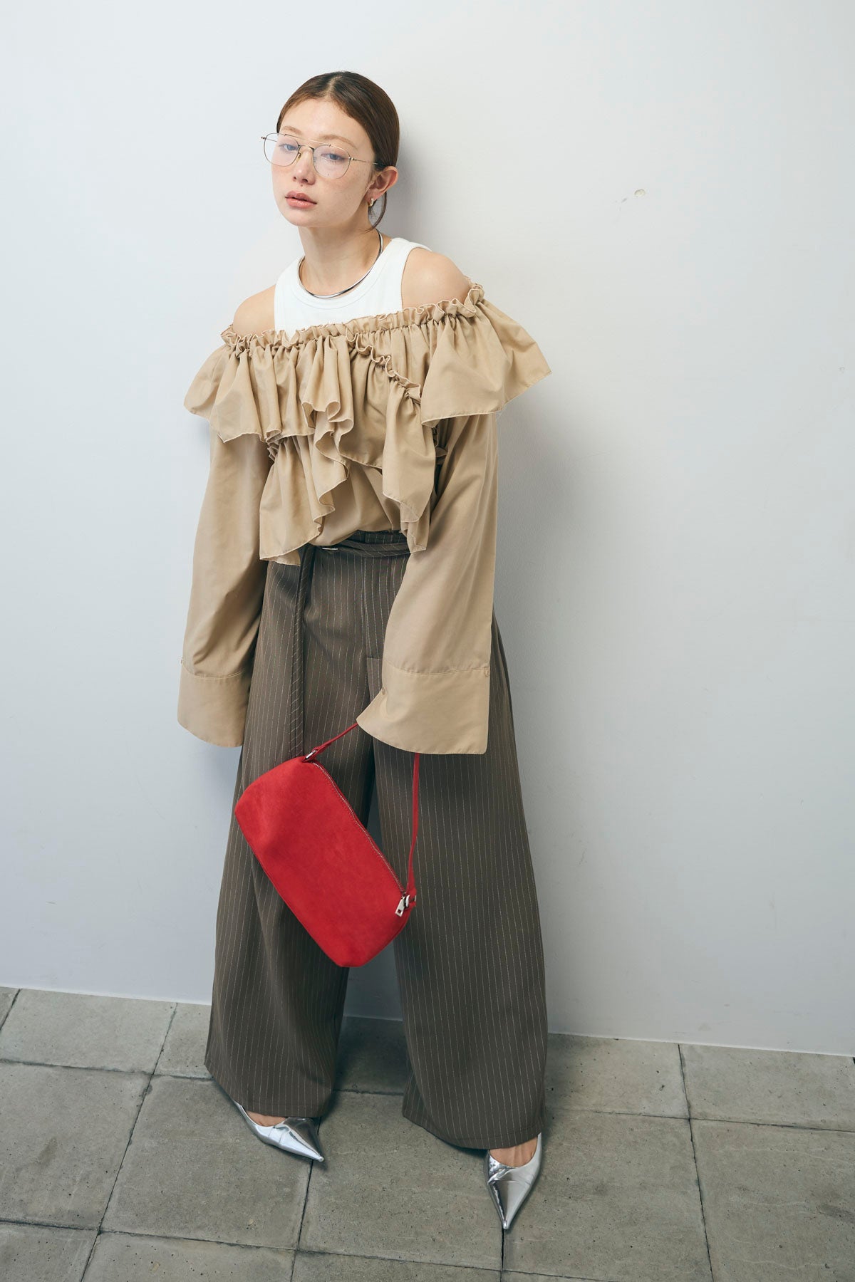 [予約/SET]TCブロード2wayフリルオフショルブラウス+ダブルベルトストライプパンツ(2set)